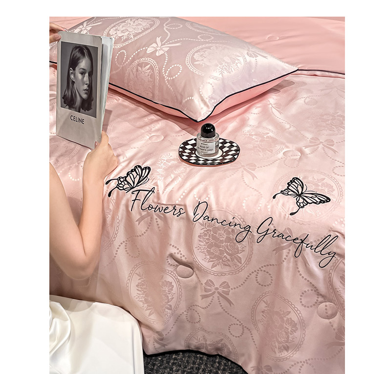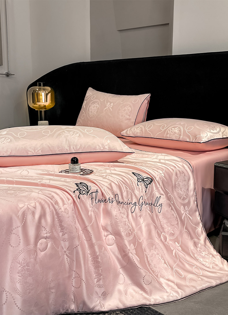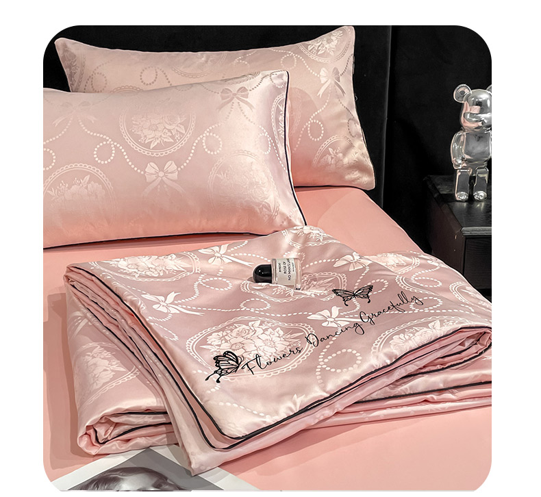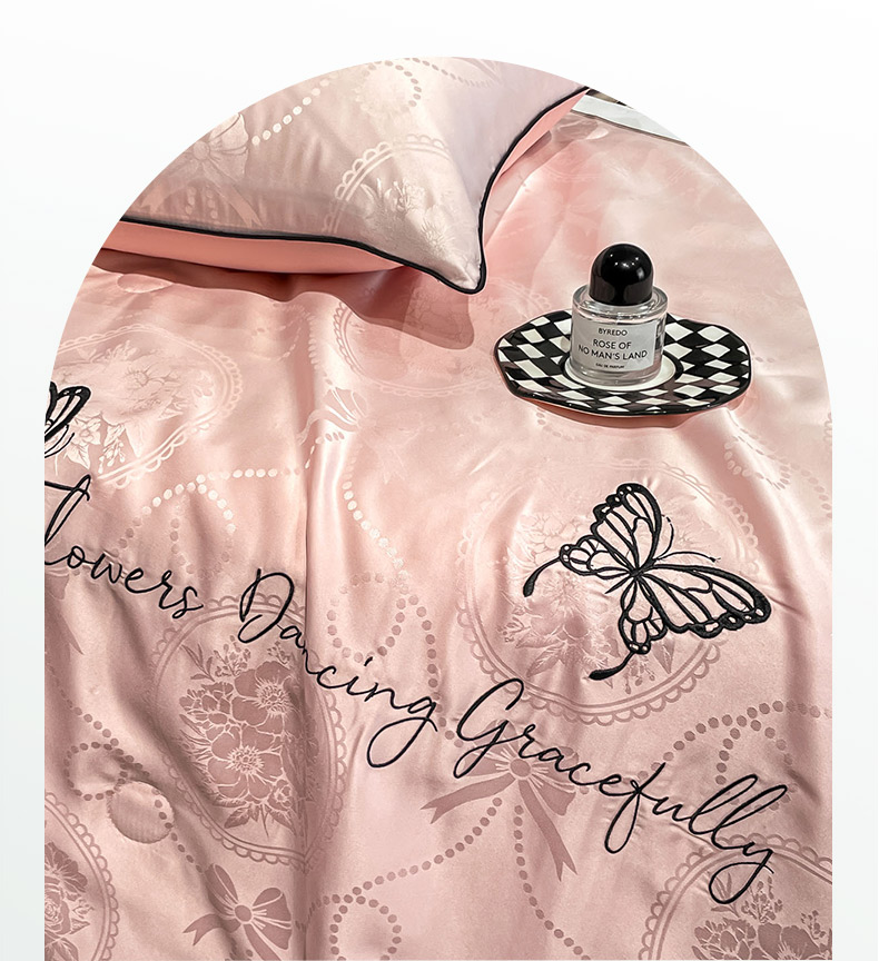 商品名称:慕澄家纺 2026新款水洗真丝天丝提花刺绣夏凉被空调被夏被四件套-蝶影 蝶影-蔷薇粉