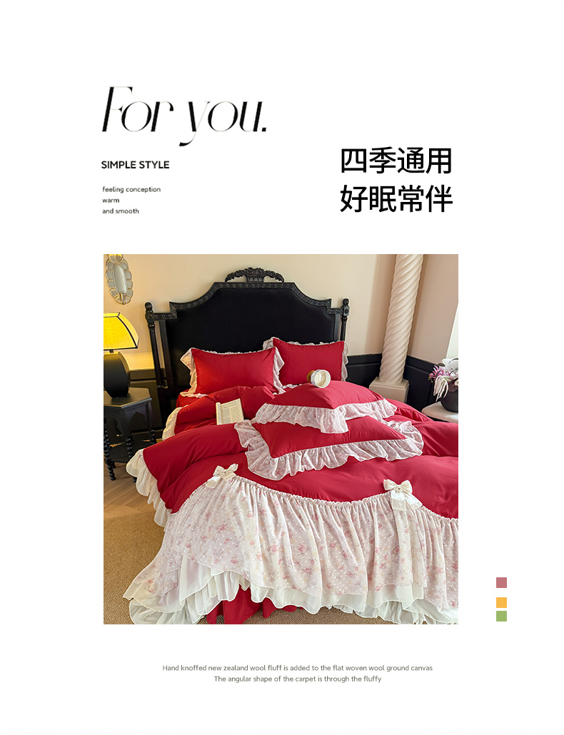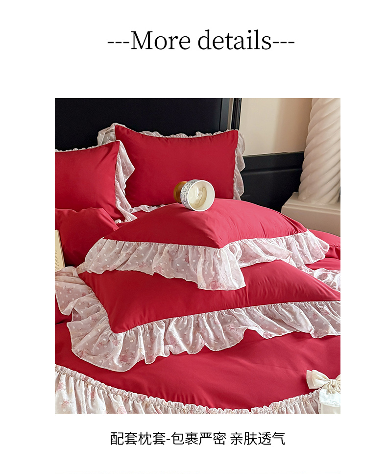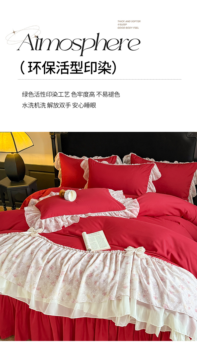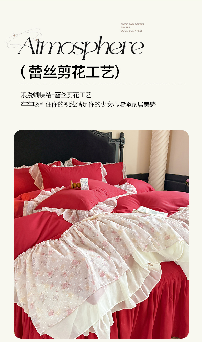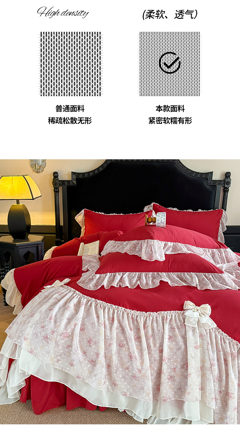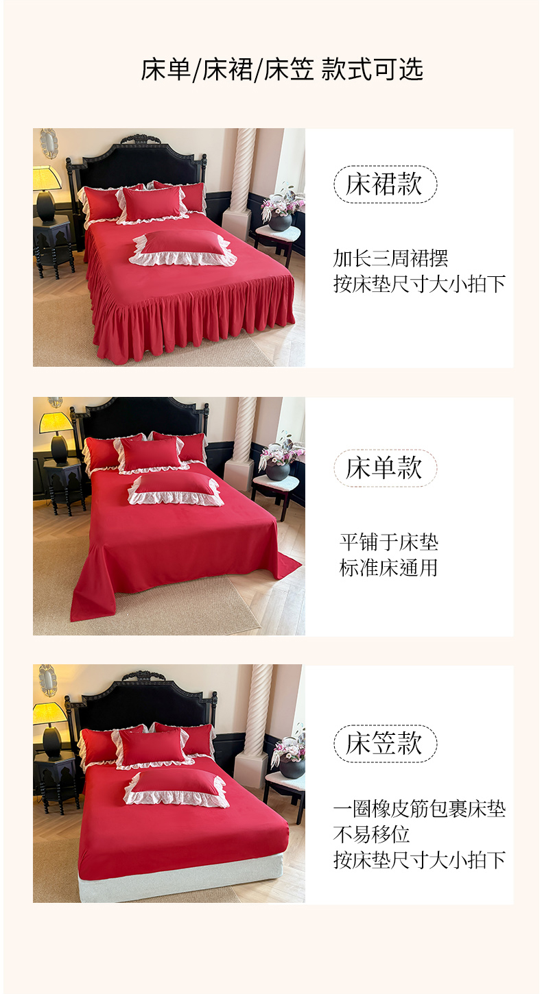 当前位置: 91家纺网 > 商品网购 > 床品套件 > 四件套 > 其它四件套 > 富盛家纺 2026新款水洗亲肤棉雪纺蕾丝刺绣法式床裙韩版四件套 浪漫主义-大红