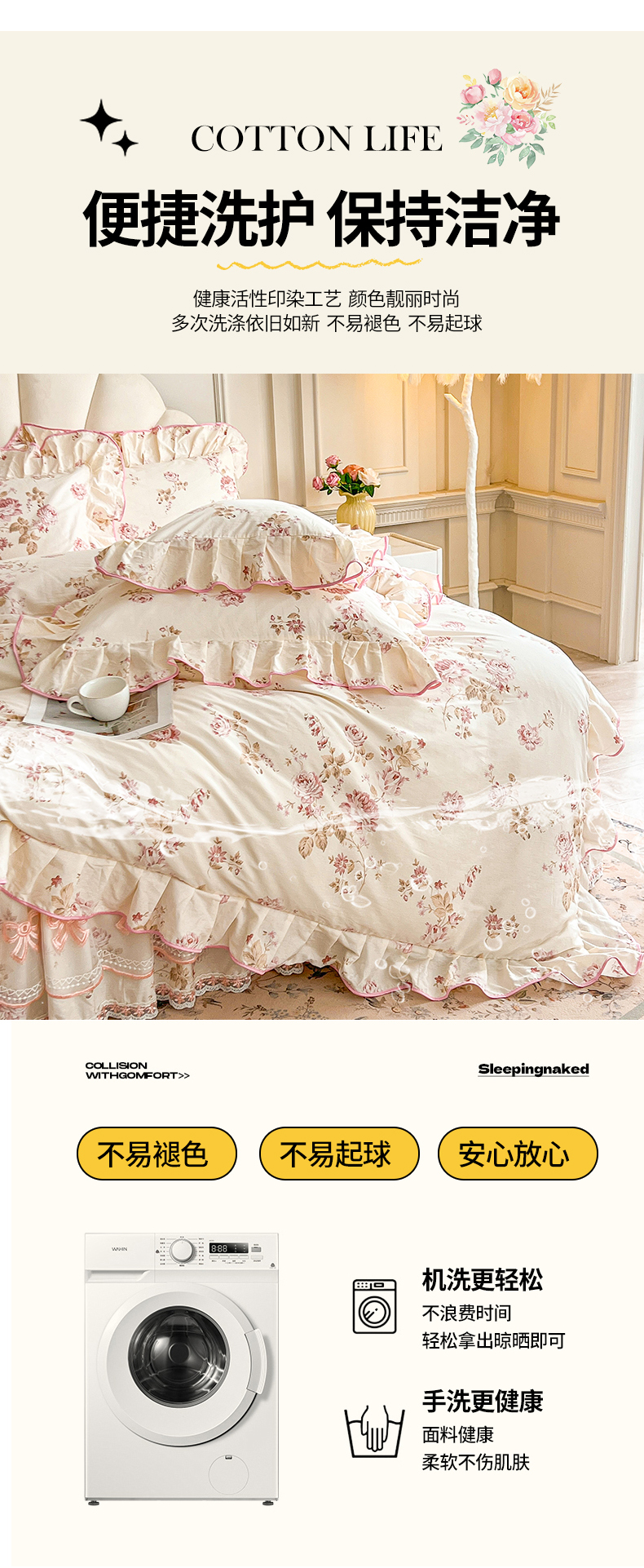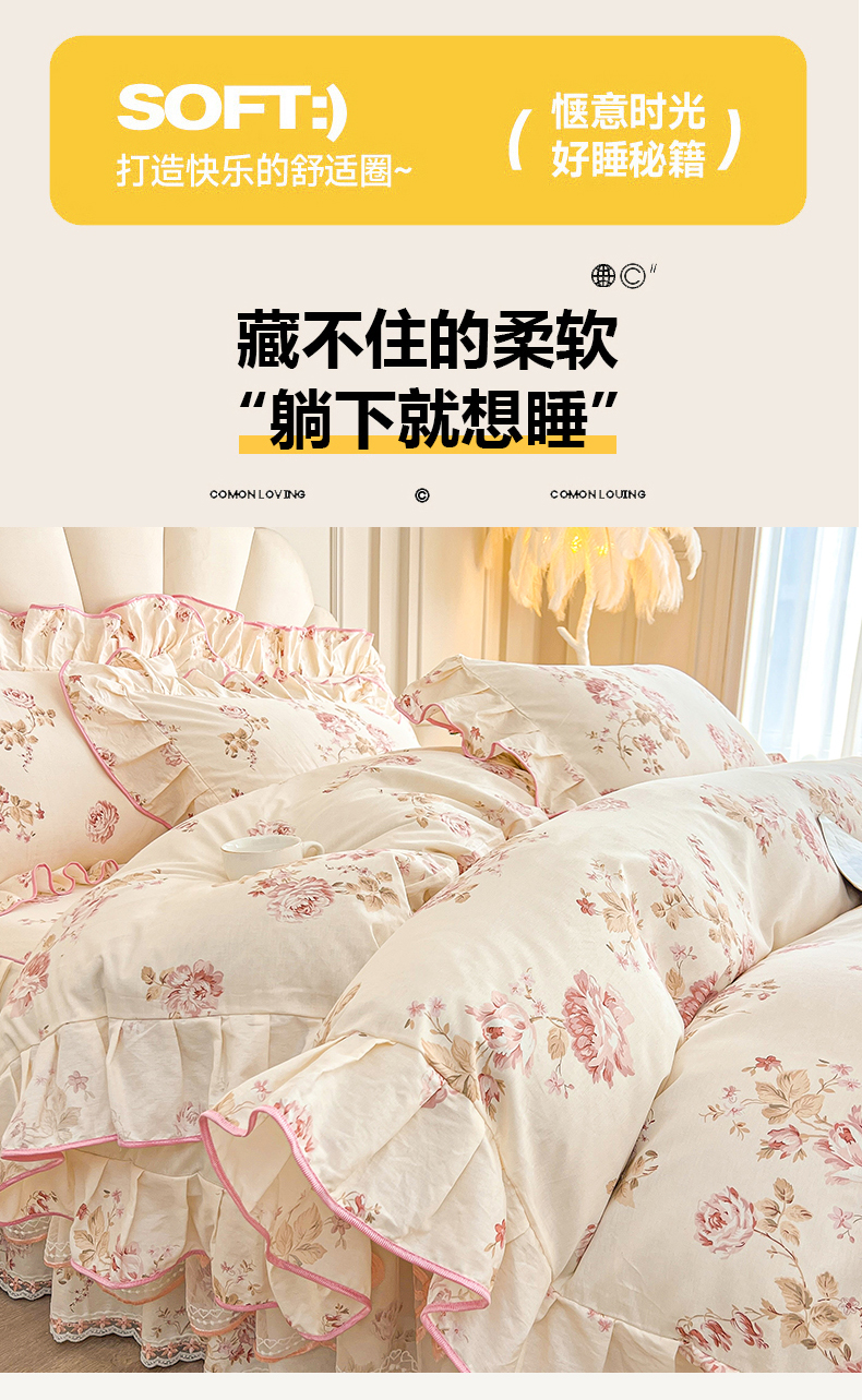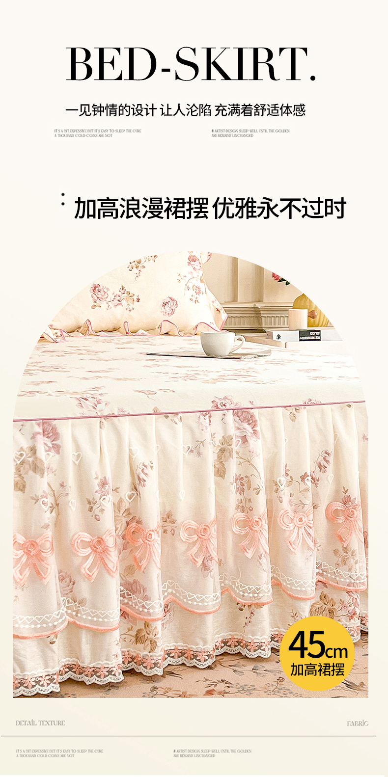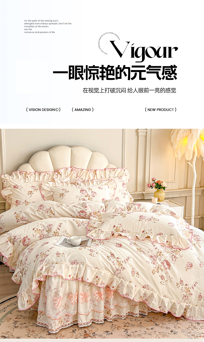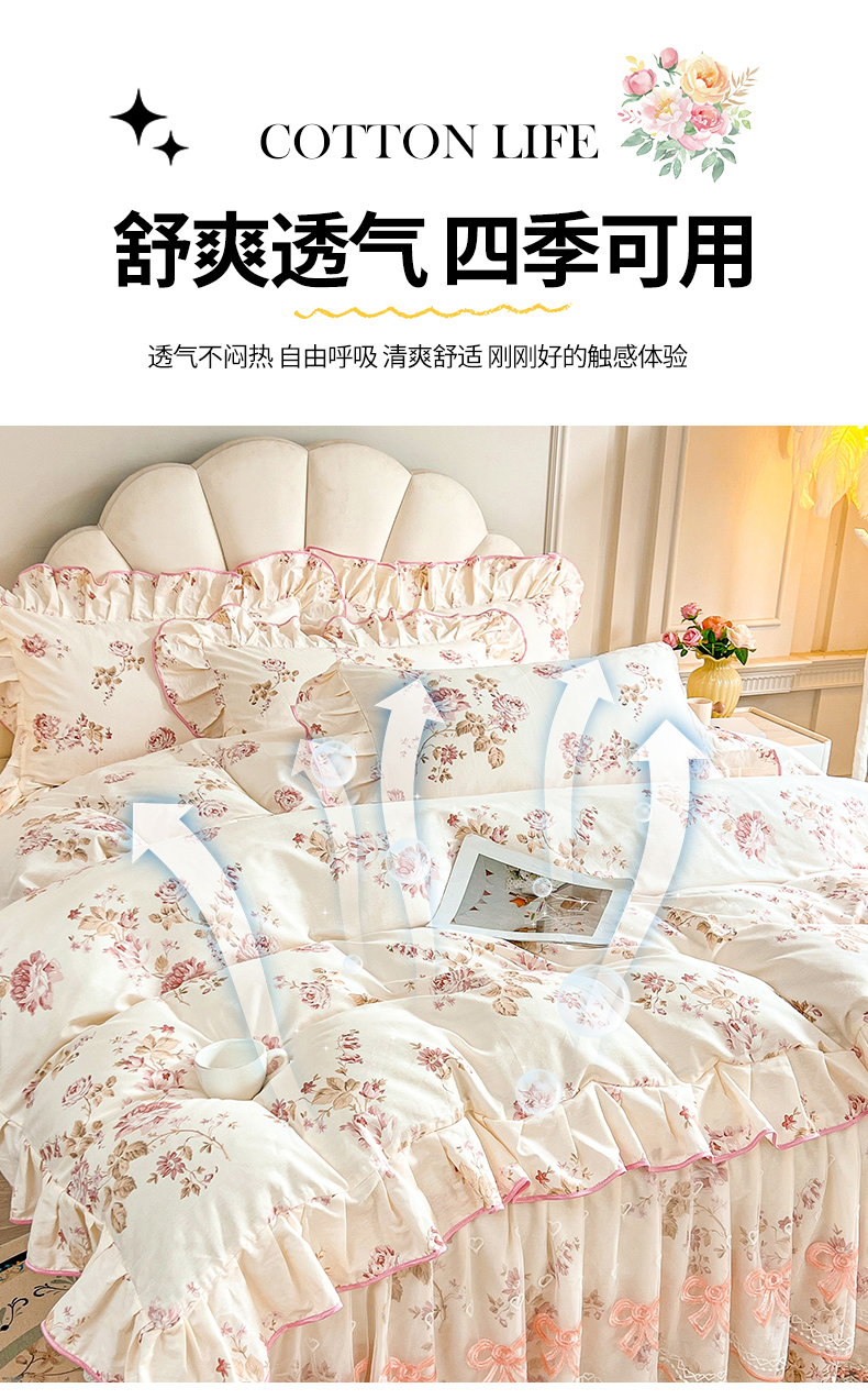 当前位置: 91家纺网 > 商品网购 > 床品套件 > 四件套 > 全棉普通四件套 > 宜凡家纺 2026新款全棉公主风单层床裙四件套 水苏栀清