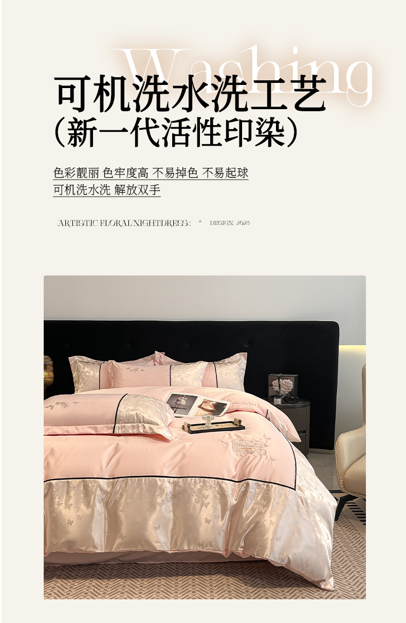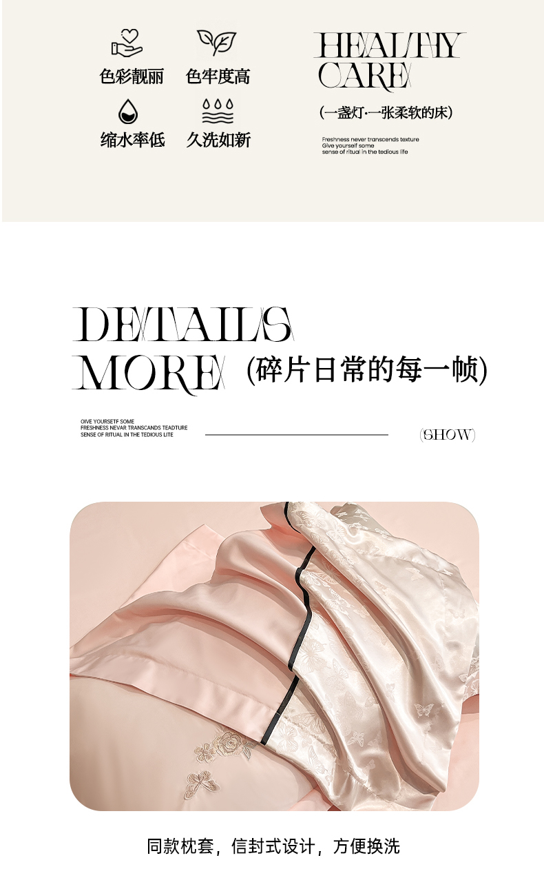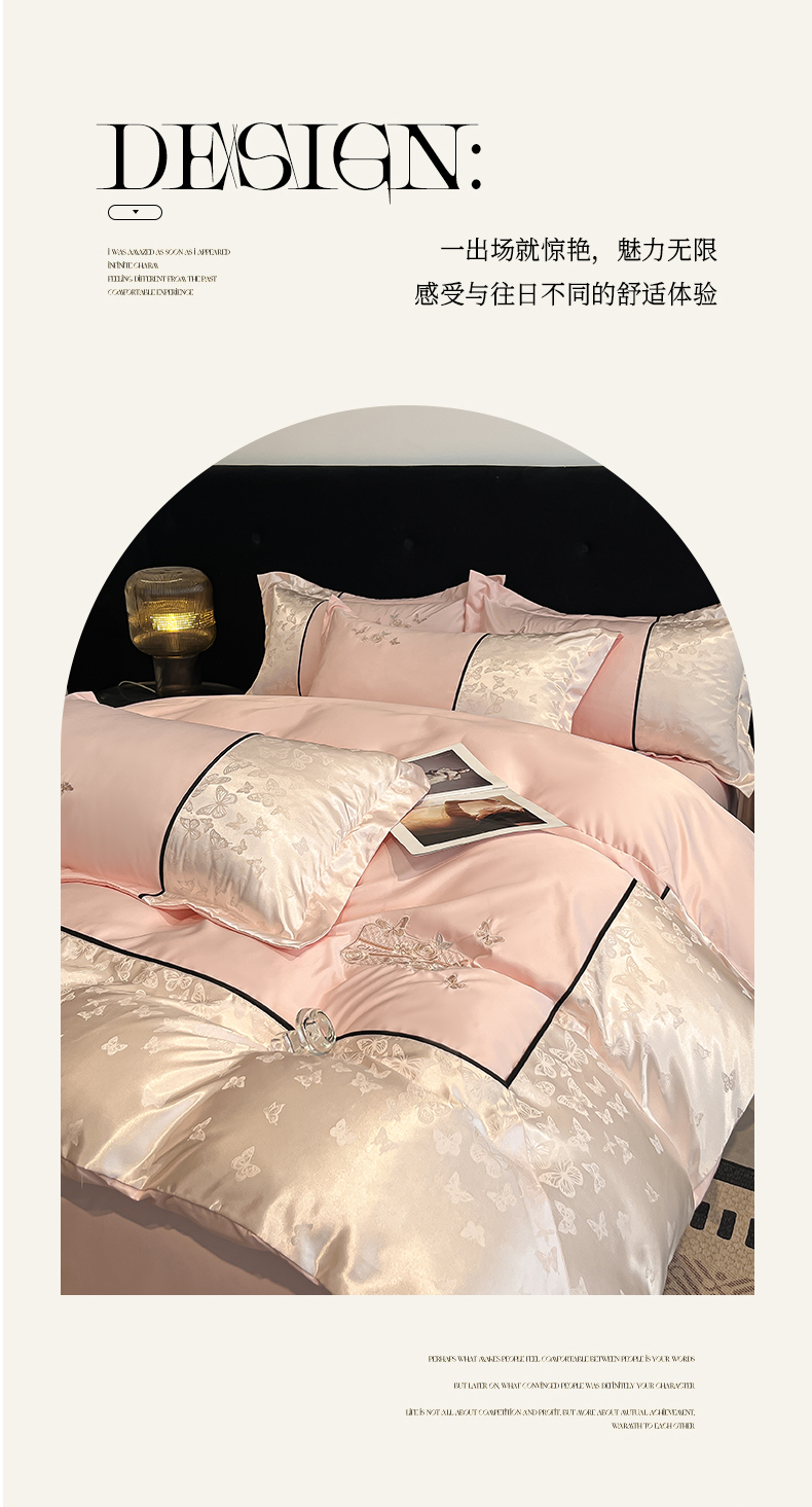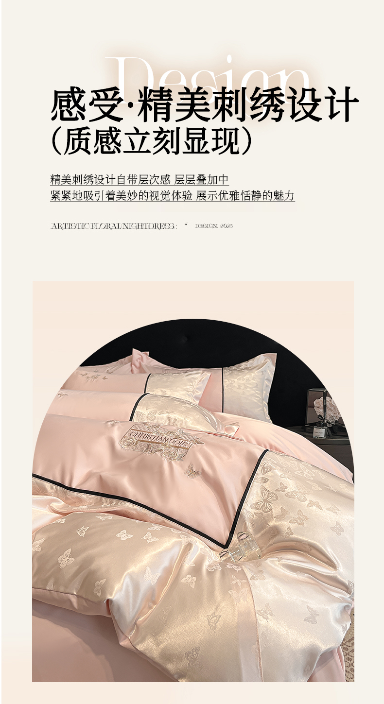 当前位置: 91家纺网 > 商品网购 > 床品套件 > 四件套 > 其它四件套 > 金牛座家纺 2026新款金牛座细斜纹贡缎亮丝提花大拼角刺绣床盖四件套-缇娜系列 缇娜-浅粉