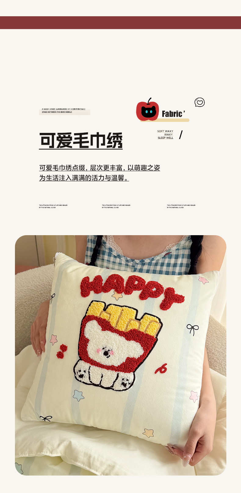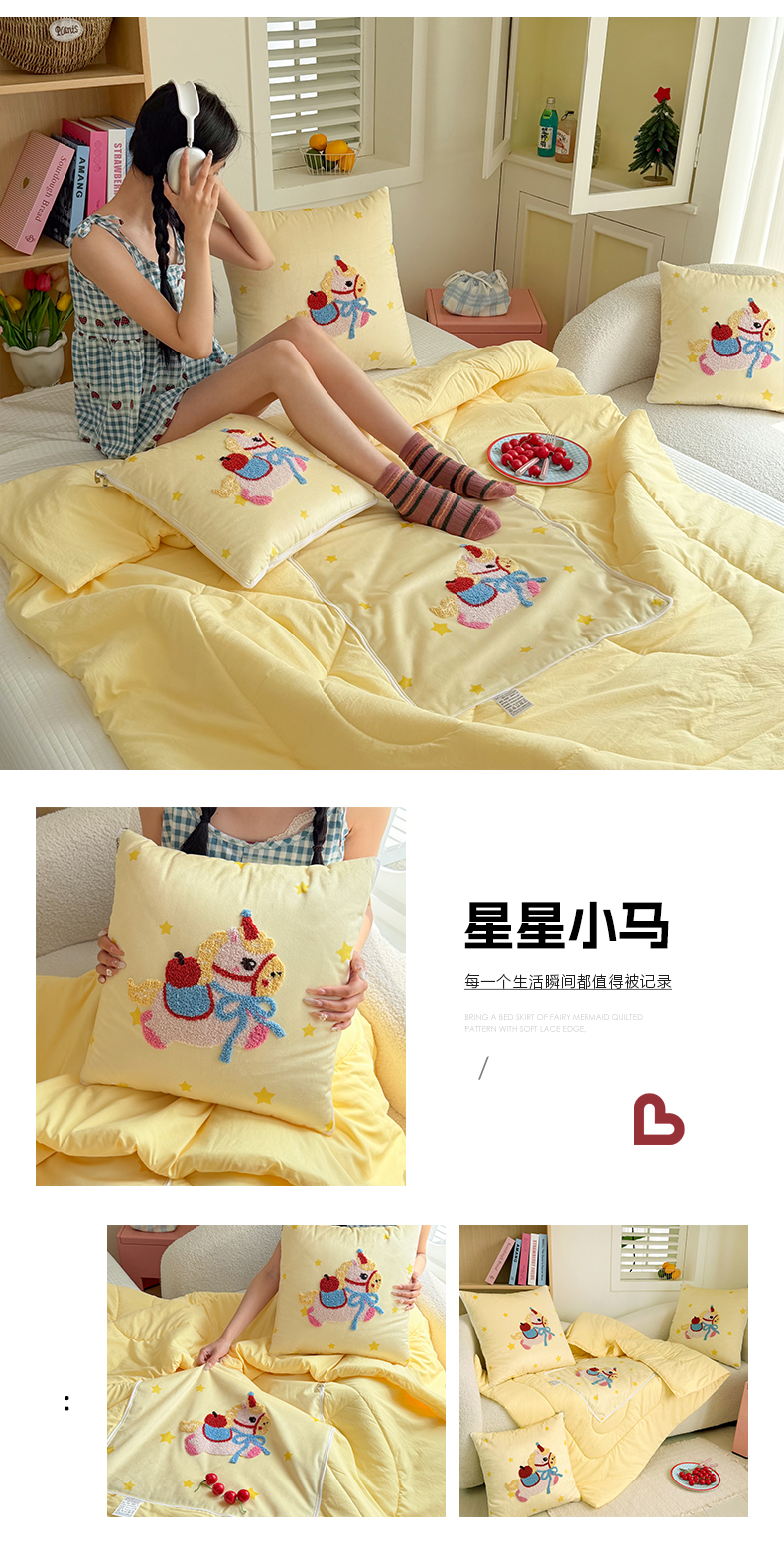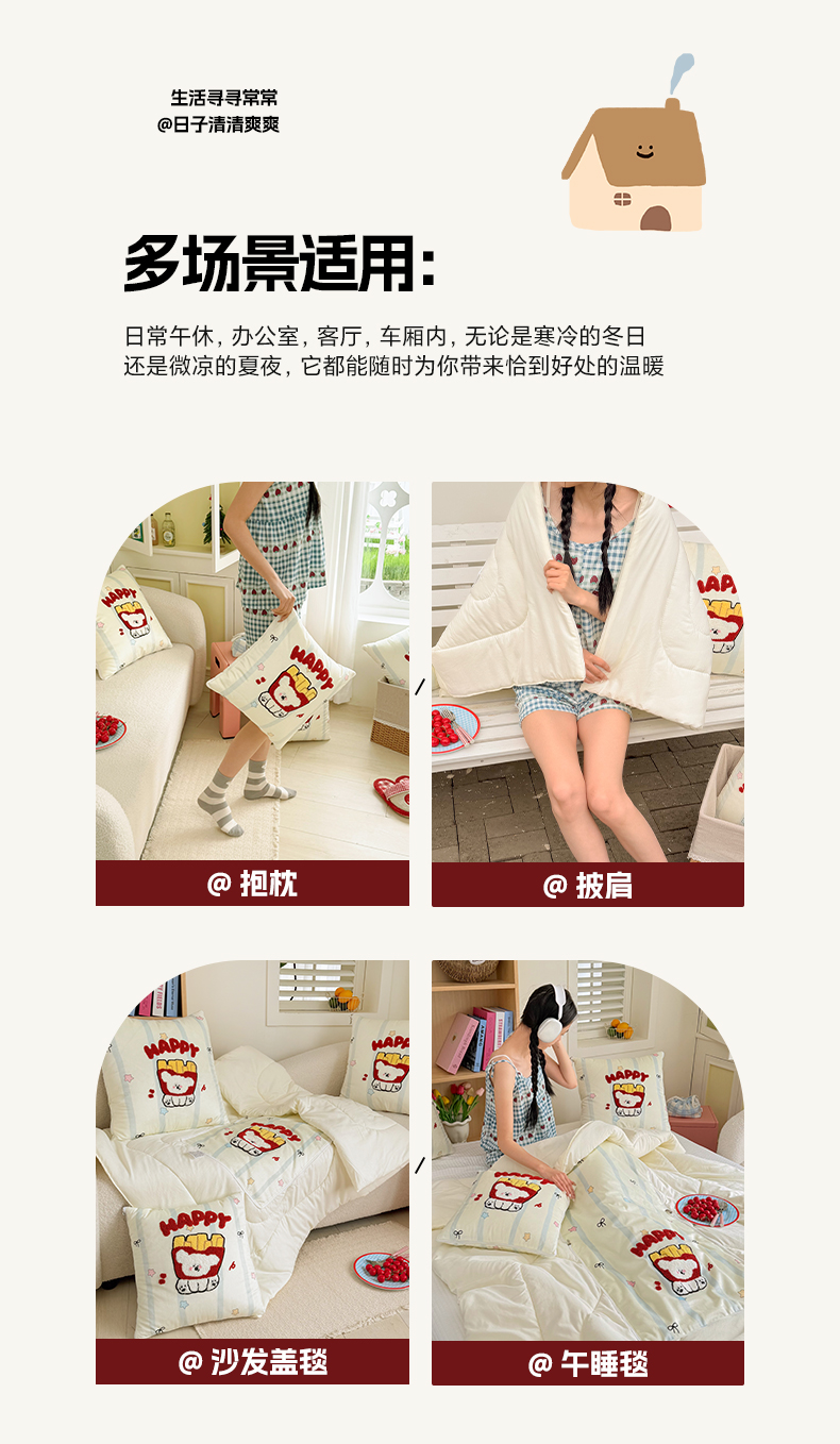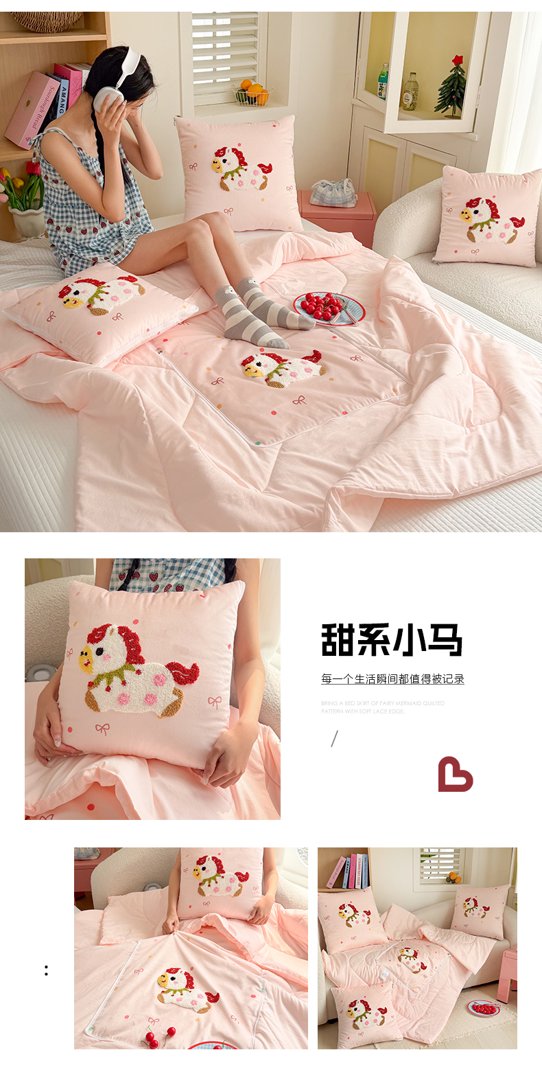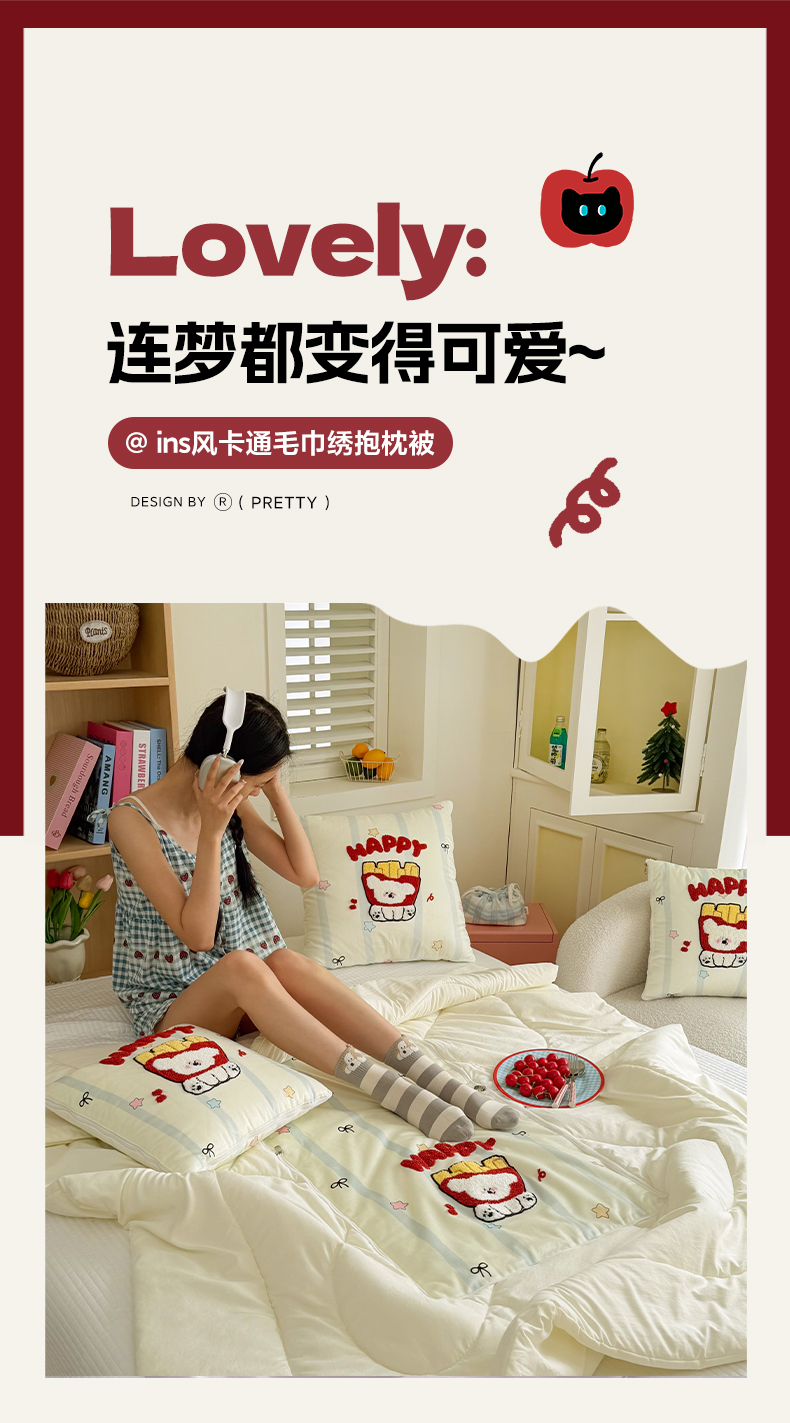(总)番茄+ 2026新款ins风卡通毛巾绣抱枕被,红帽小黑猫,苹果熊,薯条小狗,甜系小马,星星小马