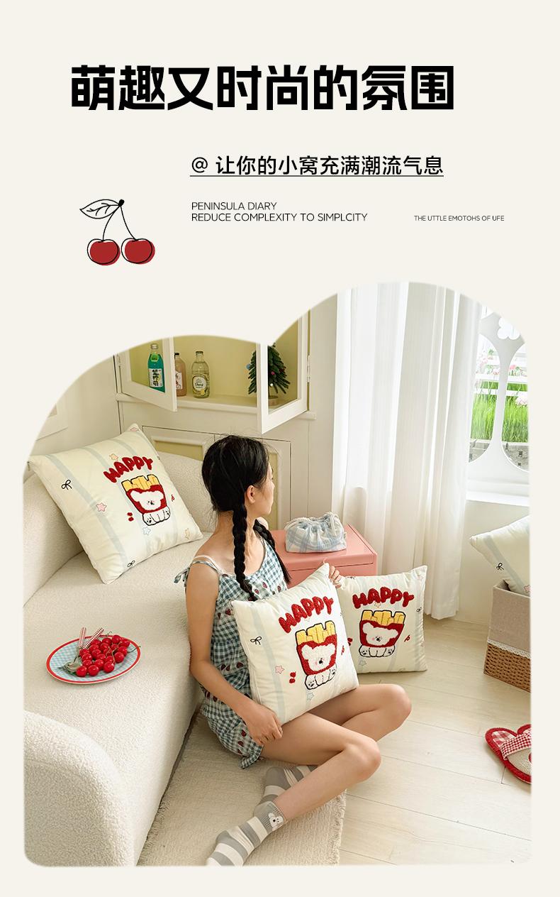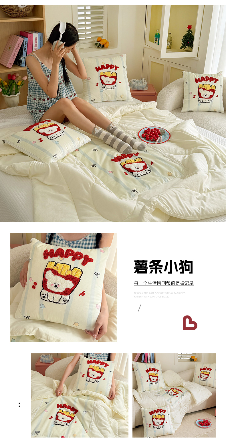 番茄+ 2026新款ins风卡通毛巾绣抱枕被 薯条小狗
