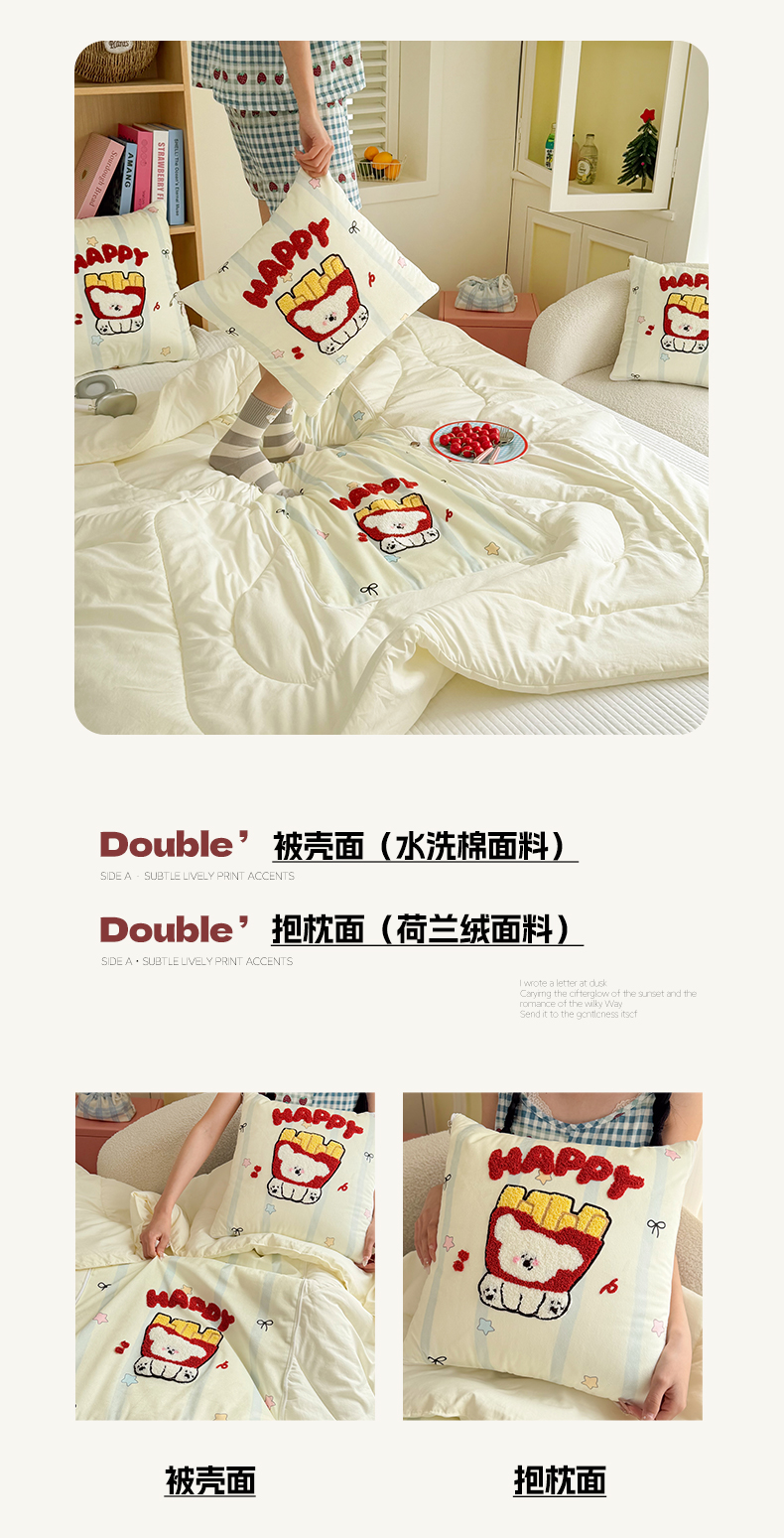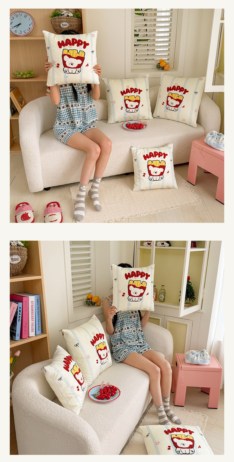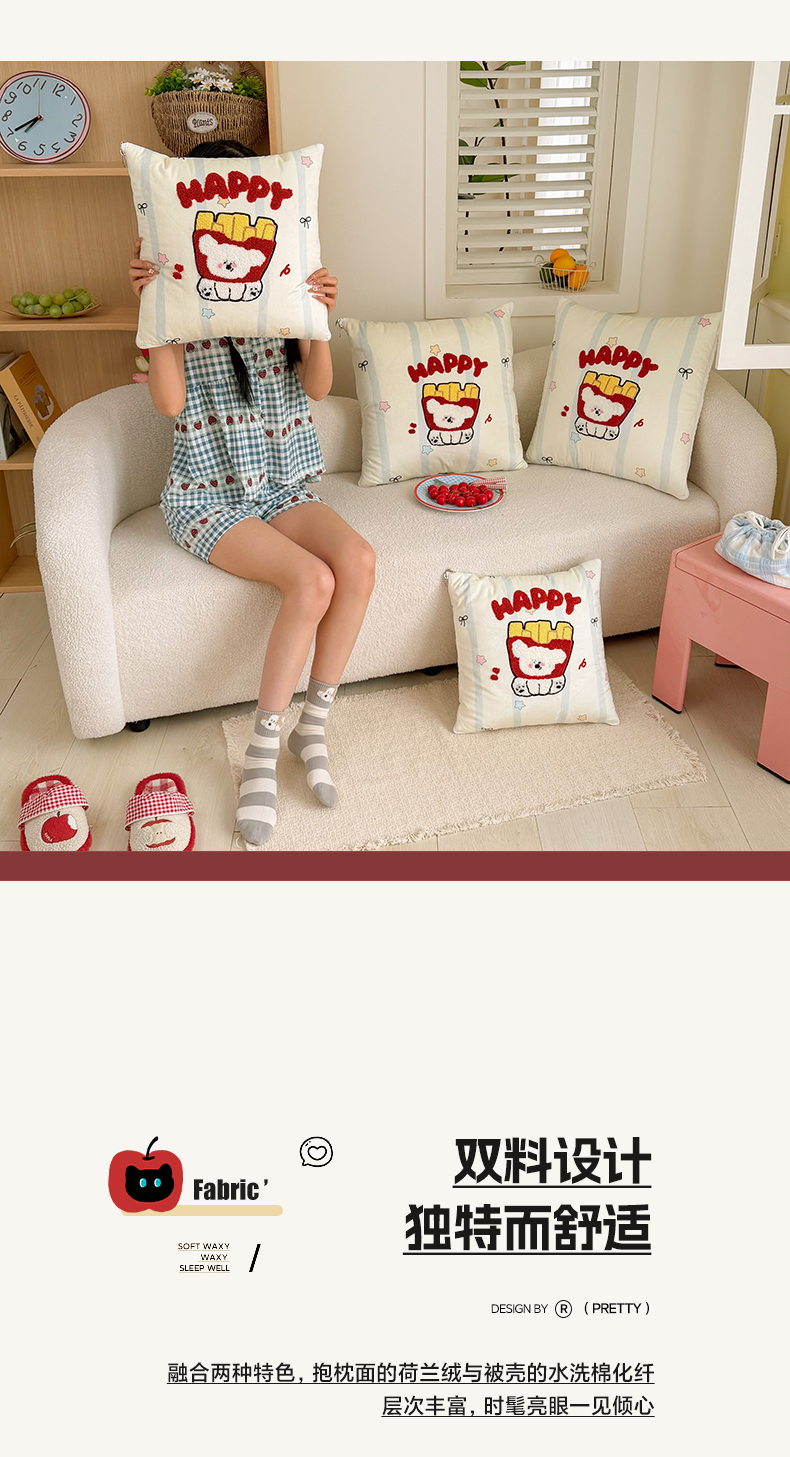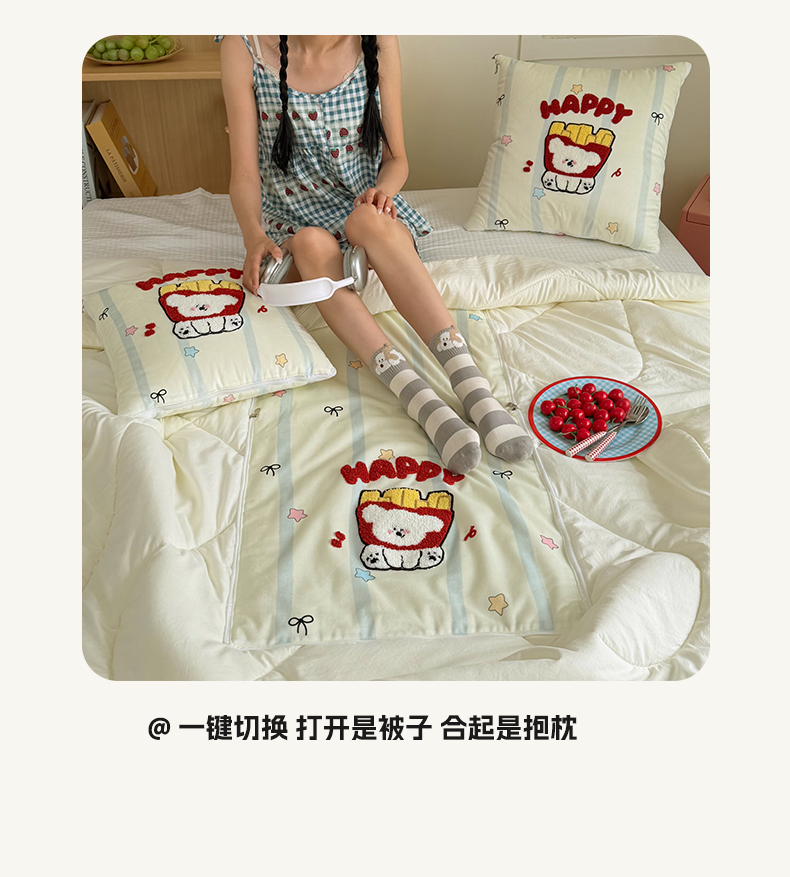 商品名称:番茄+ 2026新款ins风卡通毛巾绣抱枕被 薯条小狗