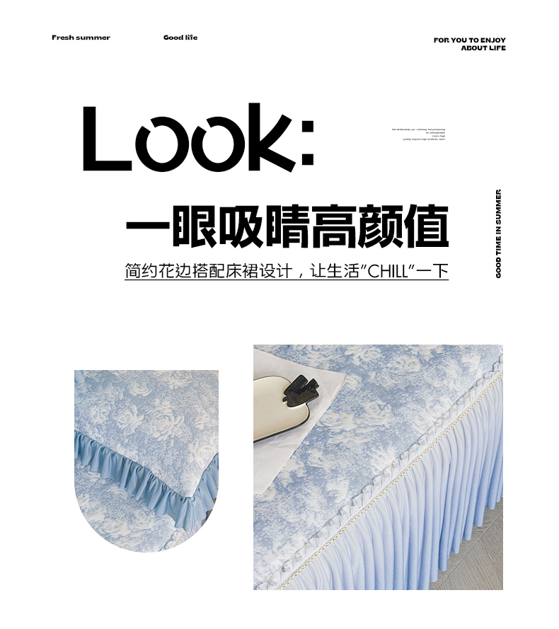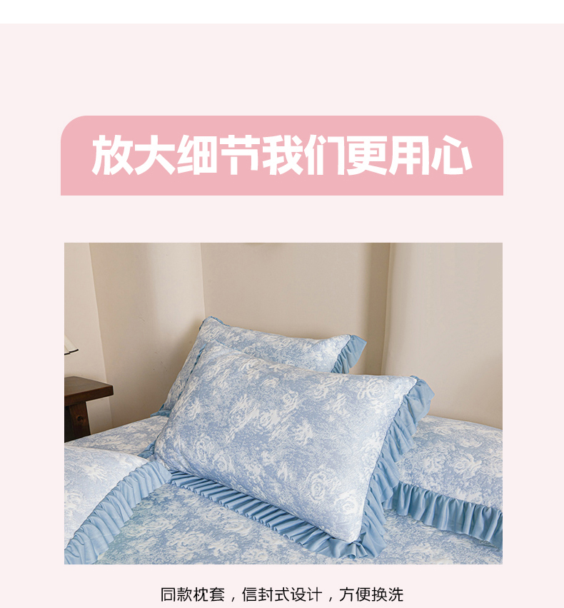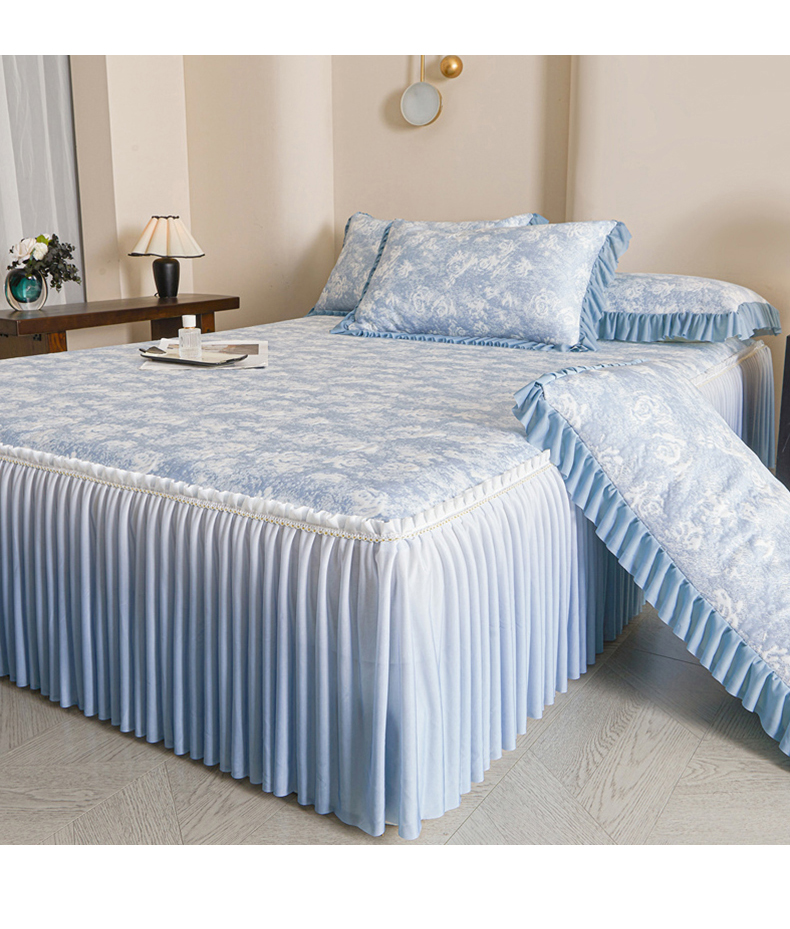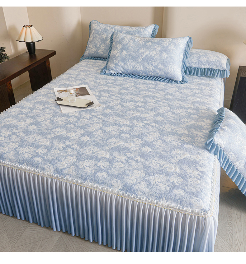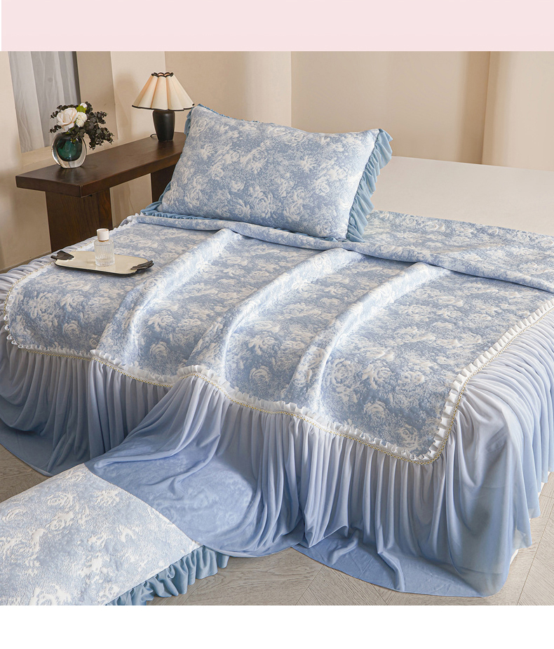 商品名称:诺梵家纺 2026新款PE冰豆豆冰丝凉席床裙款-玫瑰系列 蓝玫瑰