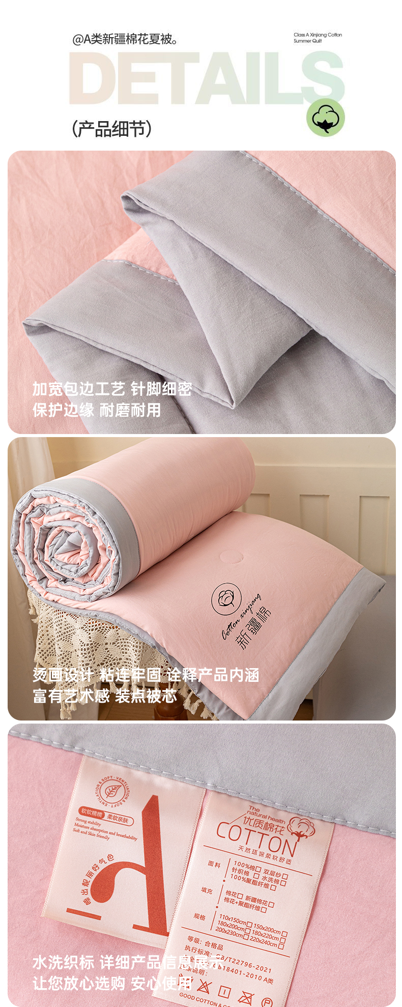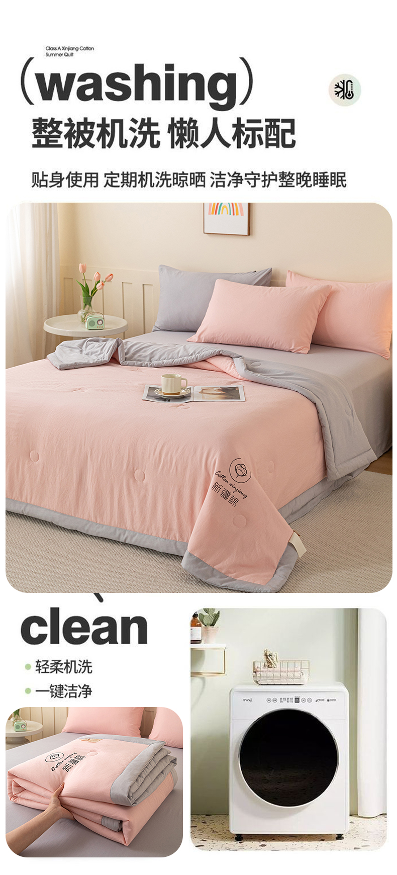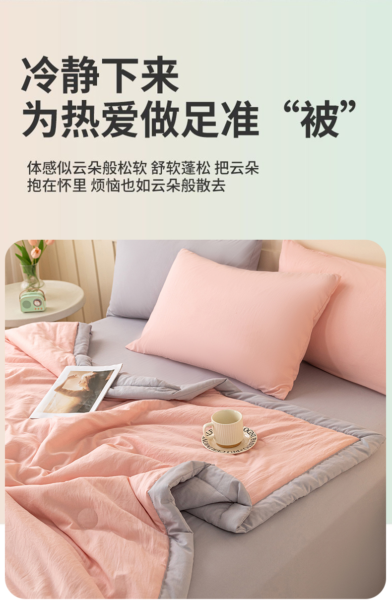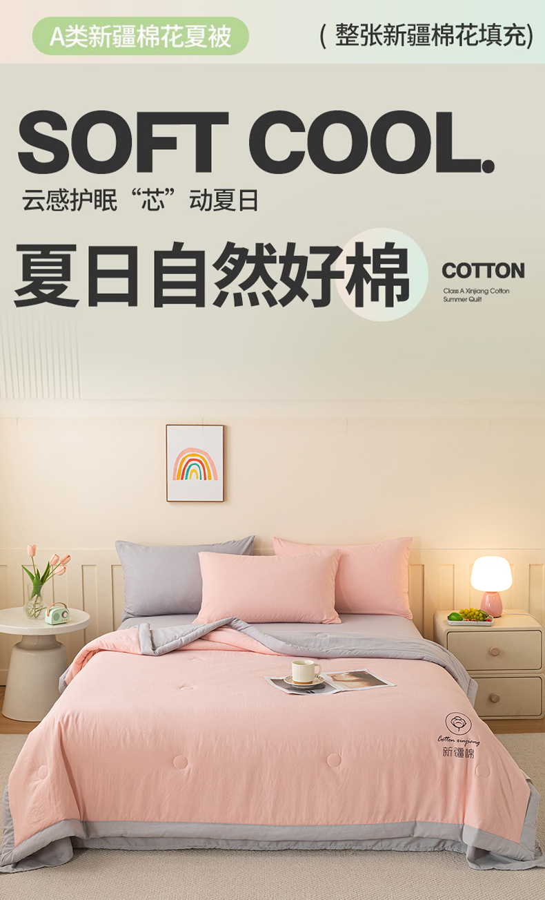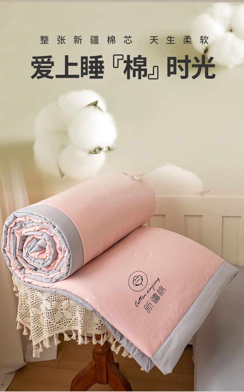 商品名称:几禾 2026春夏新款纯色水洗棉双拼夏被新疆棉花被夏凉被空调被被子被芯 双拼-粉灰