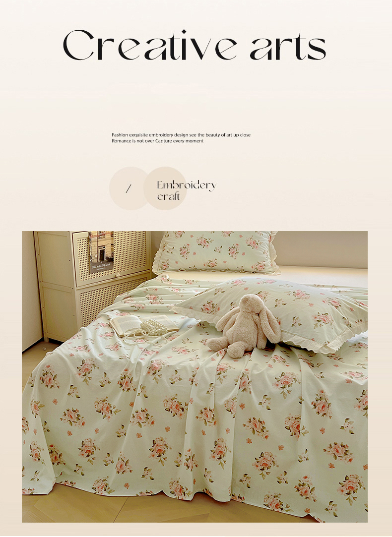 商品名称:(总)爱彼家纺 2026春夏新款云感水洗棉床单清新碎花床单三件套