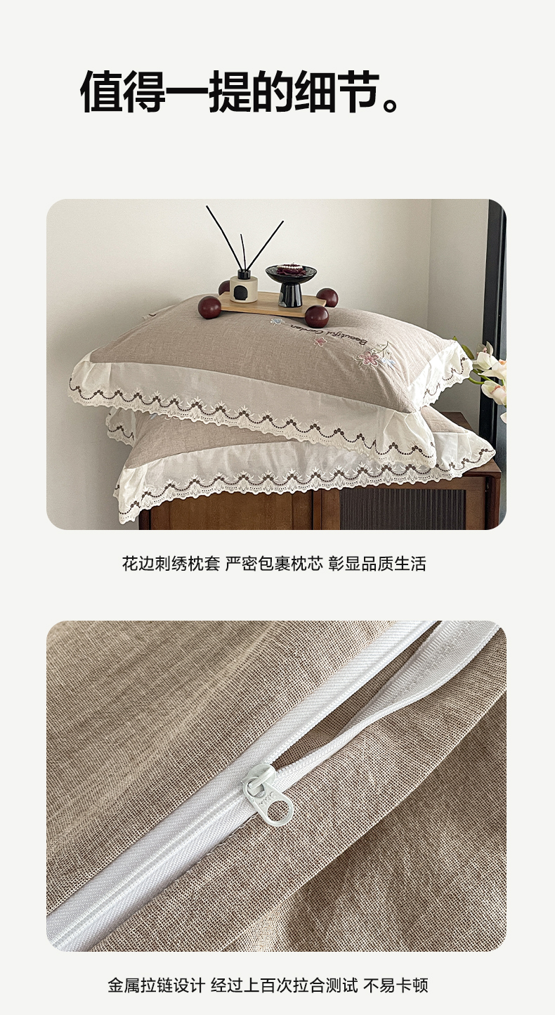 商品名称:如一 2026新款棉麻绣花花边款全棉亚麻四件套 花间-咖