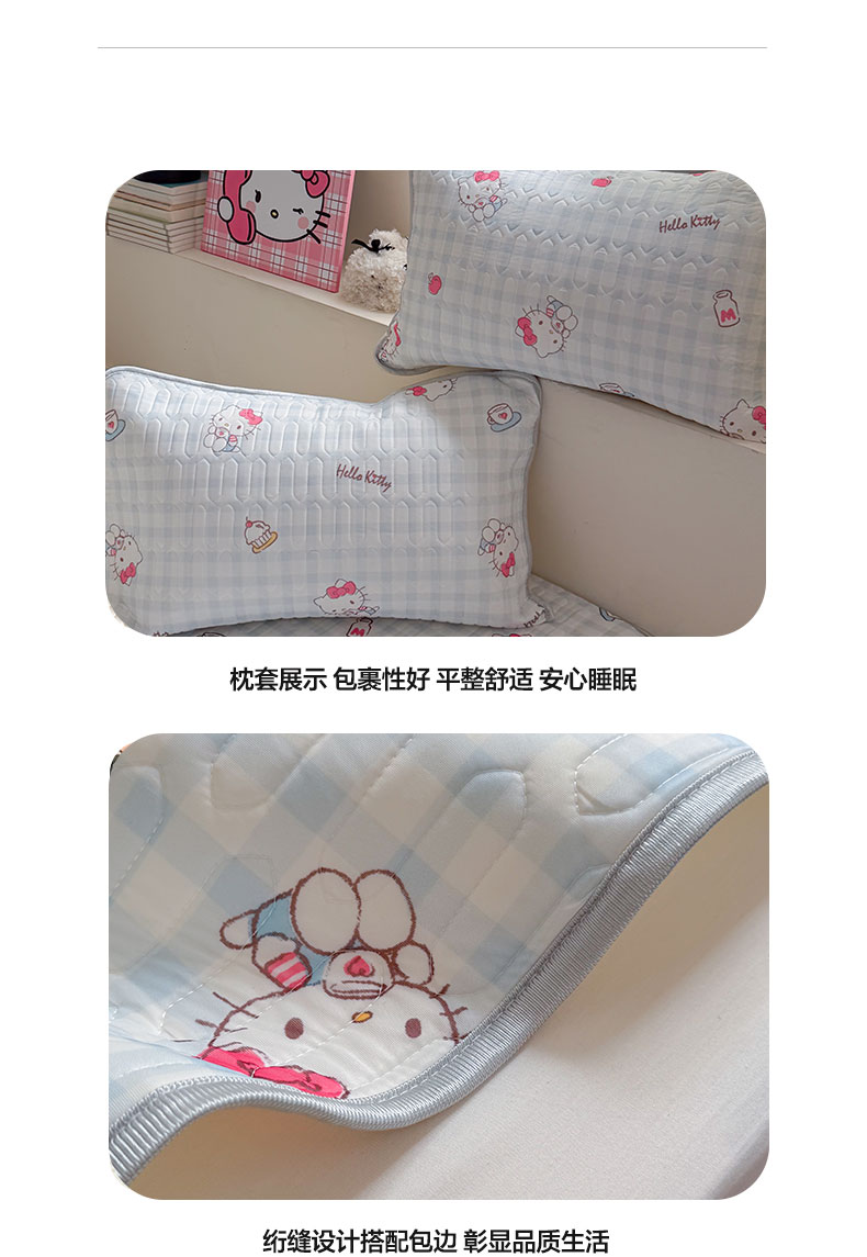 当前位置: 91家纺网 > 商品网购 > 床上用品 > 凉席 > 乳胶凉席 > 桃子家居 2026新款A类正版授权三丽鸥高品质凉感丝乳胶席空调软席系列三件套 三丽鸥乳胶席-蓝格甜品KT