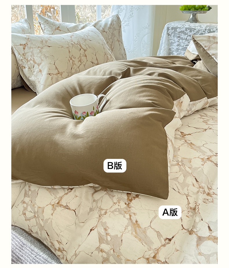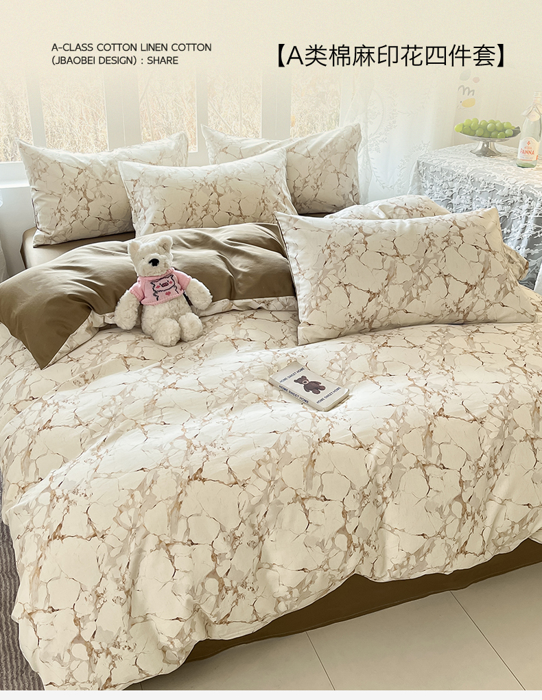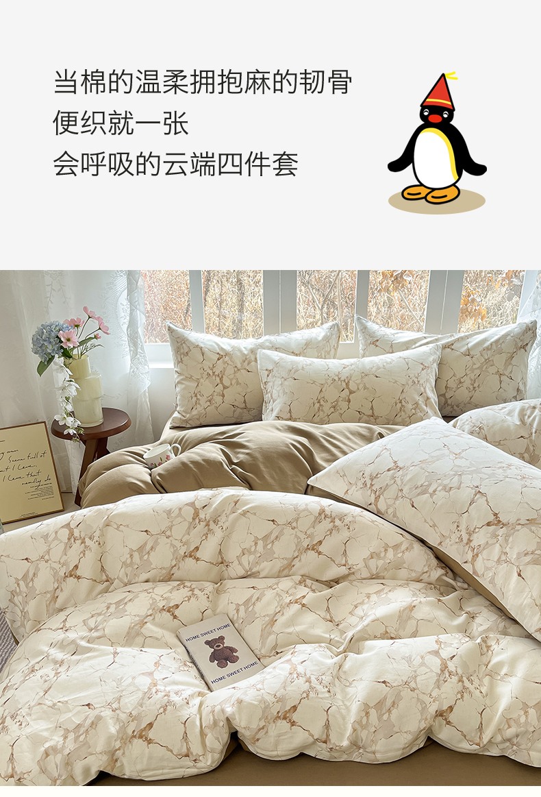 当前位置: 91家纺网 > 商品网购 > 床品套件 > 四件套 > 全棉普通四件套 > 名兮家居 2026新款A类全棉棉麻四件套 焦糖石纹