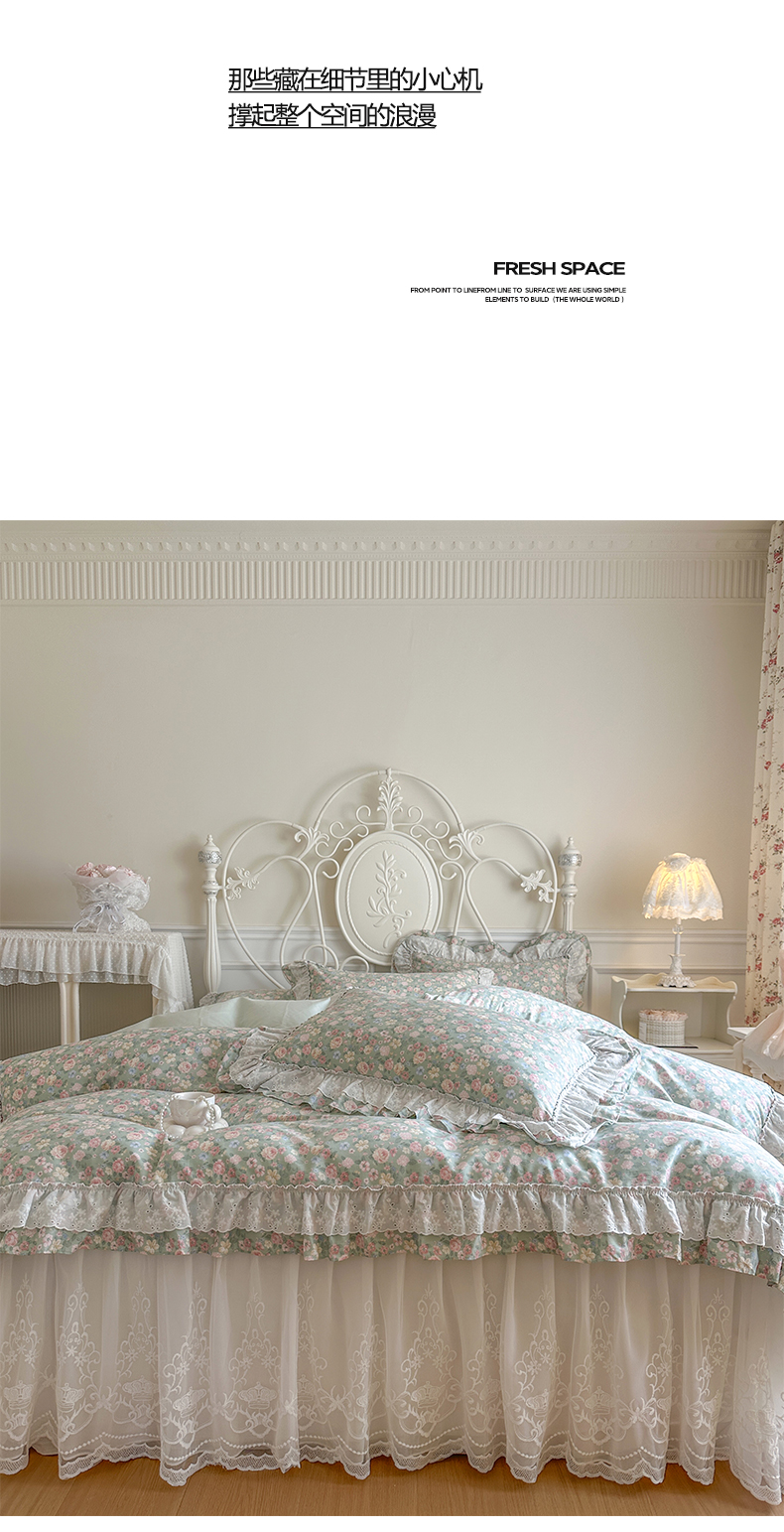 当前位置: 91家纺网 > 商品网购 > 床品套件 > 四件套 > 全棉普通四件套 > 瑞宝 2026新款全棉碎花AB夹棉床裙四件套系列 浅夏