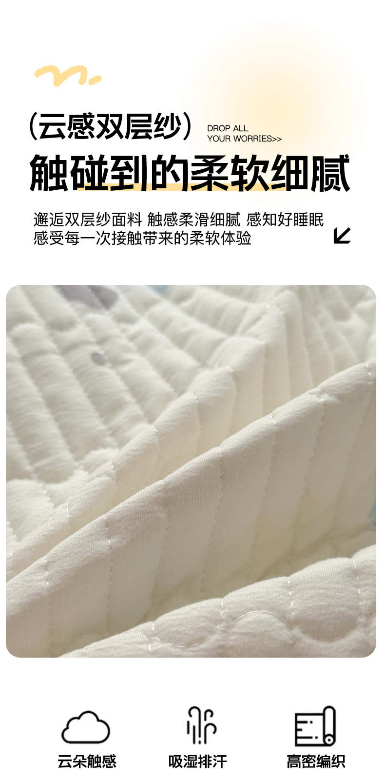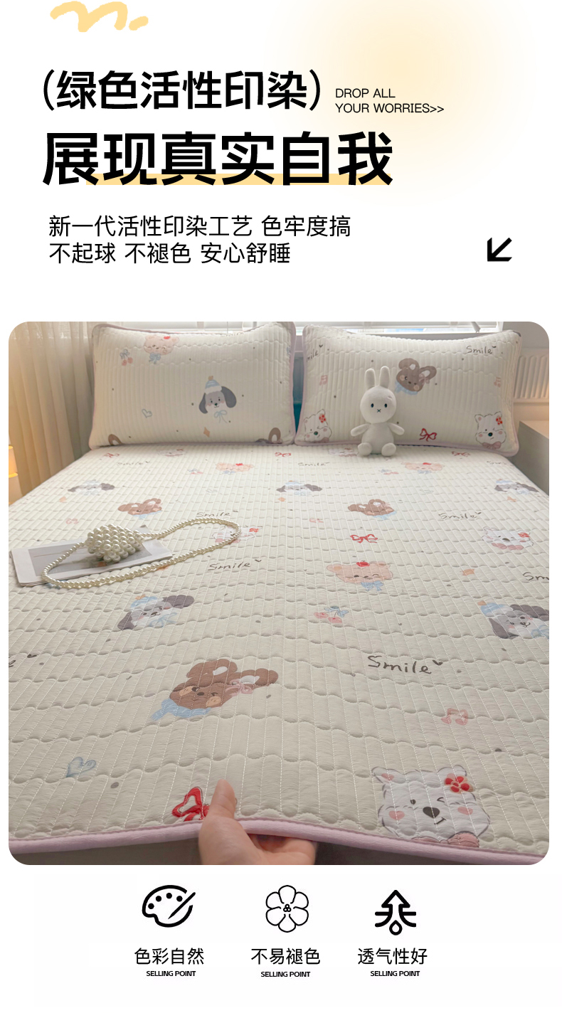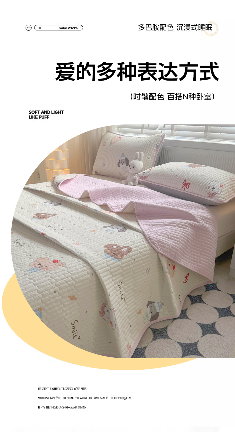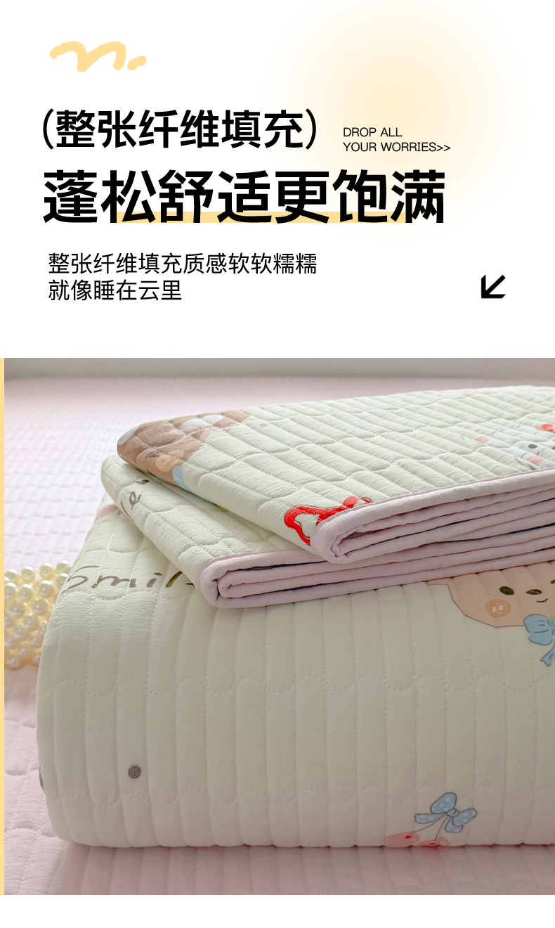 • 91家纺网 家纺一手货源 找家纺 悠米悠家 2026春夏新款木棉双层纱单床盖 床盖单件 萌趣派对