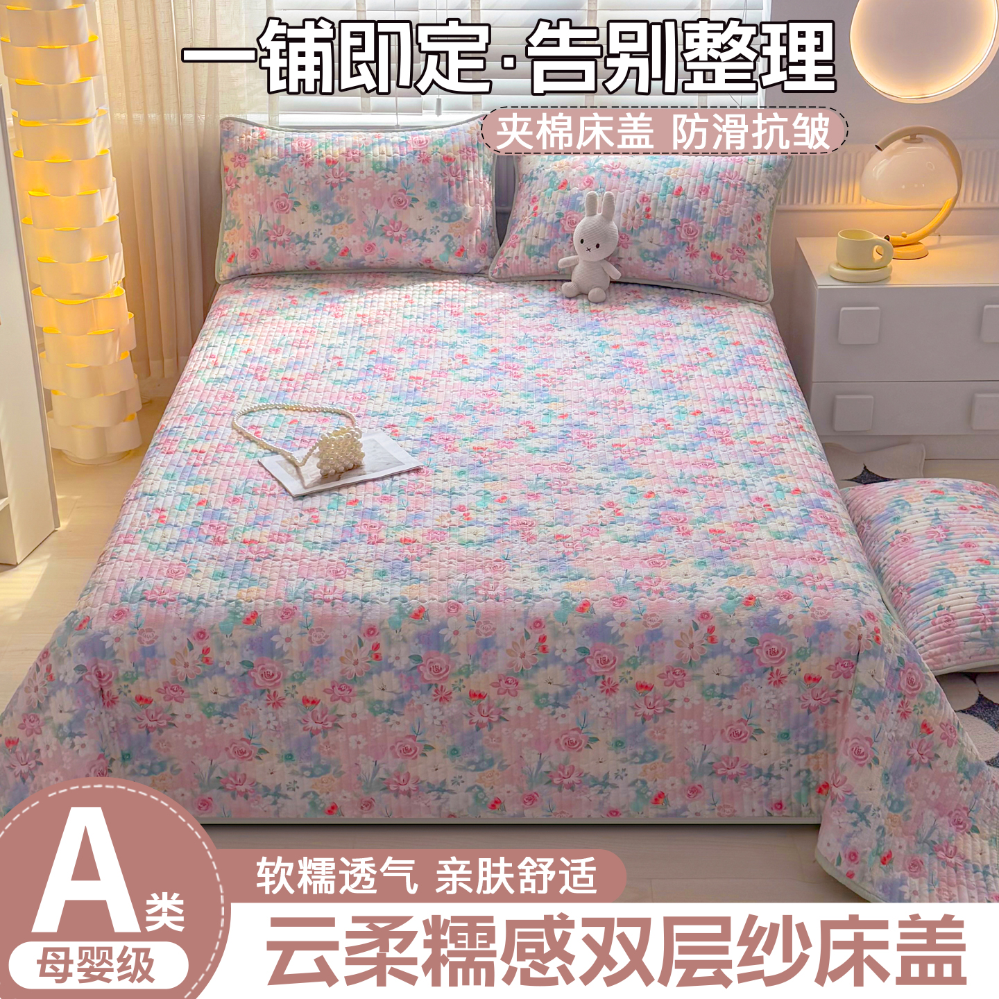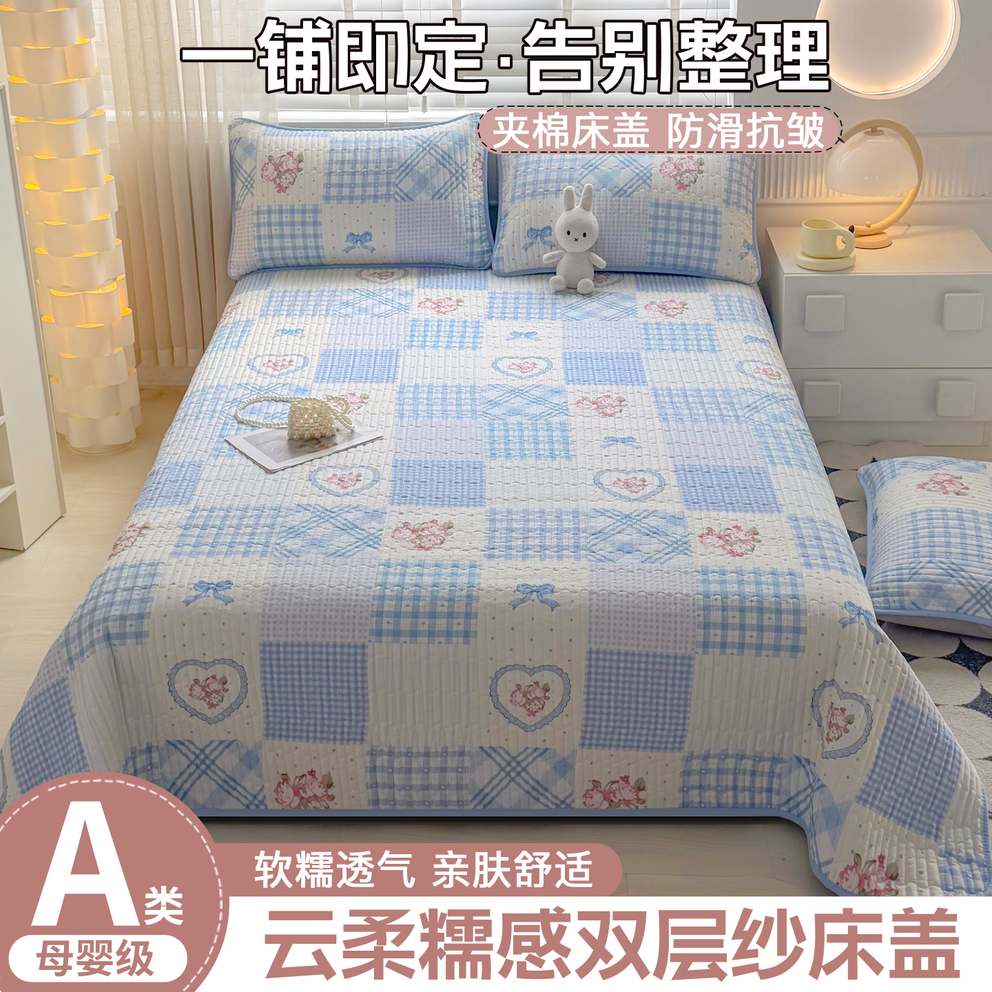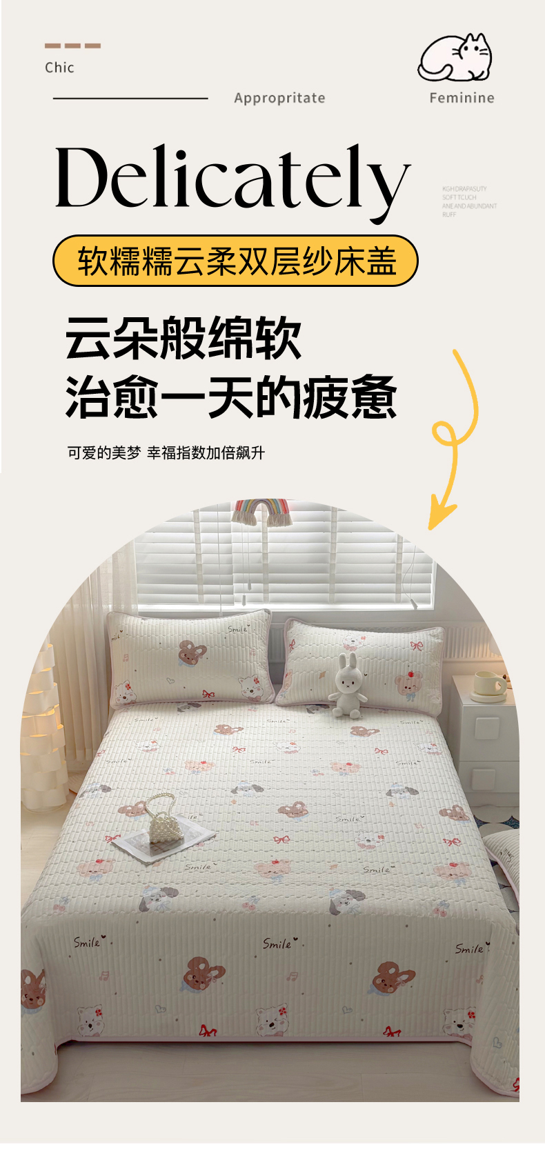 • 91家纺网 家纺一手货源 找家纺 悠米悠家 2026春夏新款木棉双层纱单床盖 床盖单件 萌趣派对