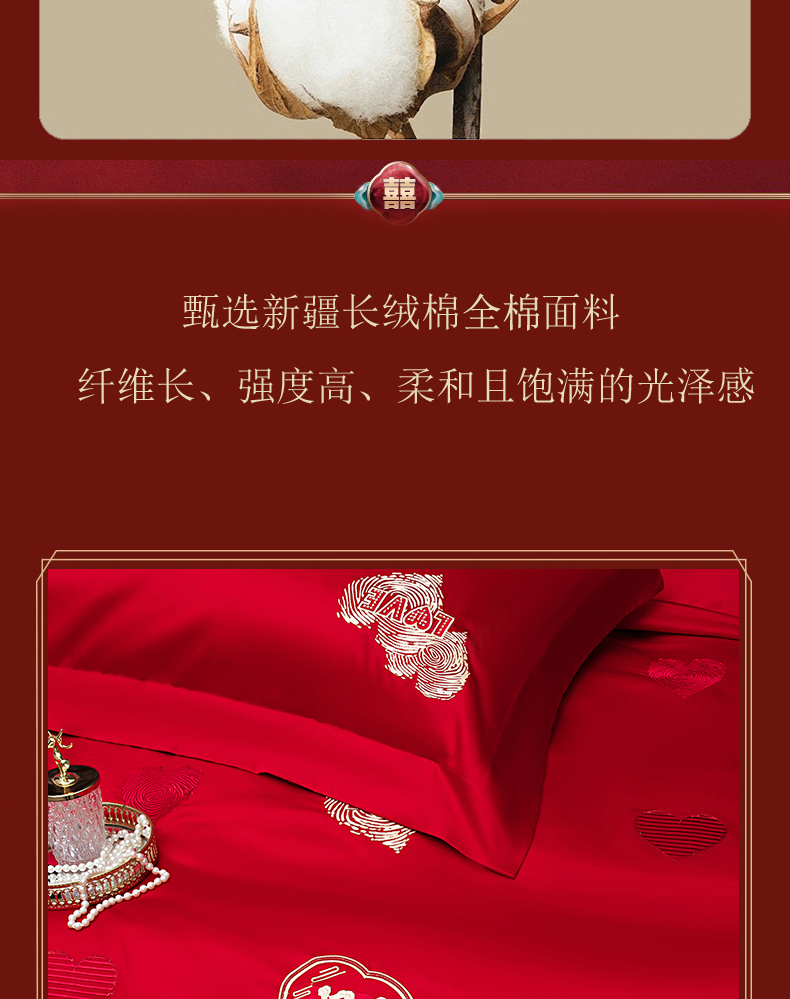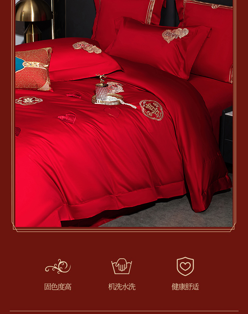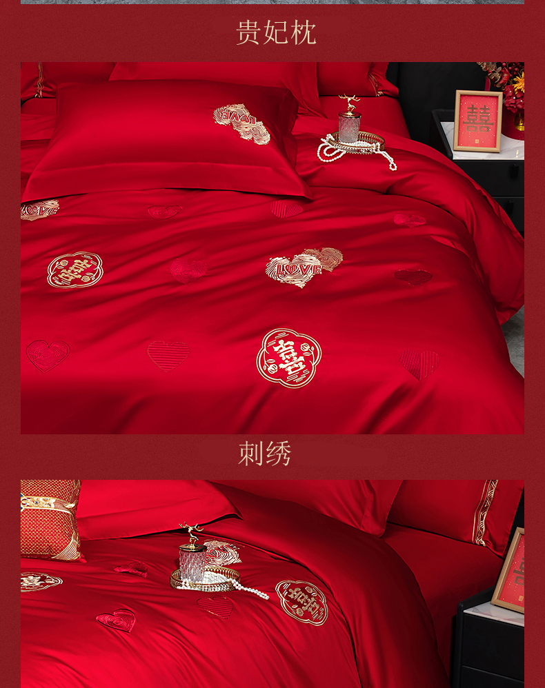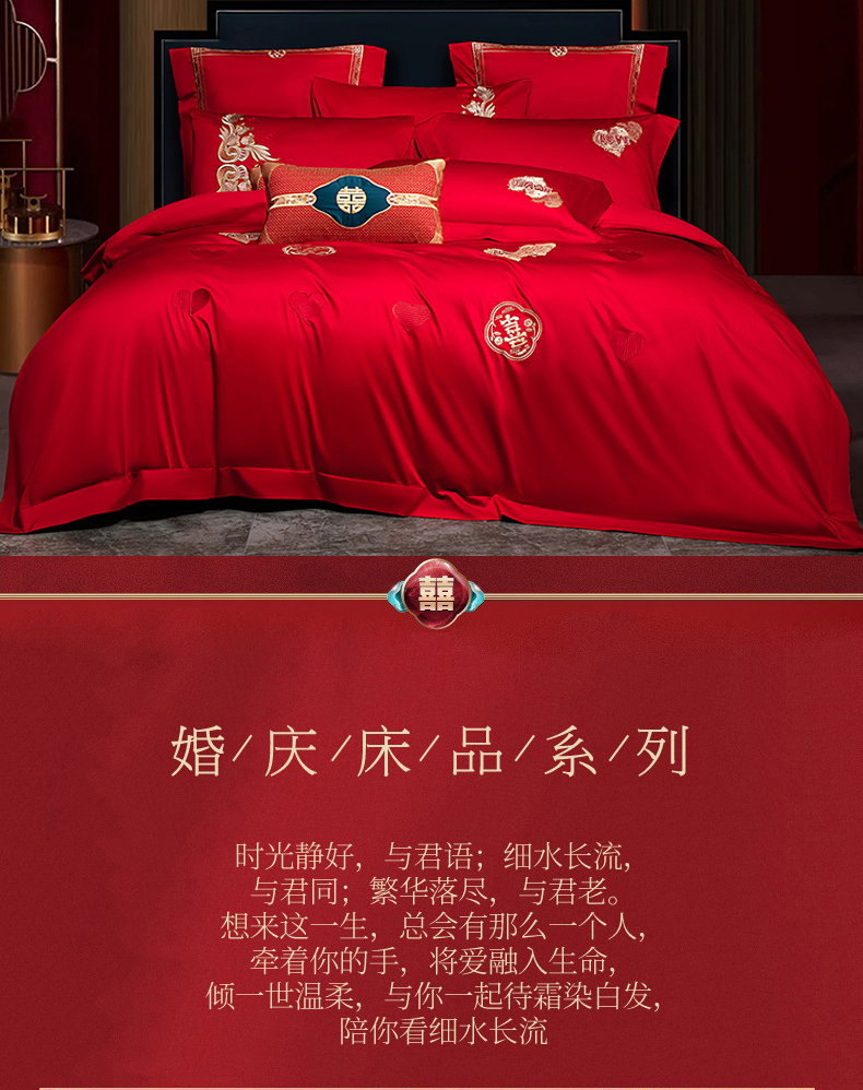 当前位置: 91家纺网 > 商品网购 > 床品套件 > 四件套 > 婚庆四件套 > 蒂爵 2026年100支婚庆长绒棉纯棉时尚小红书爆款刺绣婚庆四件套多件套280系列 心动