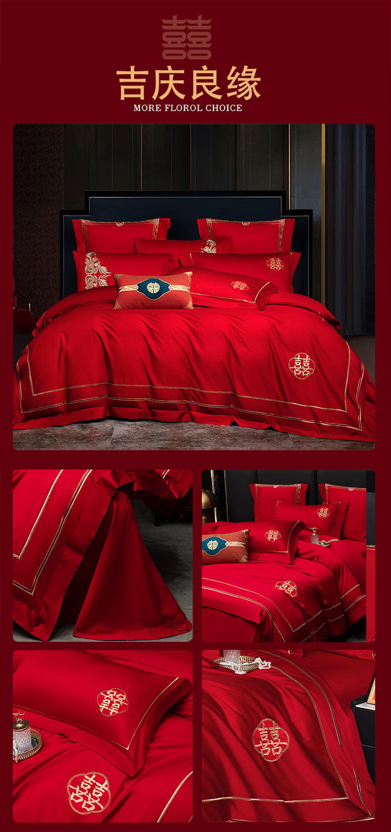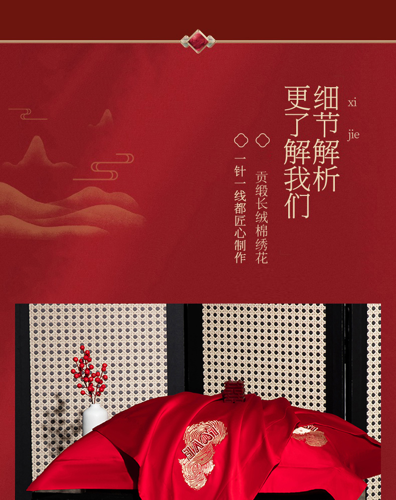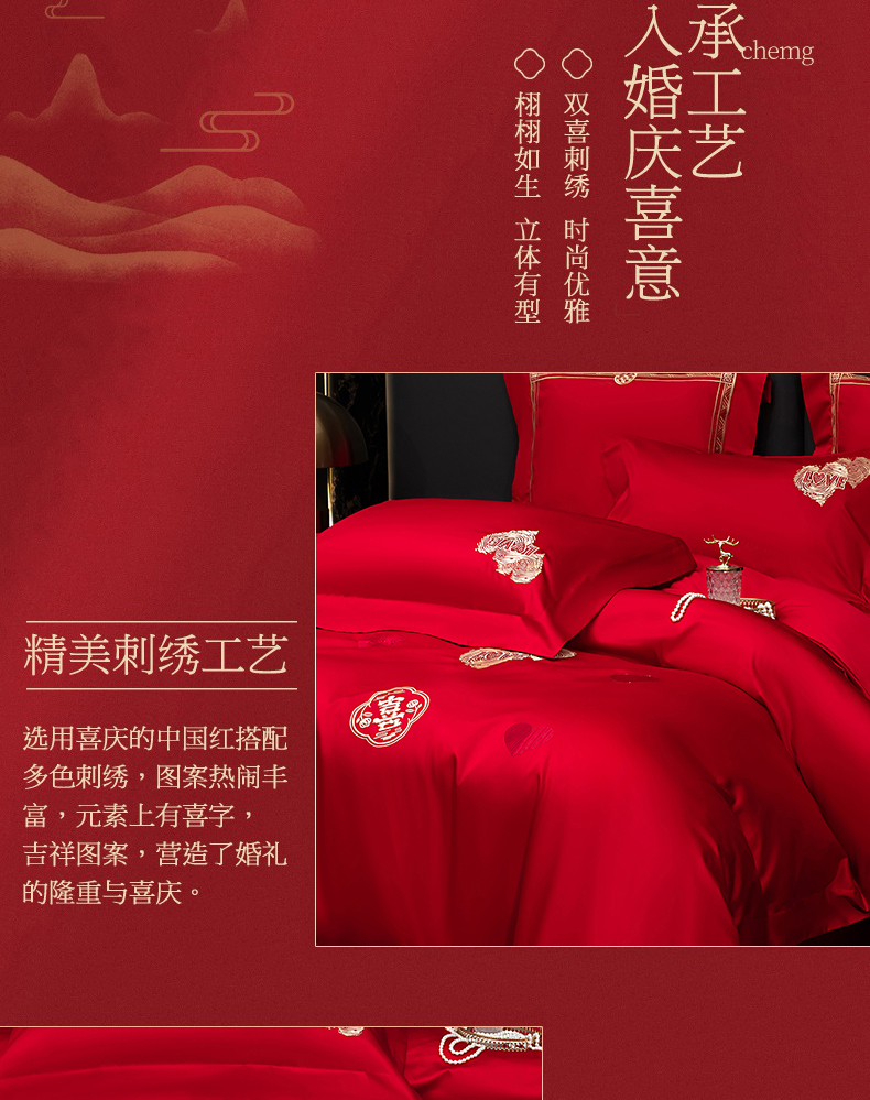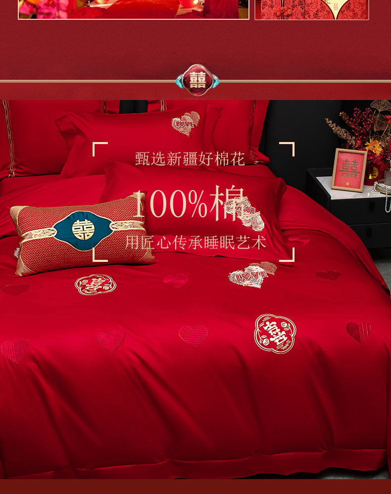 当前位置: 91家纺网 > 商品网购 > 床品套件 > 四件套 > 婚庆四件套 > 蒂爵 2026年100支婚庆长绒棉纯棉时尚小红书爆款刺绣婚庆四件套多件套280系列 心动