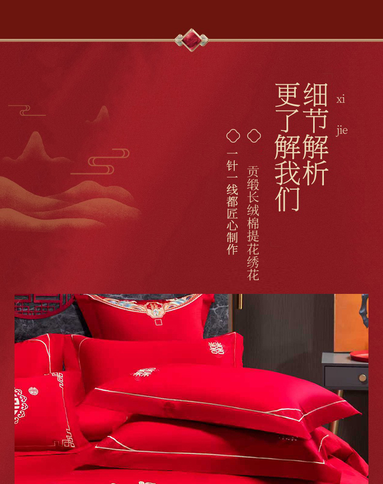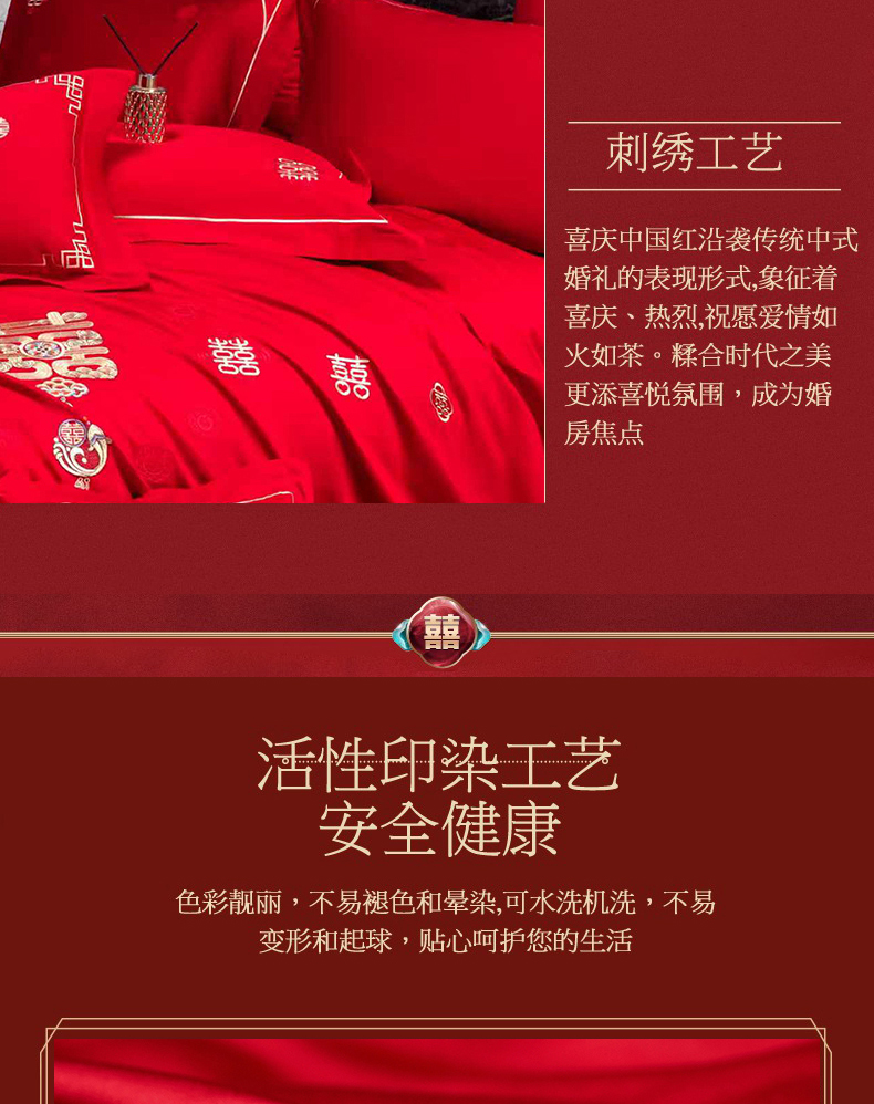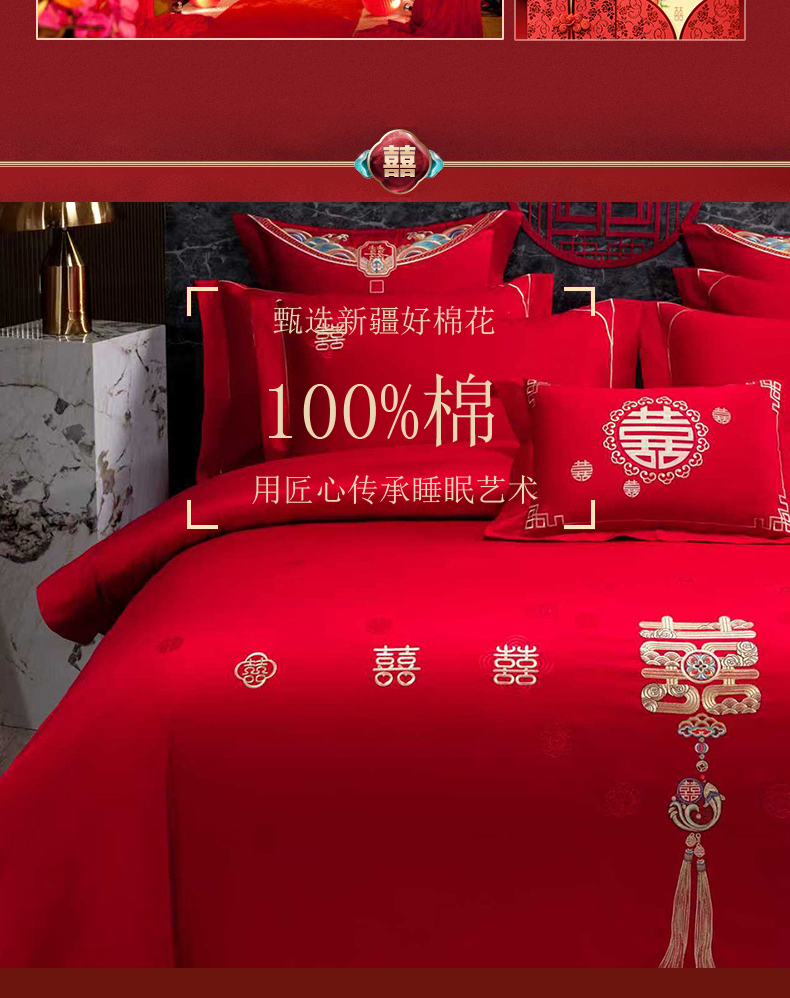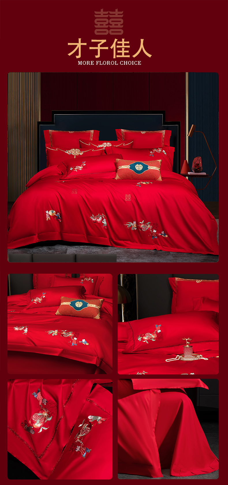 当前位置: 91家纺网 > 商品网购 > 床品套件 > 四件套 > 婚庆四件套 > 蒂爵 2026年100支婚庆长绒棉纯棉时尚小红书爆款刺绣婚庆四件套多件套280系列 喜韵佳缘