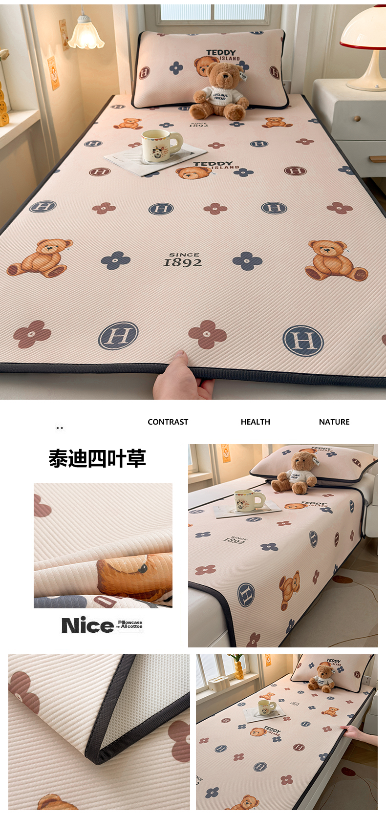 当前位置: 91家纺网 > 商品网购 > 床上用品 > 凉席 > 凉席套件 > 慕木家纺 2026新款A类三明治复合冰丝席泰迪爱兰系列学生款(正版授权)(提供买家秀) 泰迪菱形