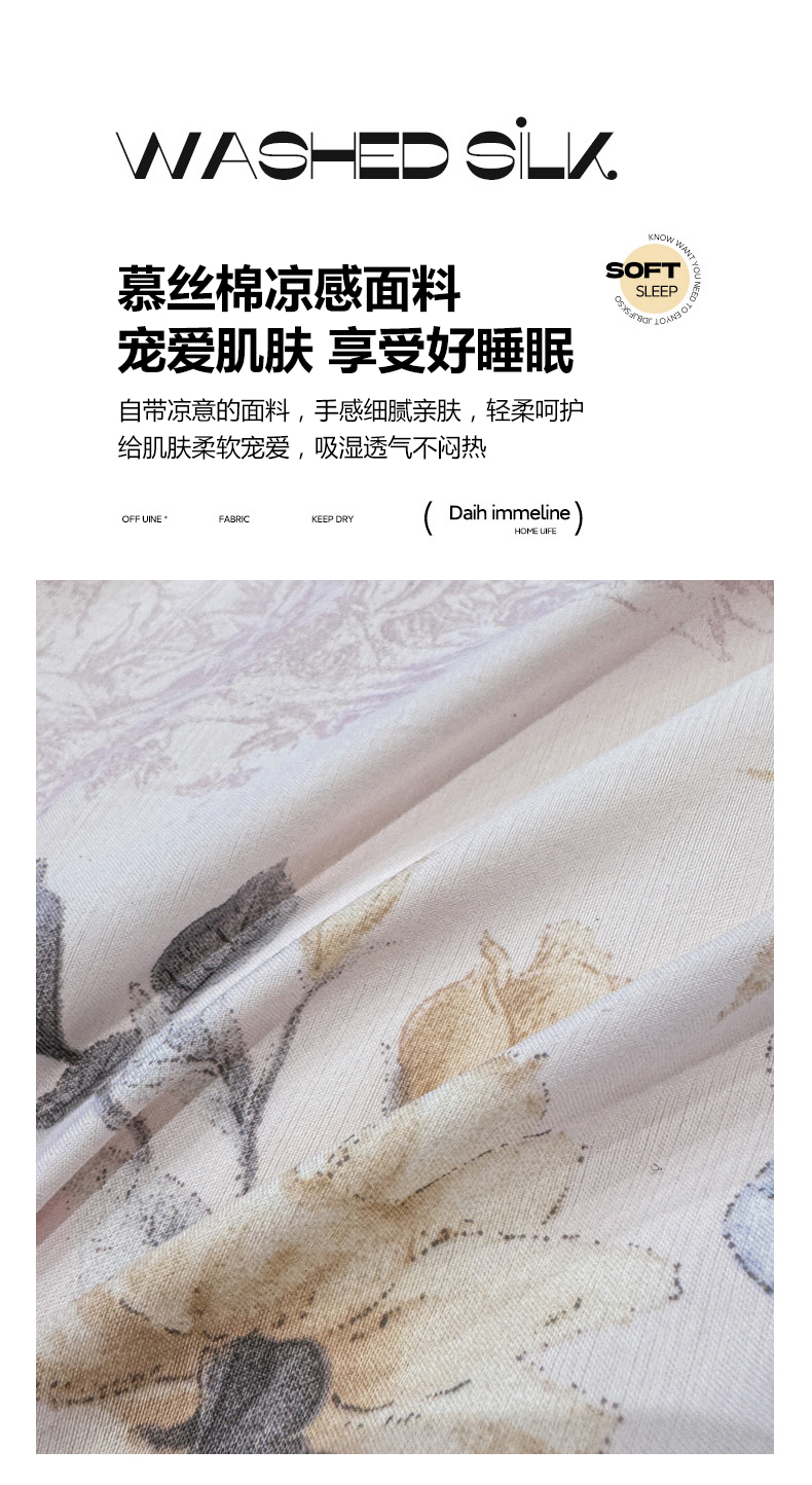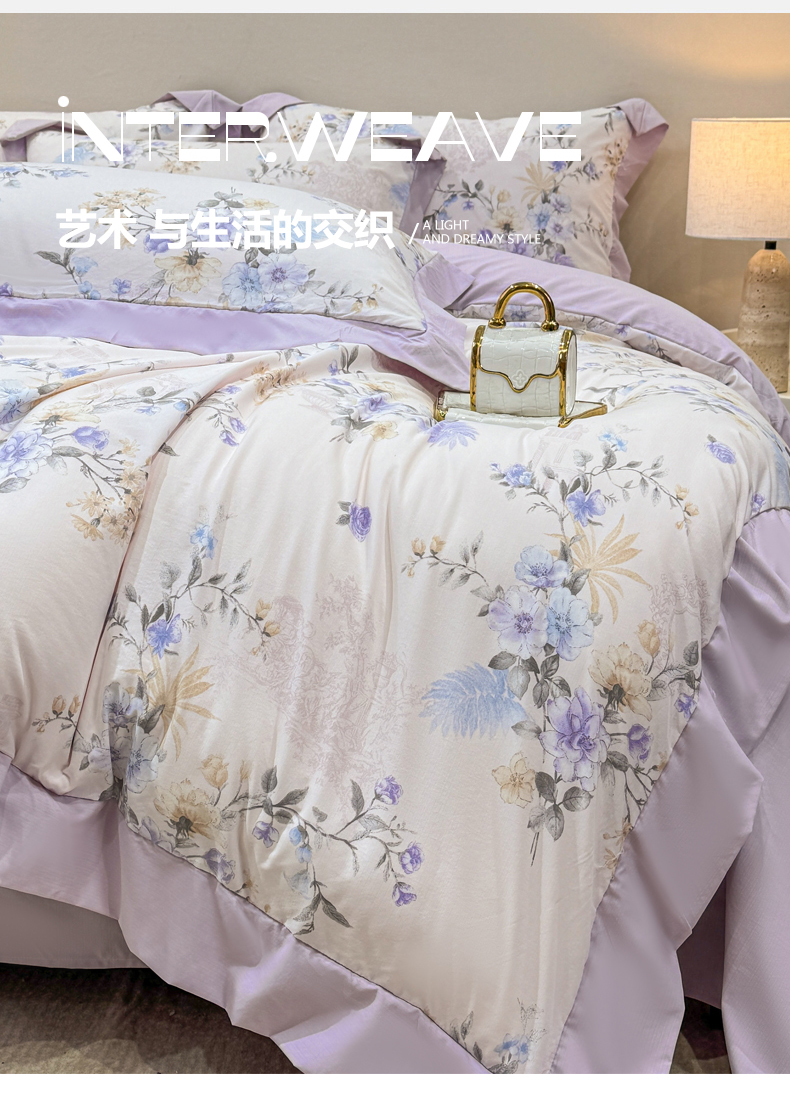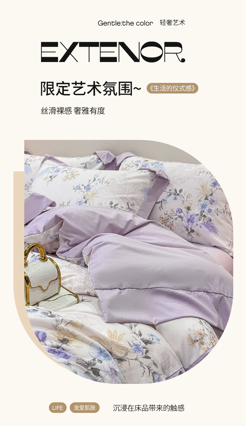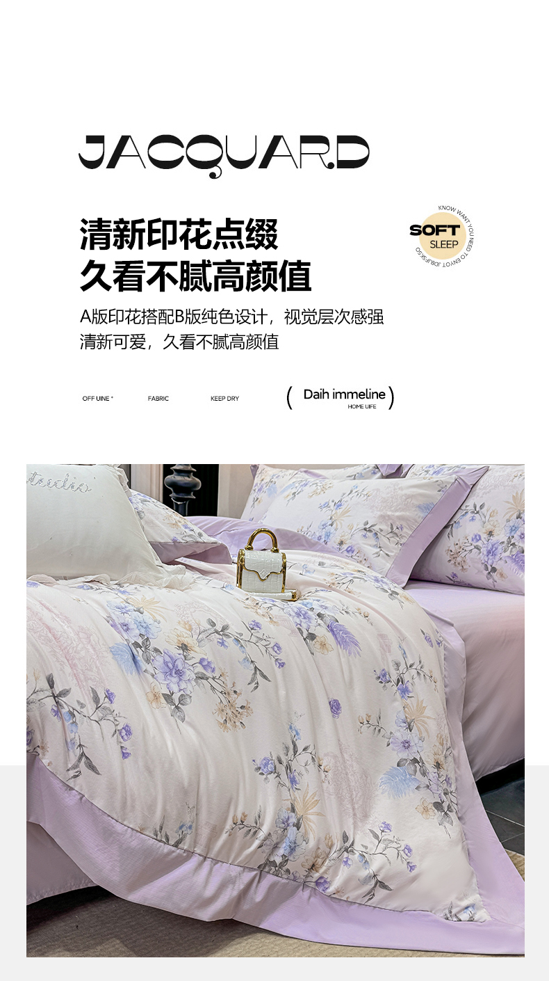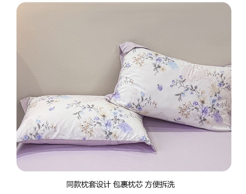 当前位置: 91家纺网 > 商品网购 > 床品套件 > 四件套 > 其它四件套 > 慕木家纺 2026新款A类印花拼角工艺慕斯棉四件套系列(抽空压缩可供跨境)提供买家秀 莫兰迪+浅紫