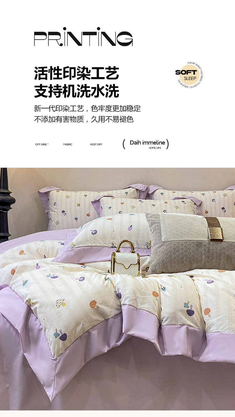 当前位置: 91家纺网 > 商品网购 > 床品套件 > 四件套 > 其它四件套 > 慕木家纺 2026新款A类印花拼角工艺慕斯棉四件套系列(抽空压缩可供跨境)提供买家秀 凡尔赛+粉