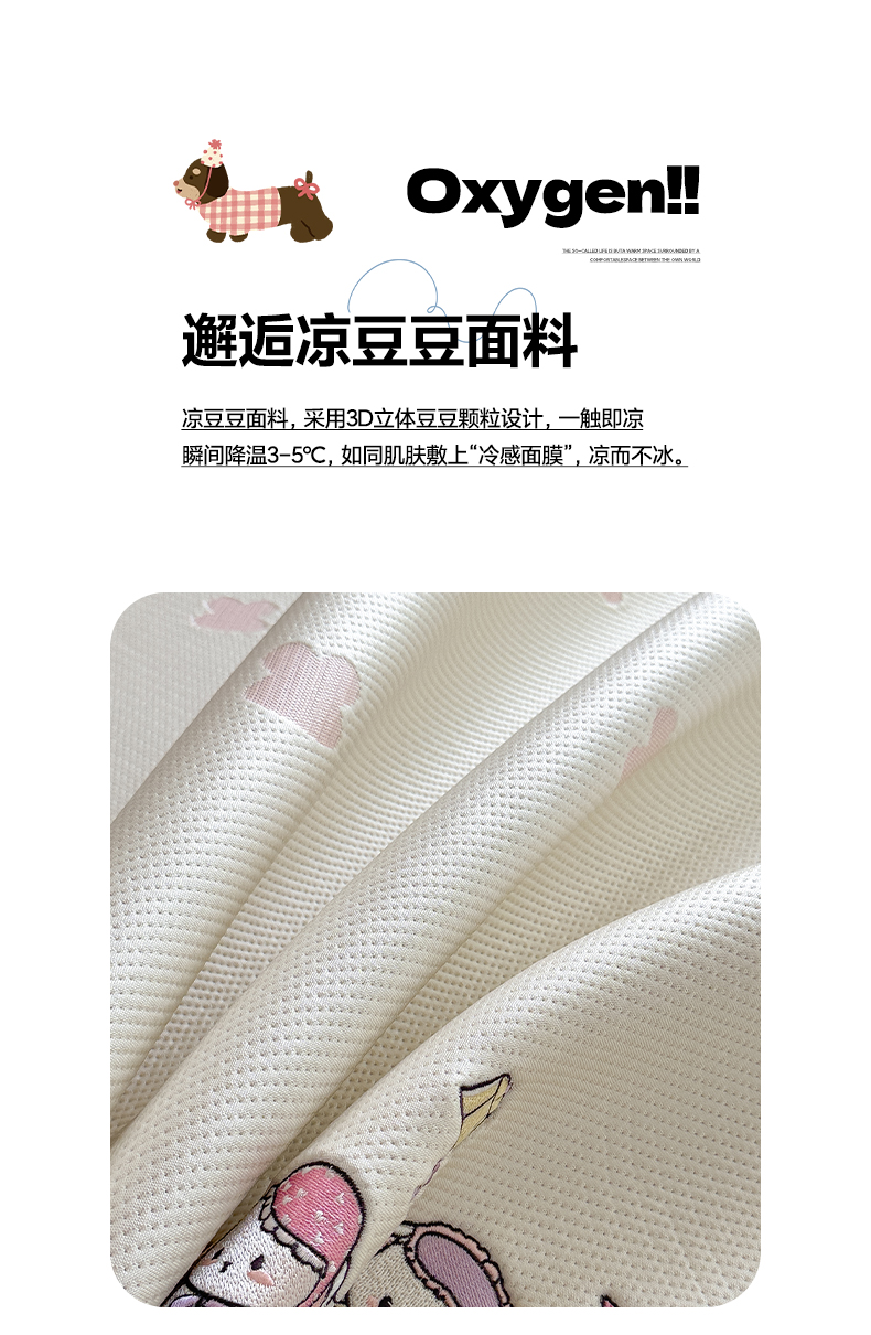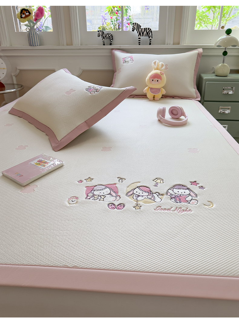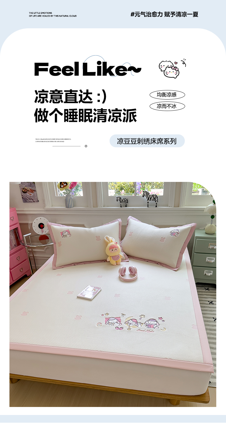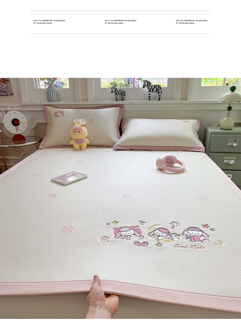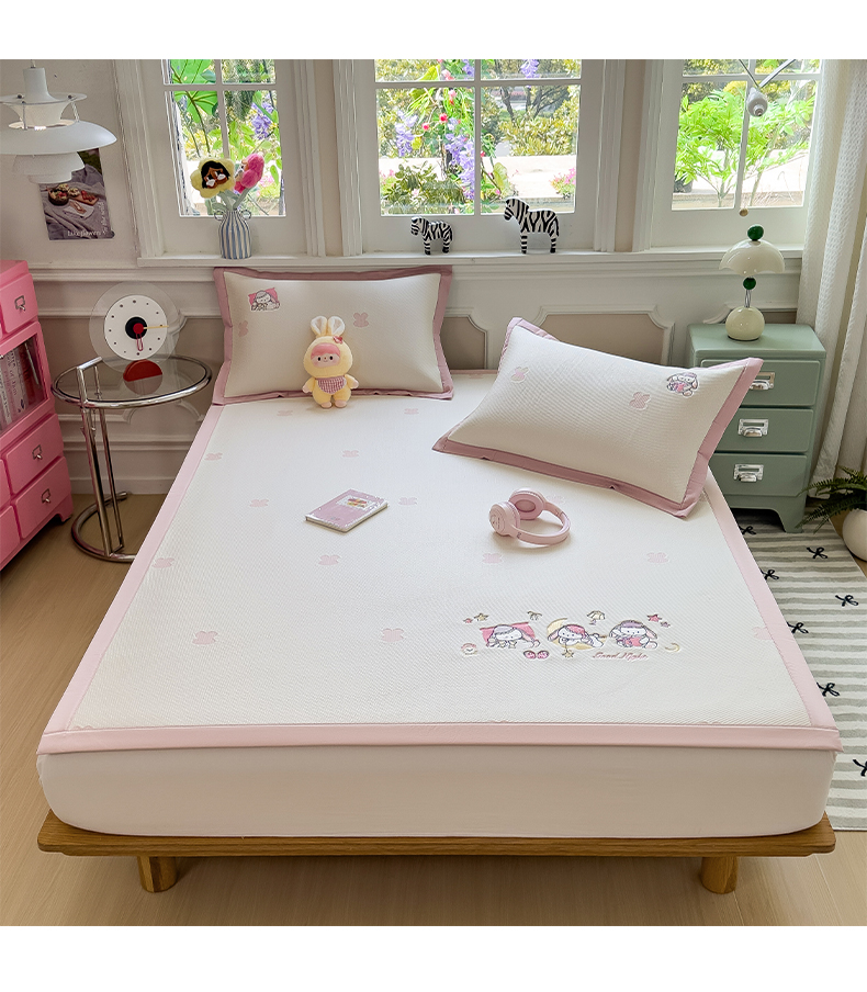 (总)眠多宝(绒多宝) 2026新款卡通网红风系列凉豆豆三件套 凉豆豆印加绣系列 A类凉豆豆床席床笠--床席款
