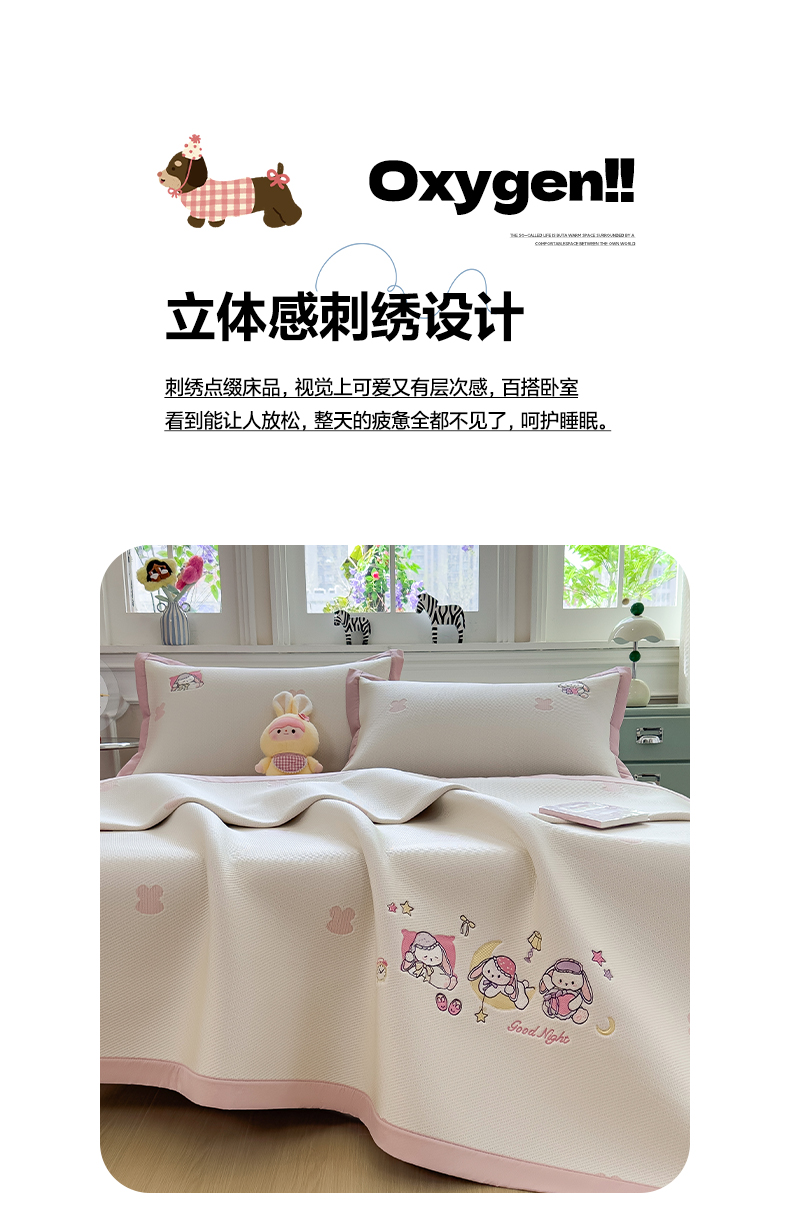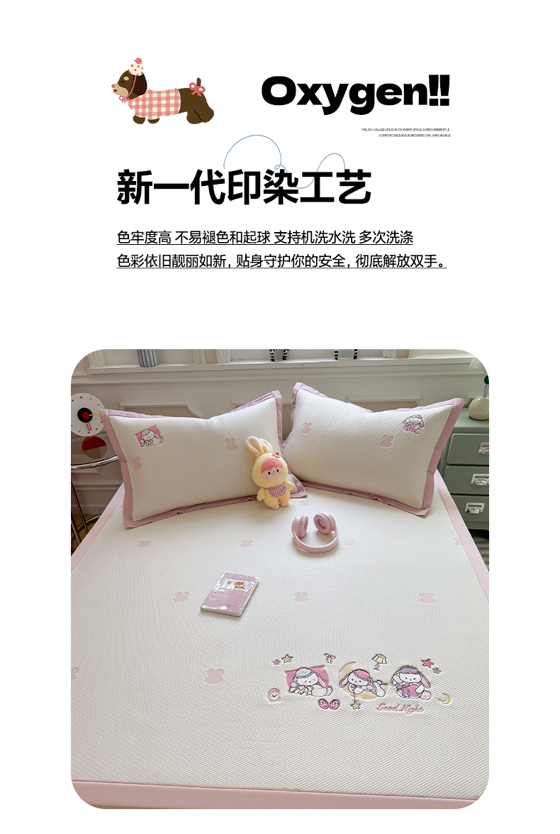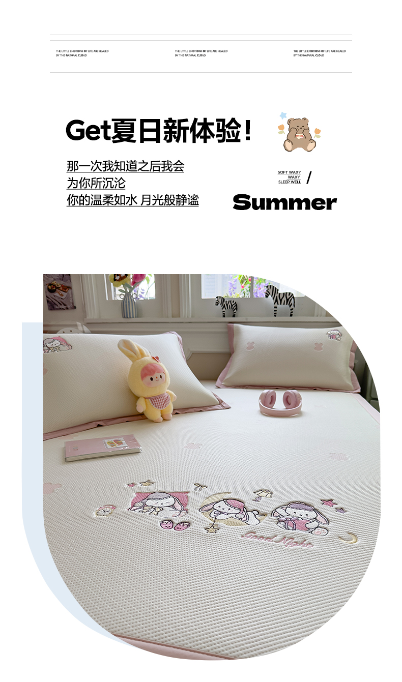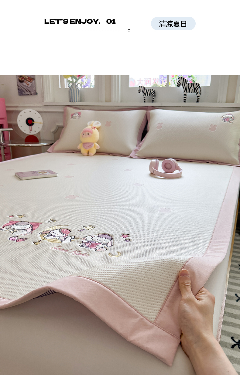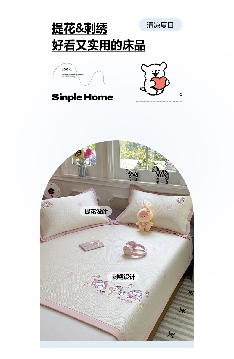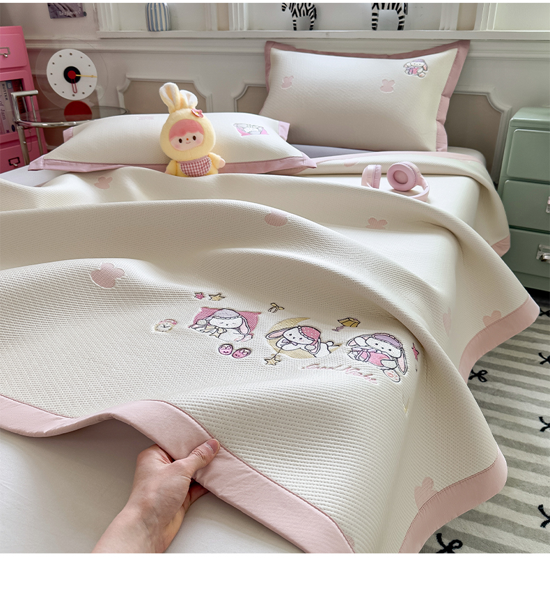 (总)眠多宝(绒多宝) 2026新款卡通网红风系列凉豆豆三件套 凉豆豆印加绣系列 A类凉豆豆床席床笠--床席款