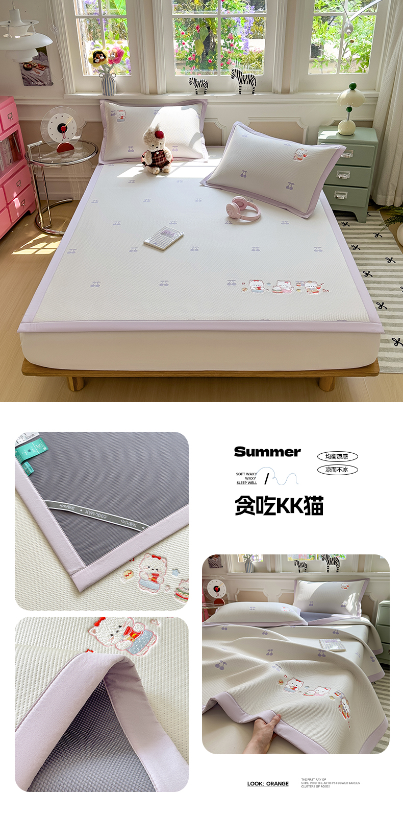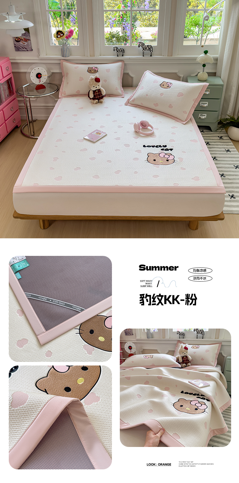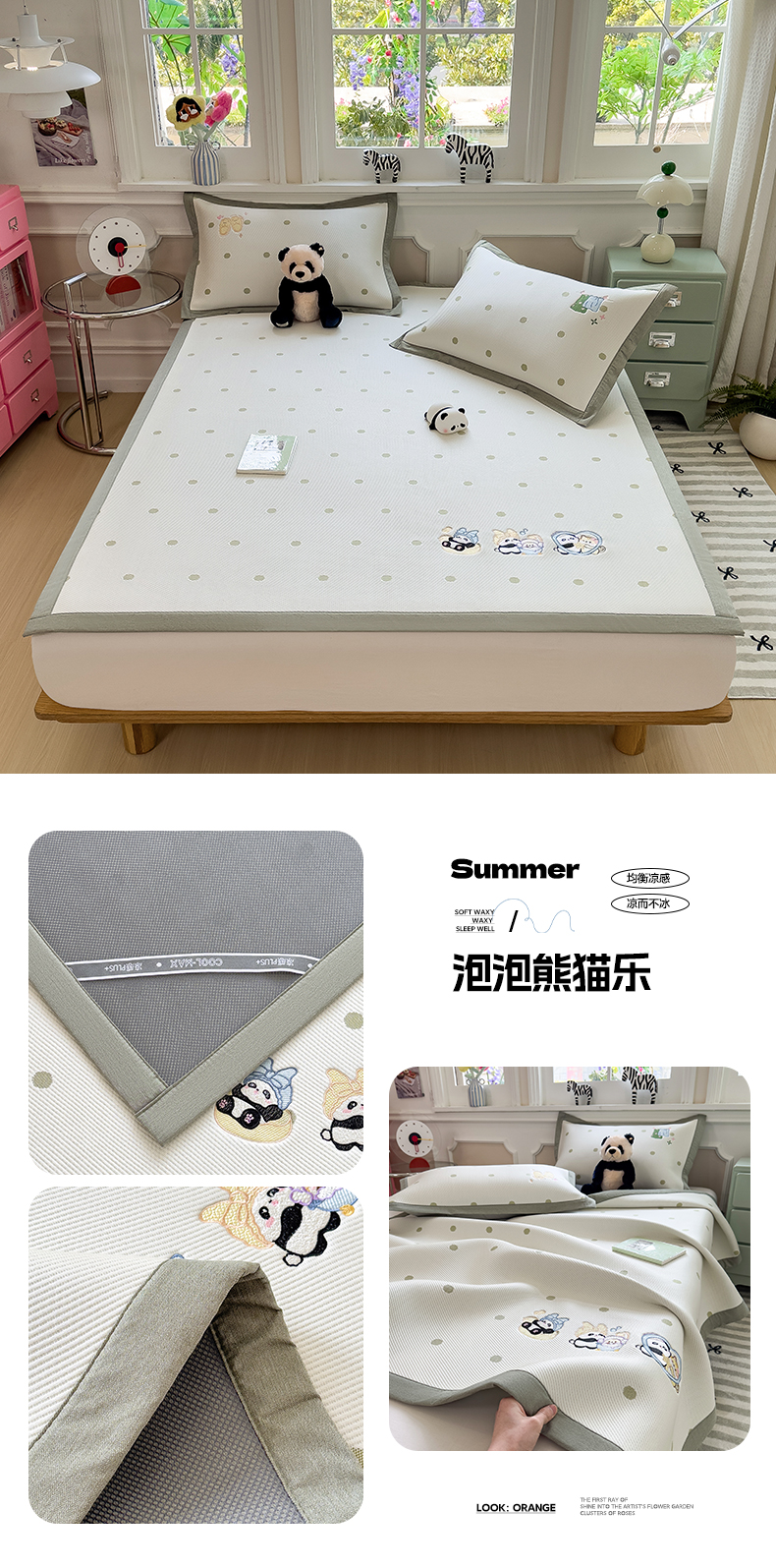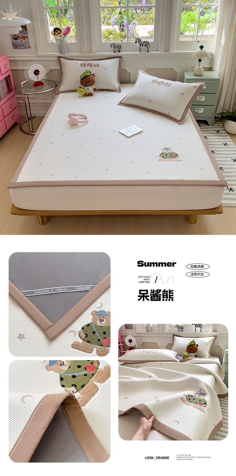 (总)眠多宝(绒多宝) 2026新款卡通网红风系列凉豆豆三件套 凉豆豆印加绣系列 A类凉豆豆床席床笠--床席款