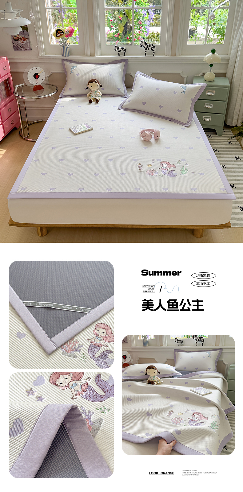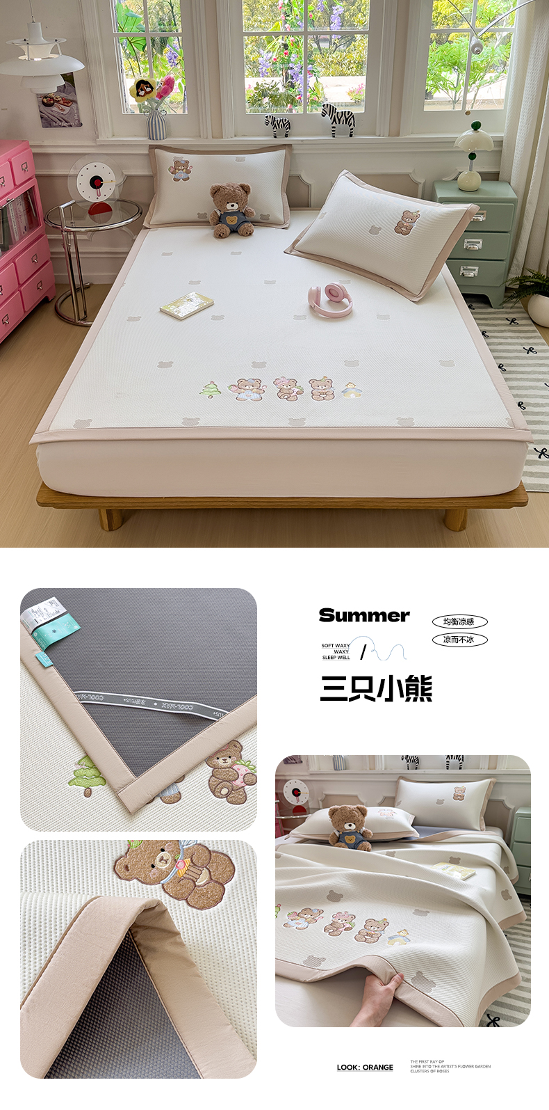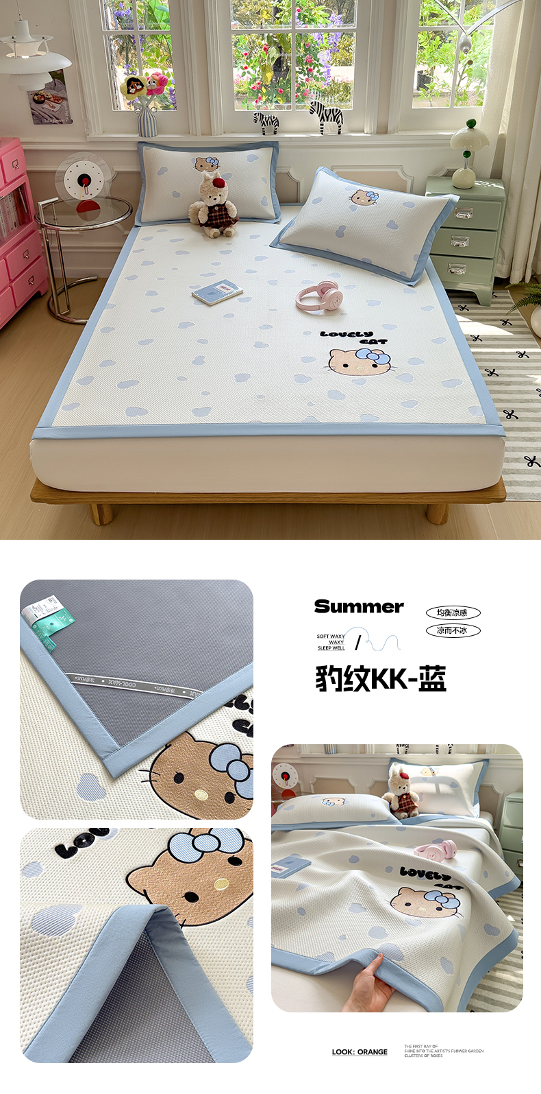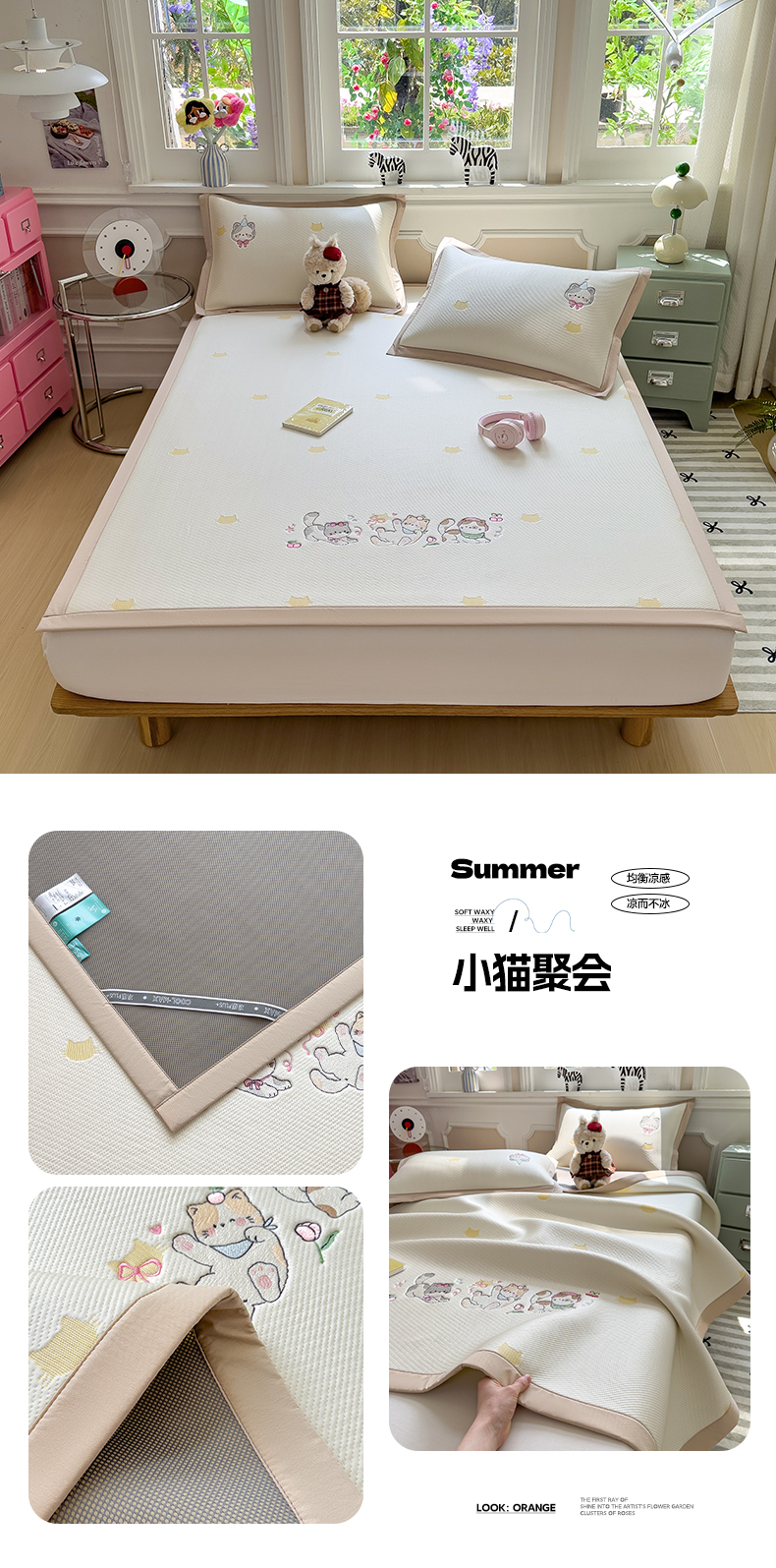 (总)眠多宝(绒多宝) 2026新款卡通网红风系列凉豆豆三件套 凉豆豆印加绣系列 A类凉豆豆床席床笠--床席款