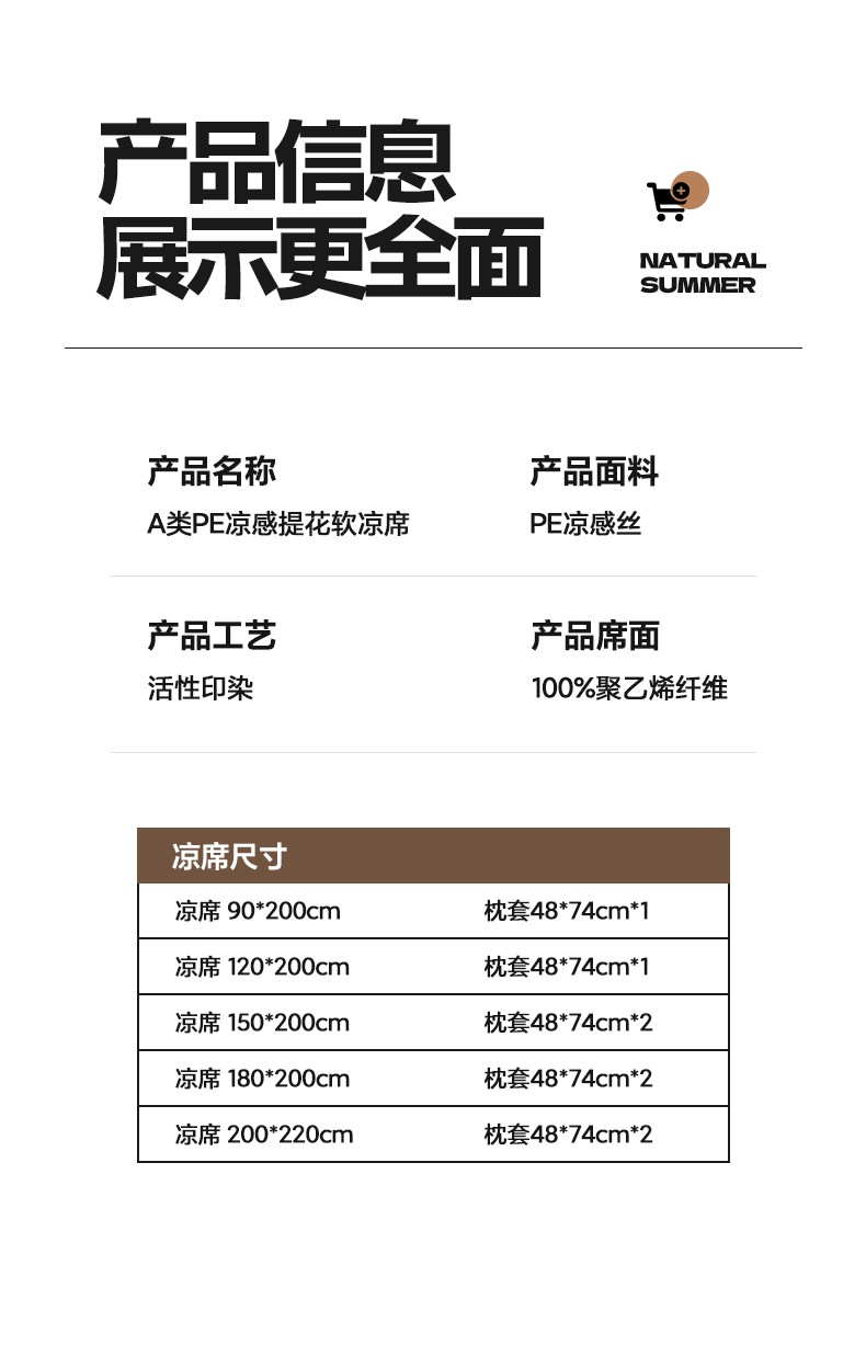 180x200cm凉席+枕套一对