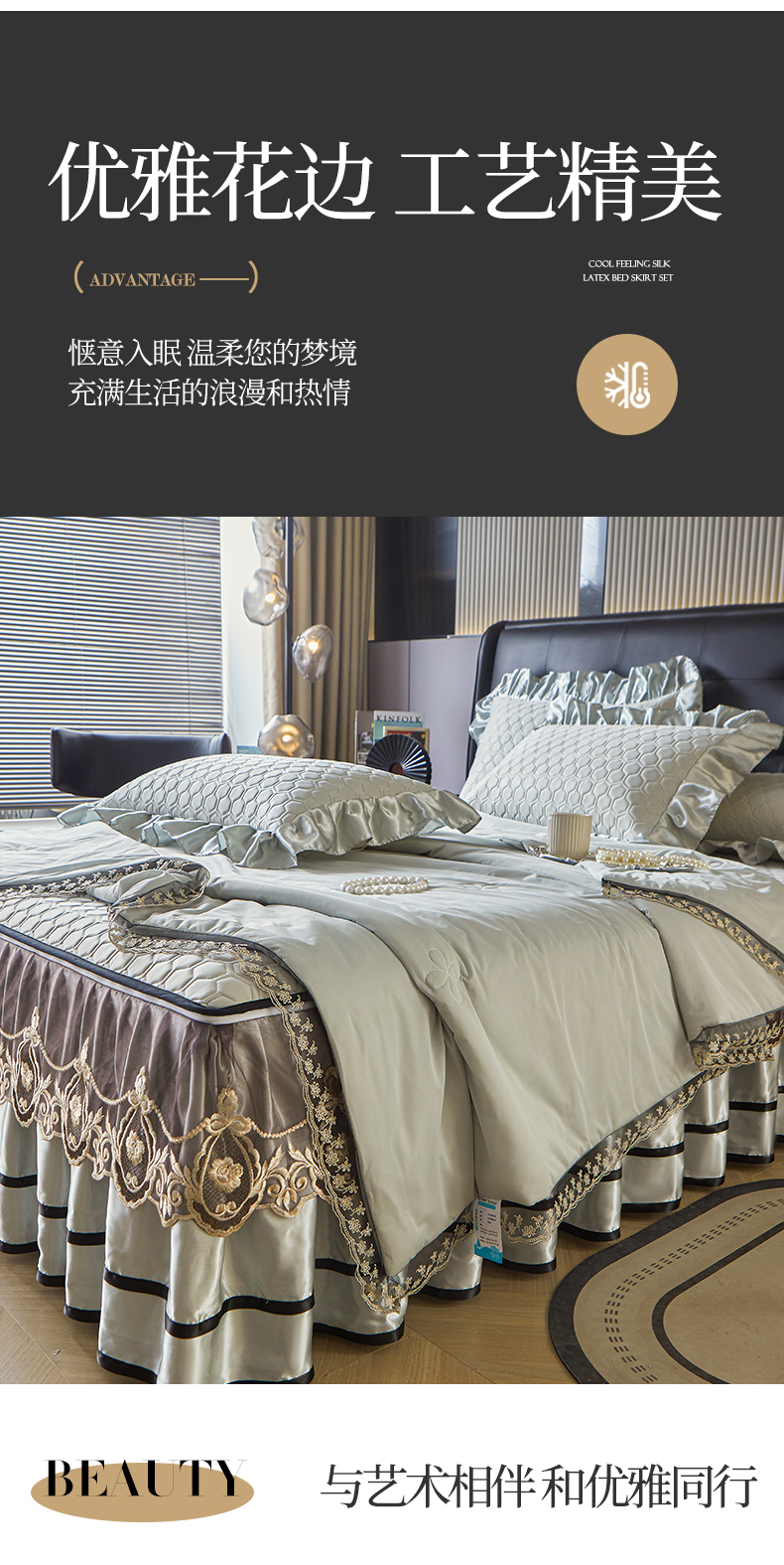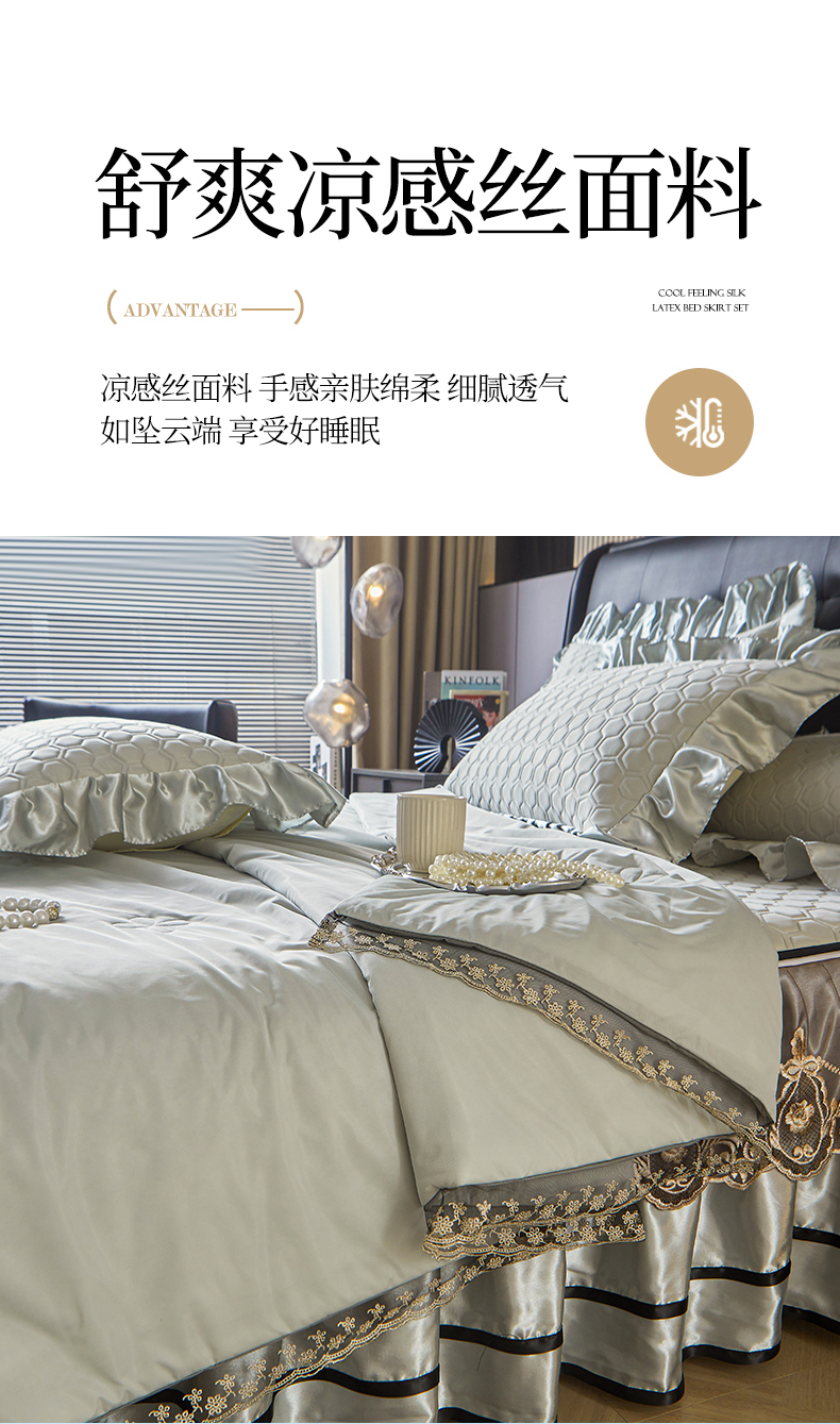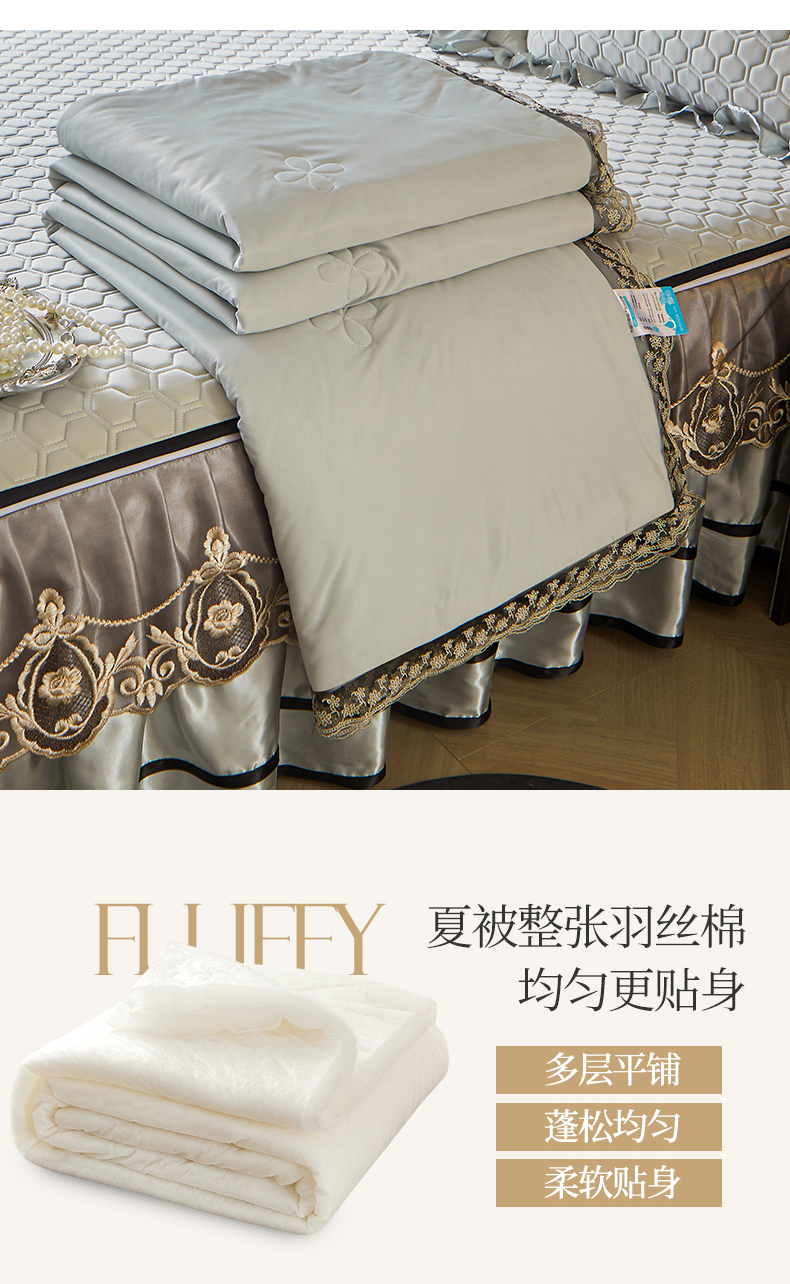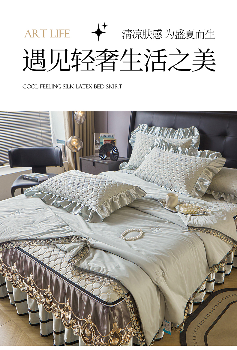好儿喜家纺 2026新款夏季夏被四件套乳胶床裙款-雅颂系列 雅颂-浅灰