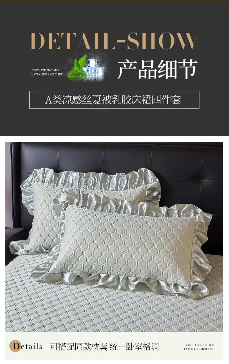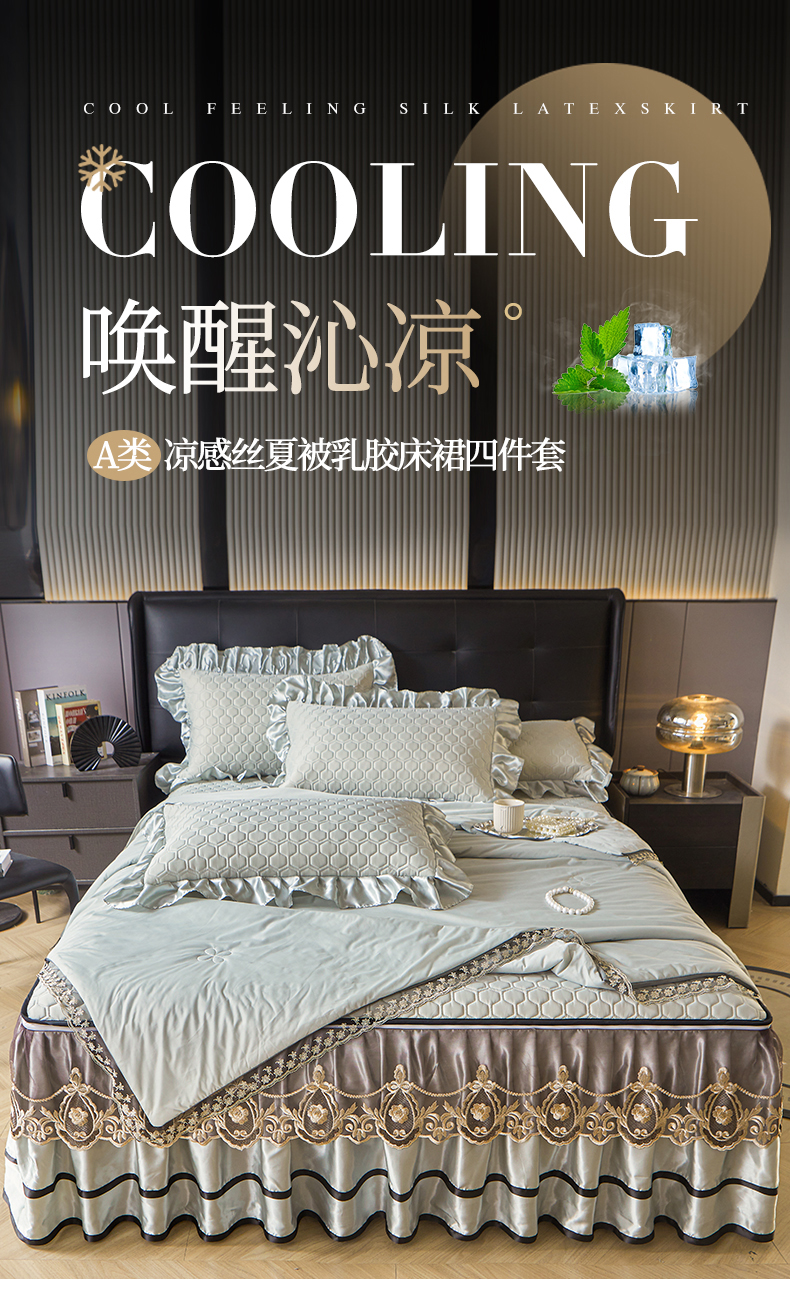 (总)好儿喜家纺 2024新款伊芙琳夏被凉席床裙四件套,浅绿,橄榄绿,奶白,浅粉,浅蓝