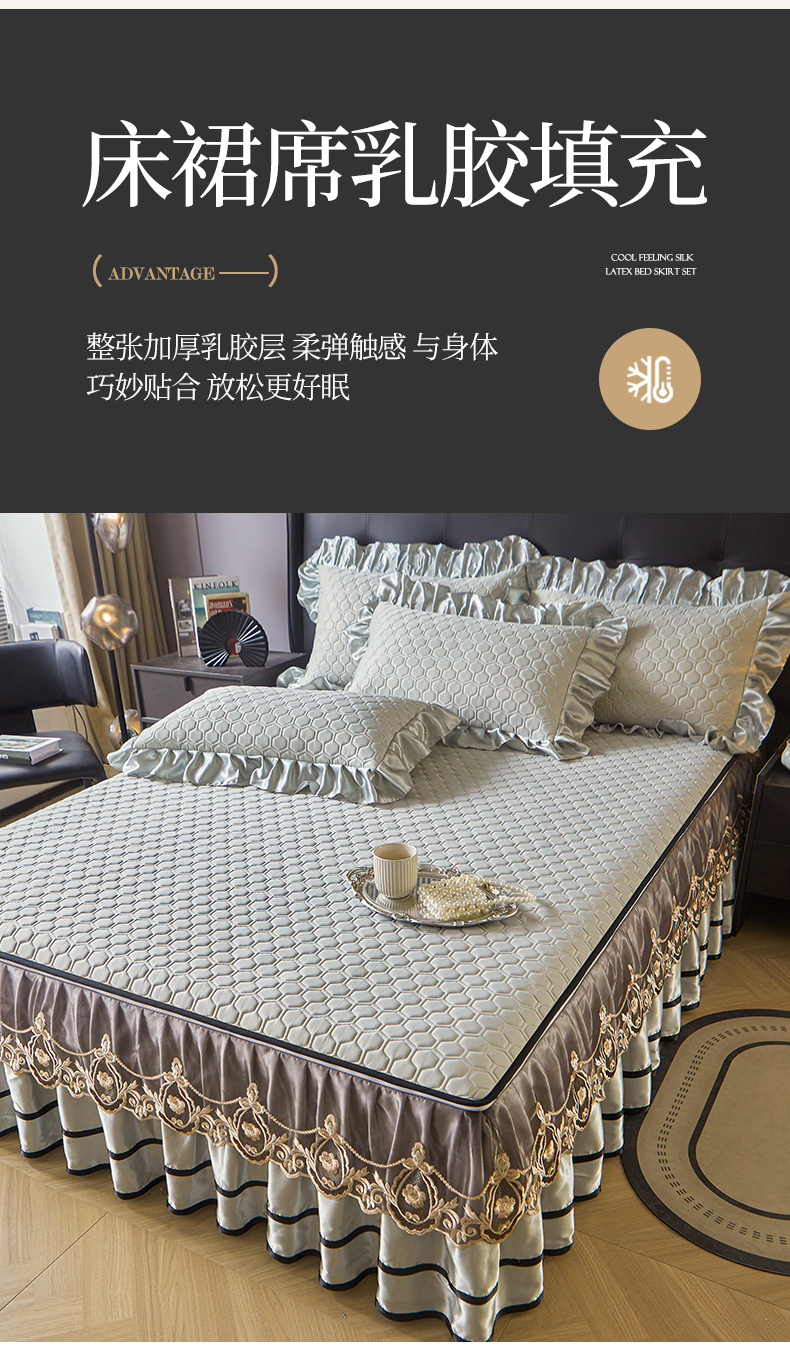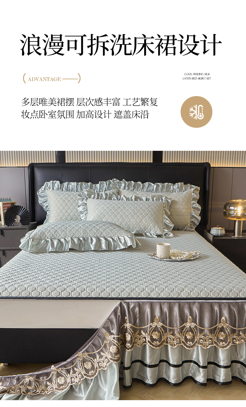 (总)好儿喜家纺 2024新款伊芙琳凉席床裙三件套,浅绿,橄榄绿,奶白,浅粉,浅蓝