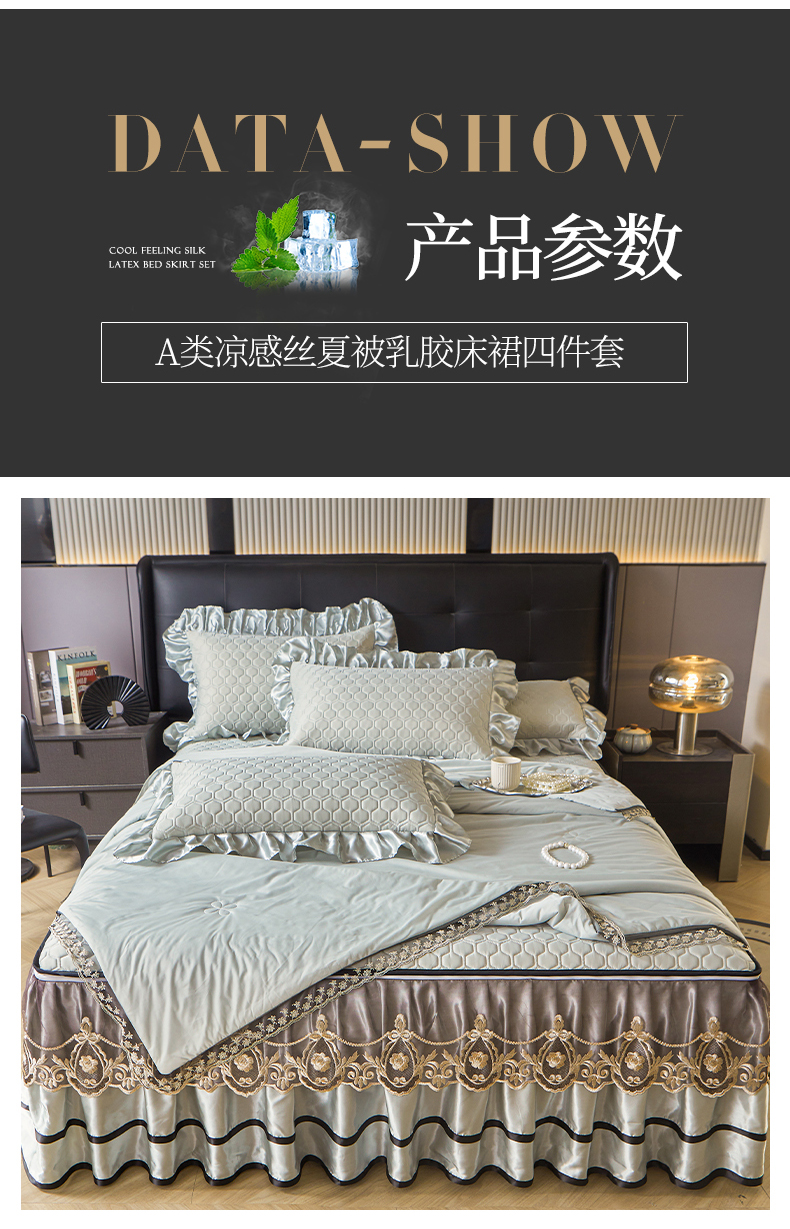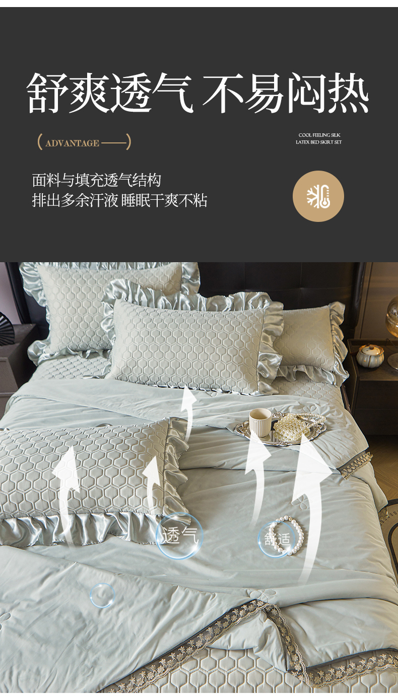 (总)好儿喜家纺 2026新款夏季夏被四件套乳胶床裙款-雅颂系列,雅颂-宾利蓝,雅颂-果绿,雅颂-奶白,雅颂-浅粉,雅颂-浅灰,雅颂-浅紫