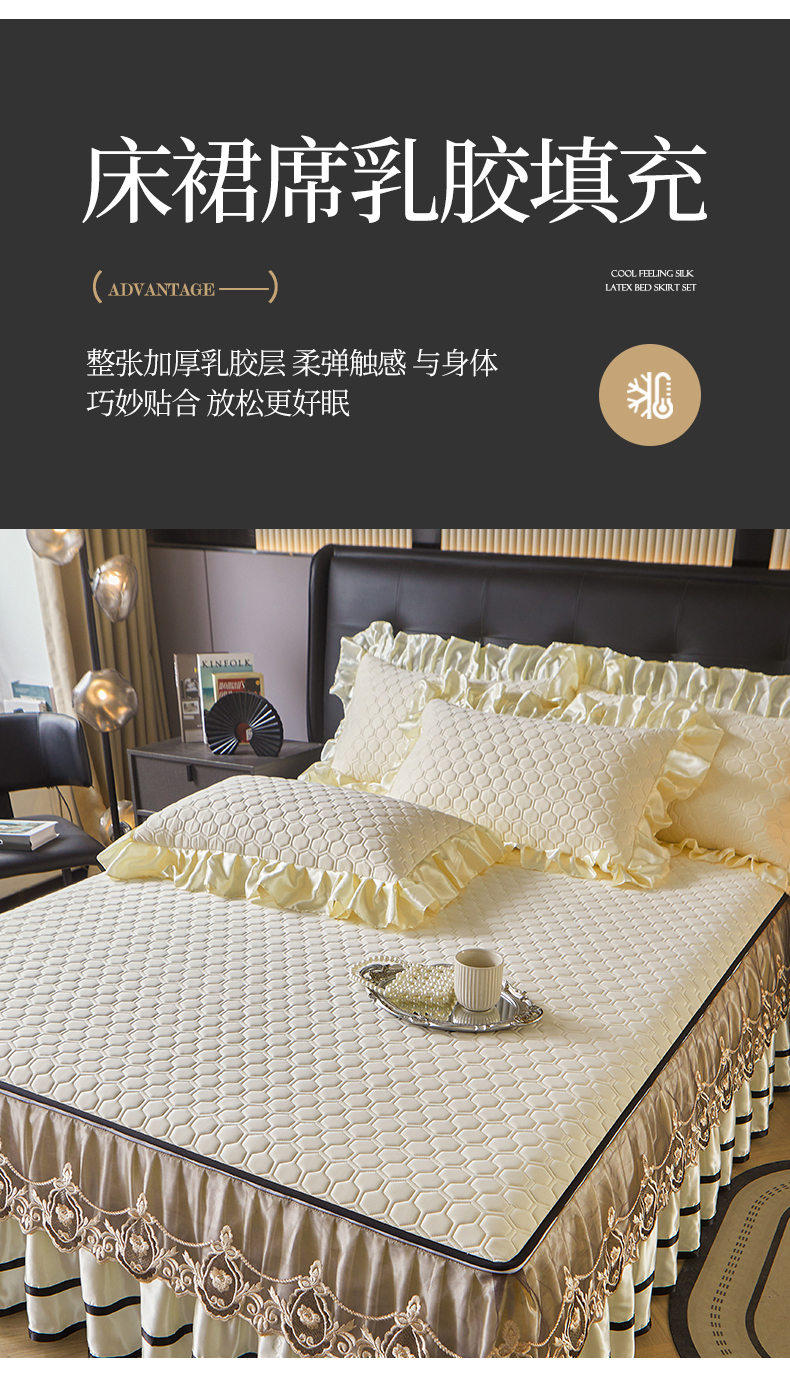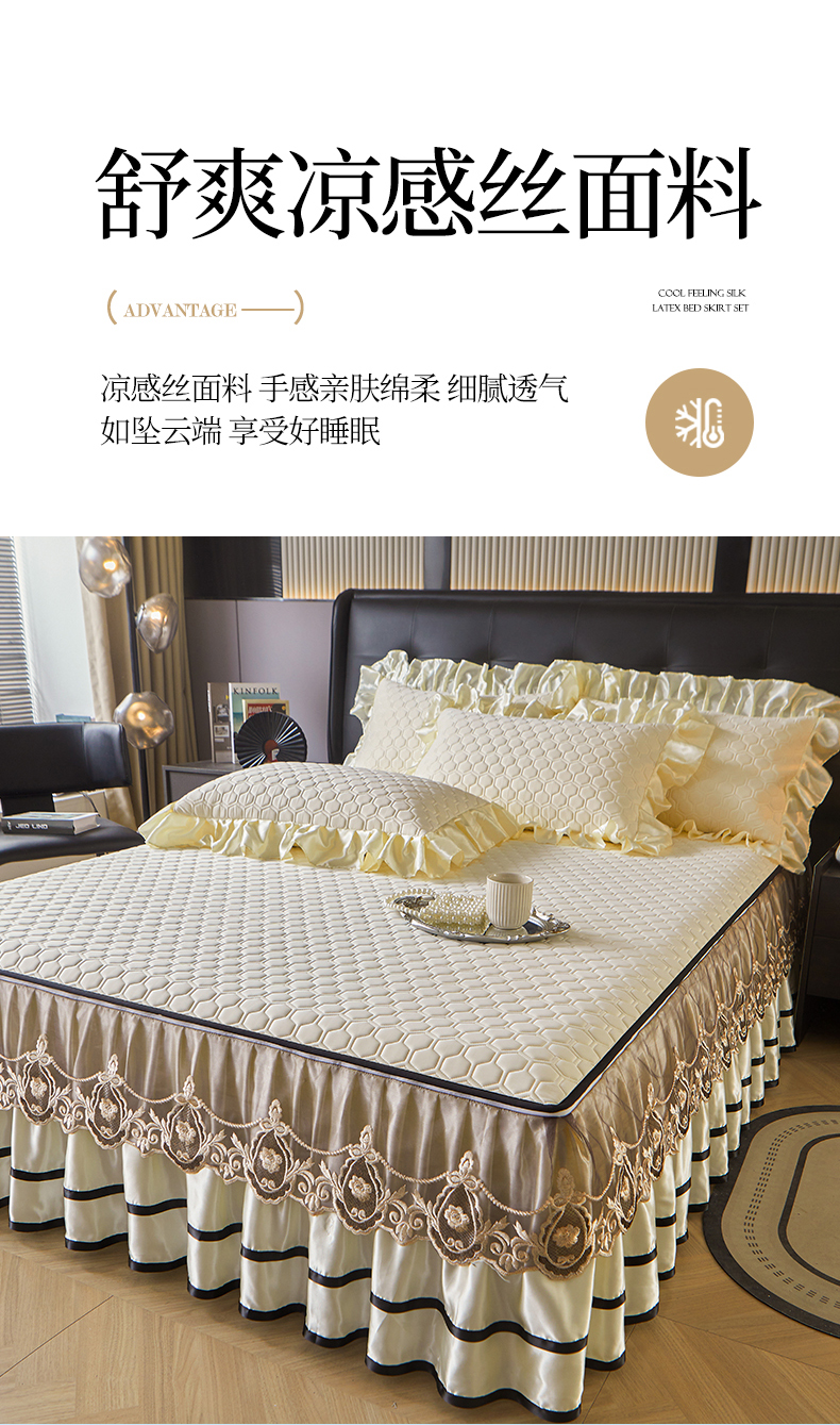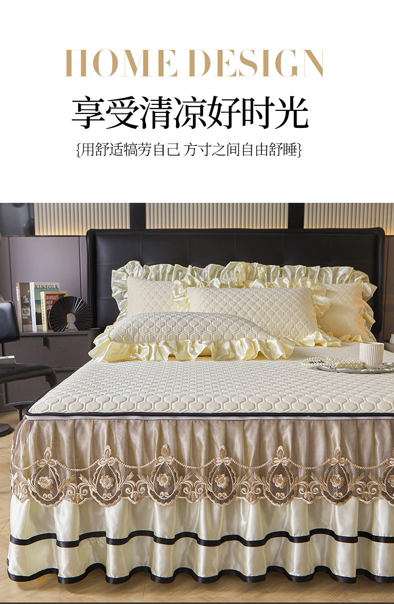 (总)好儿喜家纺 2024新款伊芙琳凉席床裙三件套,浅绿,橄榄绿,奶白,浅粉,浅蓝