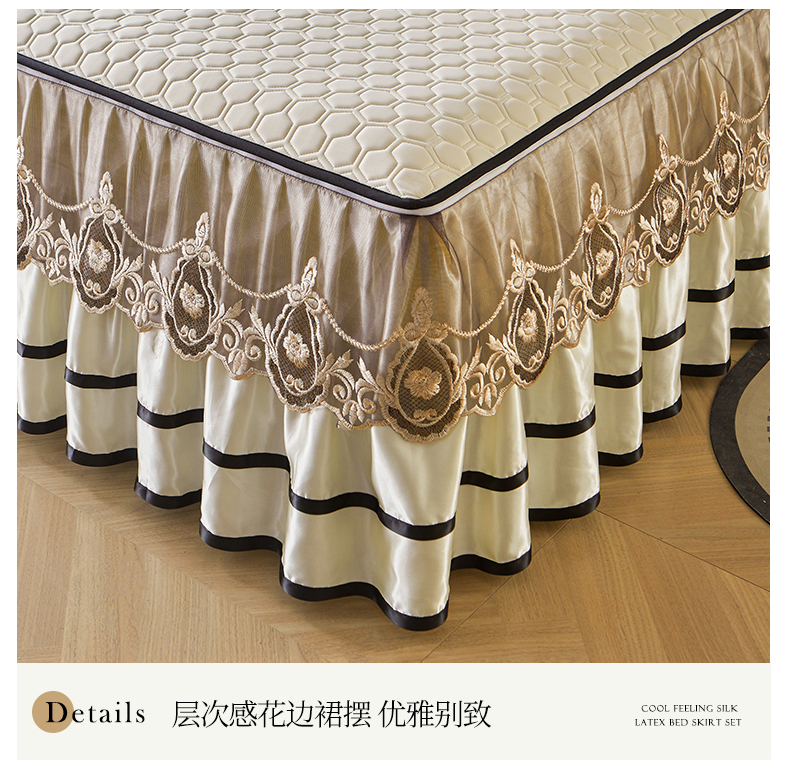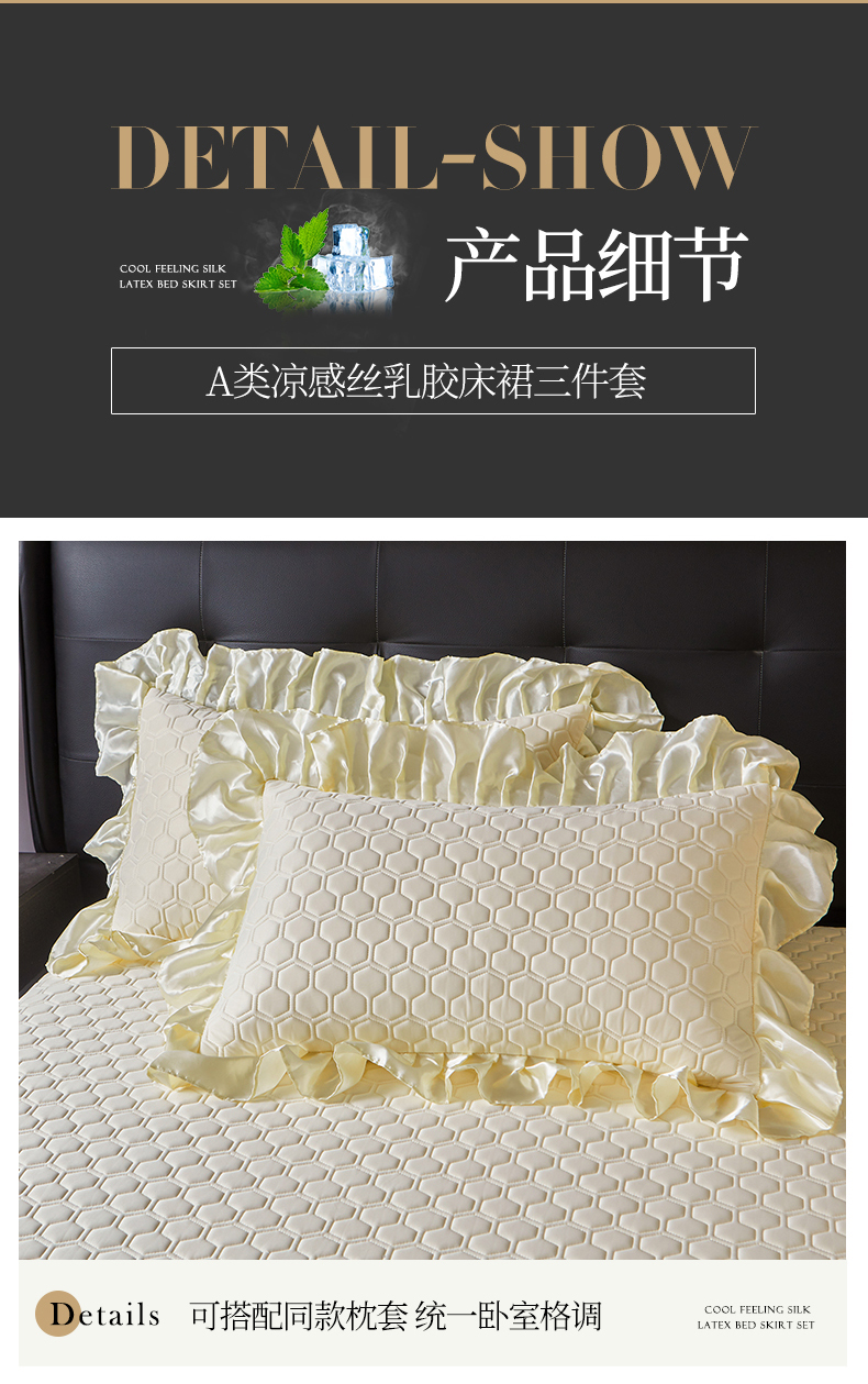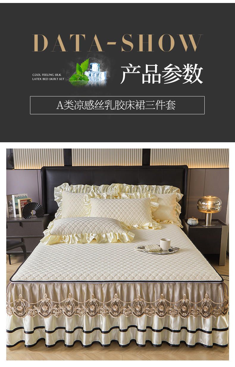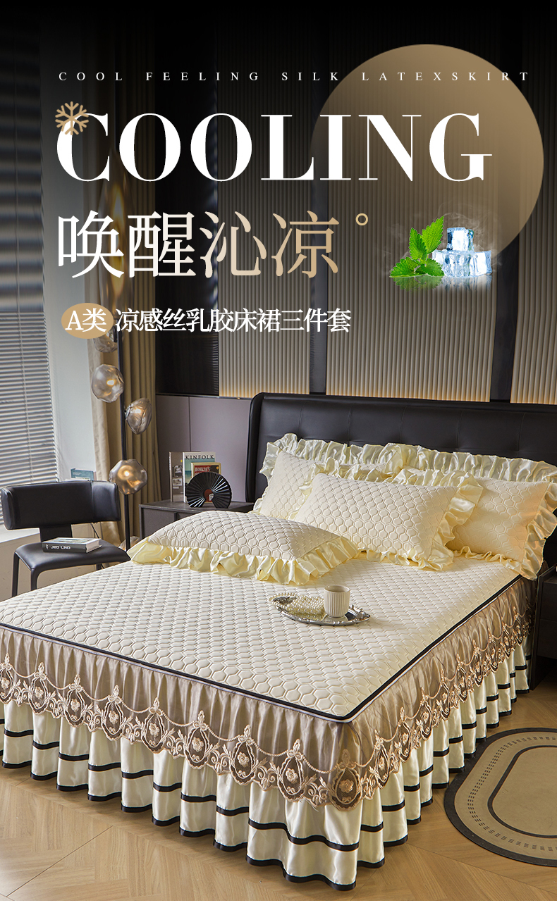 (总)好儿喜家纺 2024新款伊芙琳凉席床裙三件套,浅绿,橄榄绿,奶白,浅粉,浅蓝