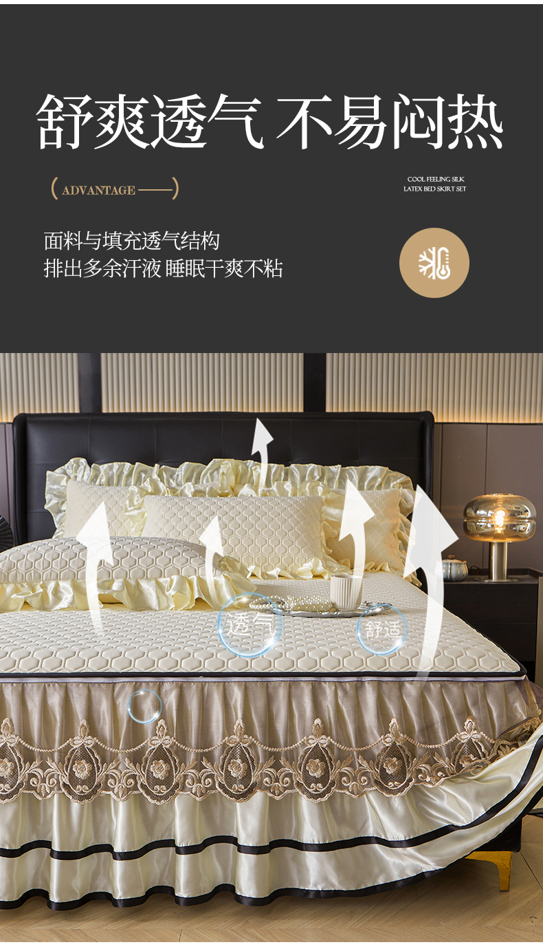 商品名称:好儿喜家纺 2026新款夏季高端乳胶凉席三件套可脱卸花边凉席-雅颂系列 雅颂-奶白