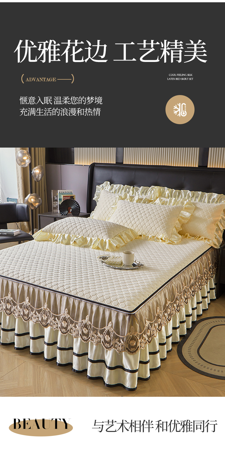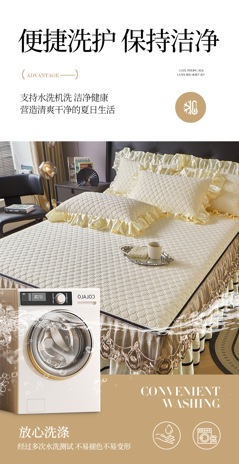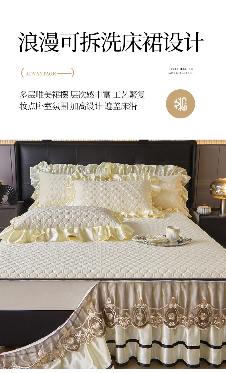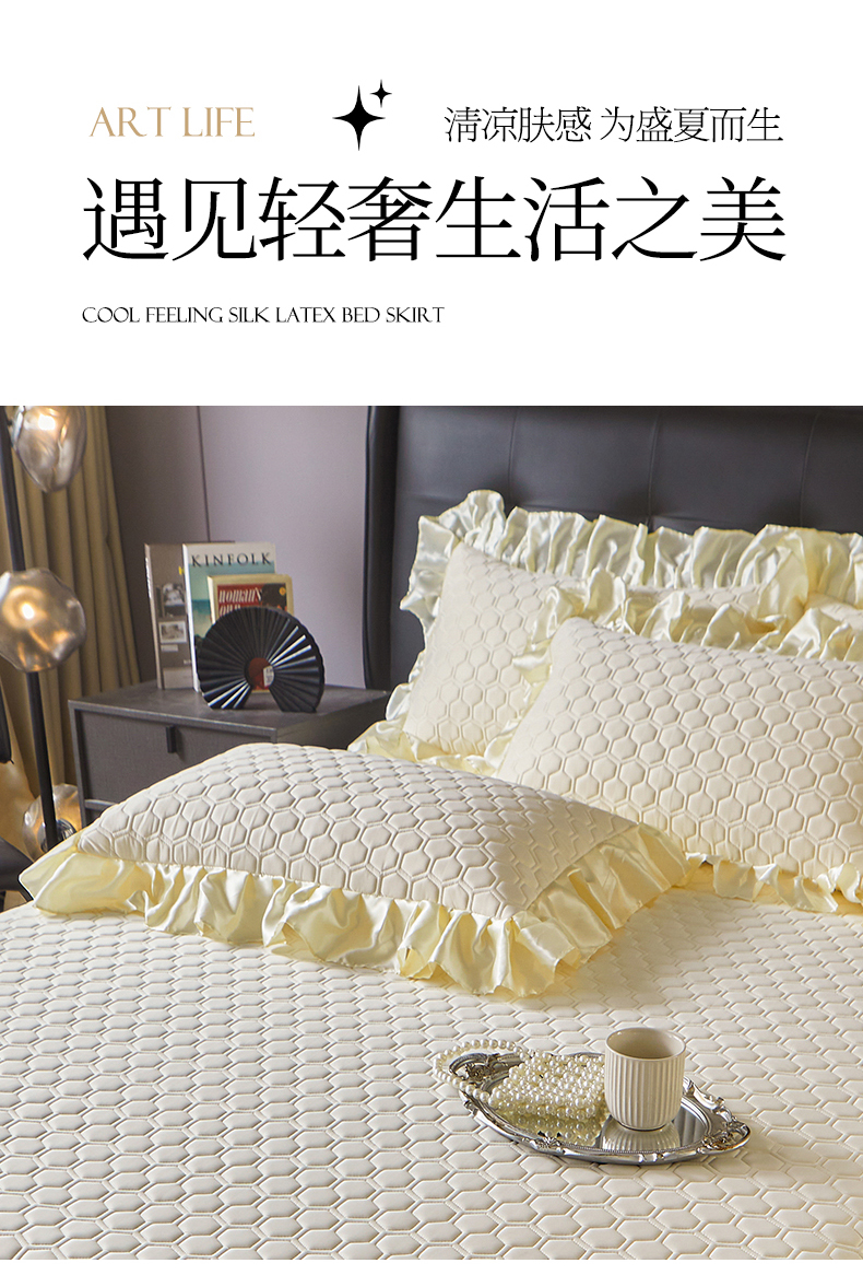好儿喜家纺 2026新款夏季高端乳胶凉席三件套可脱卸花边凉席-雅颂系列 雅颂-奶白