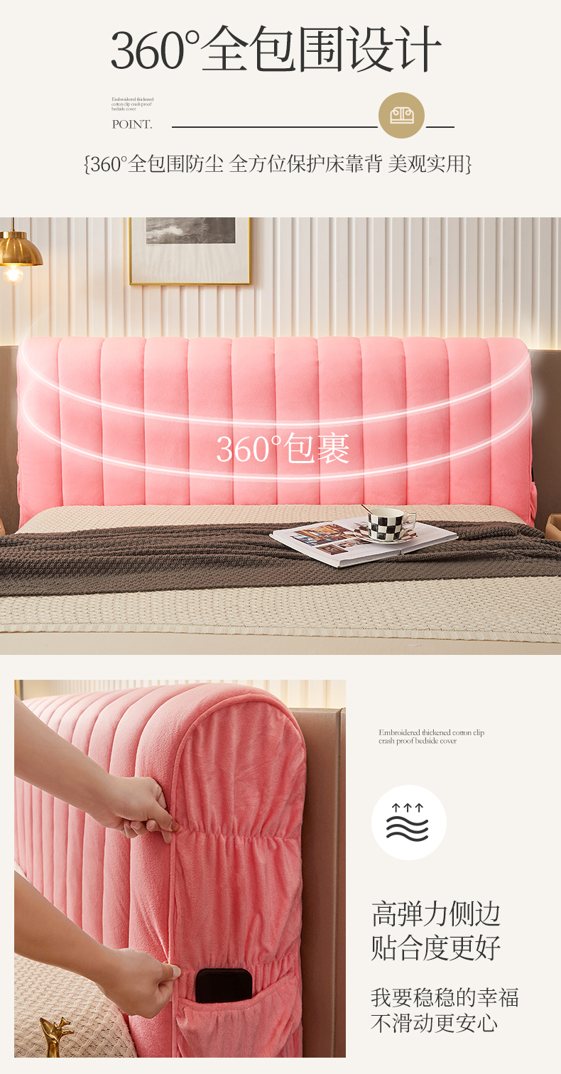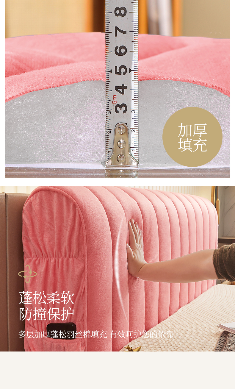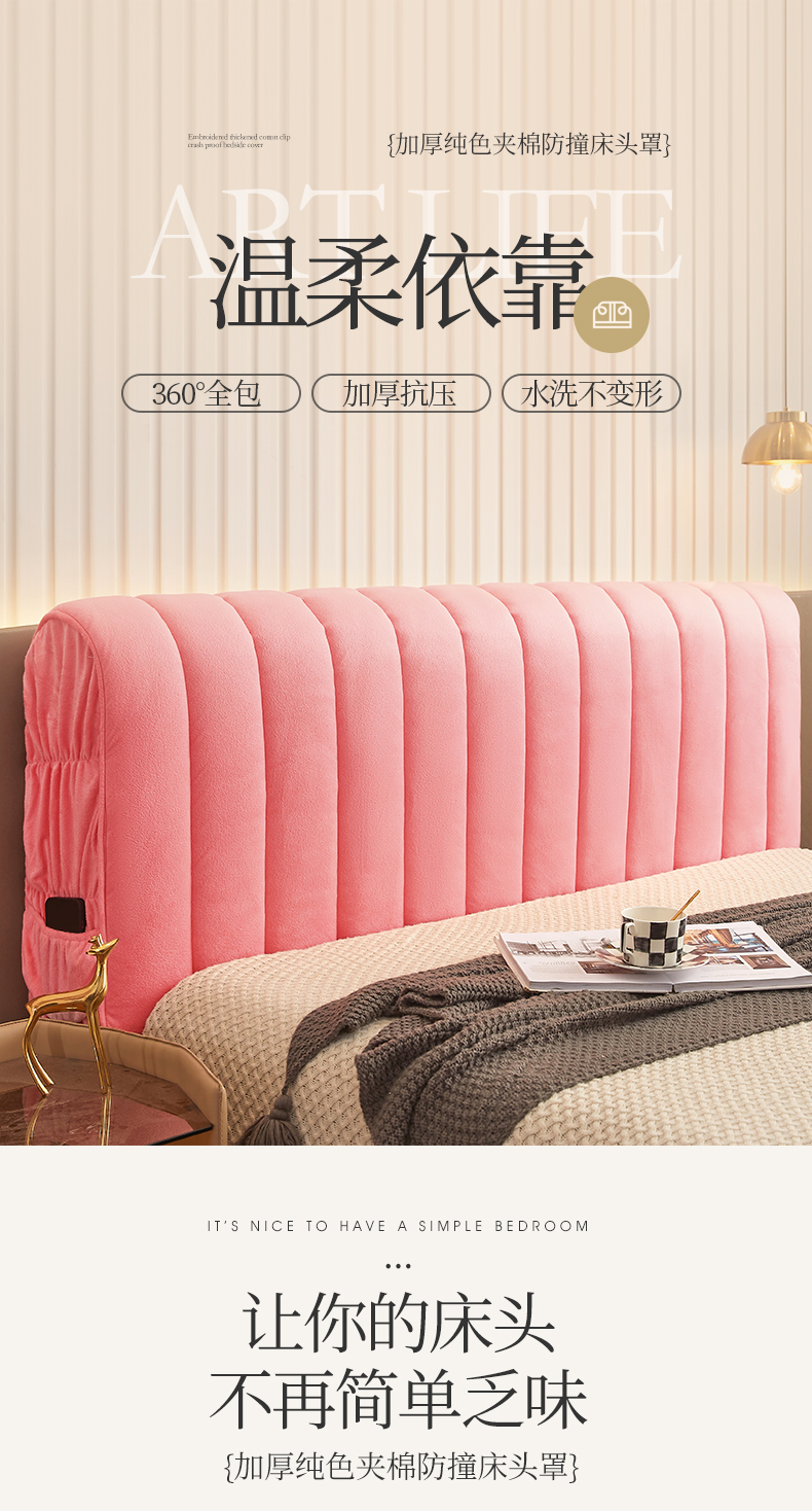 情恒家纺 2026新款立体防撞双面加厚床头罩条形款 条形款 玉粉