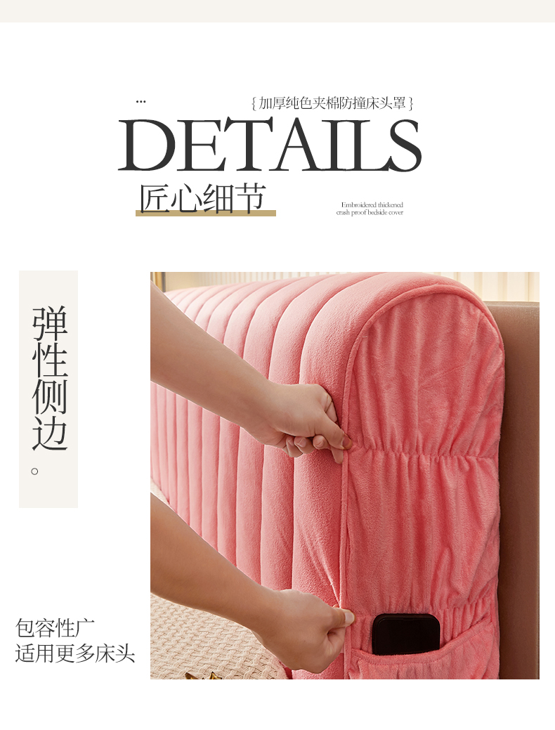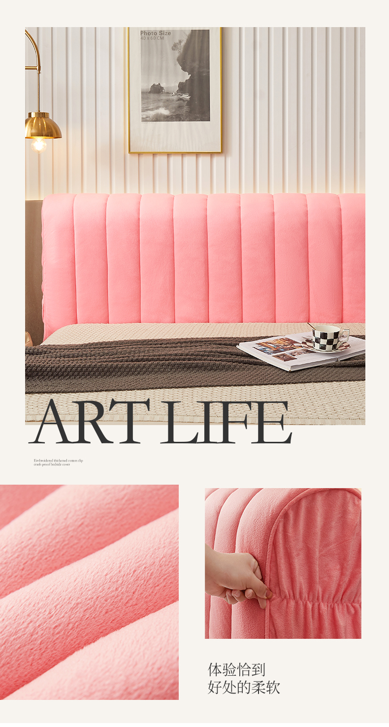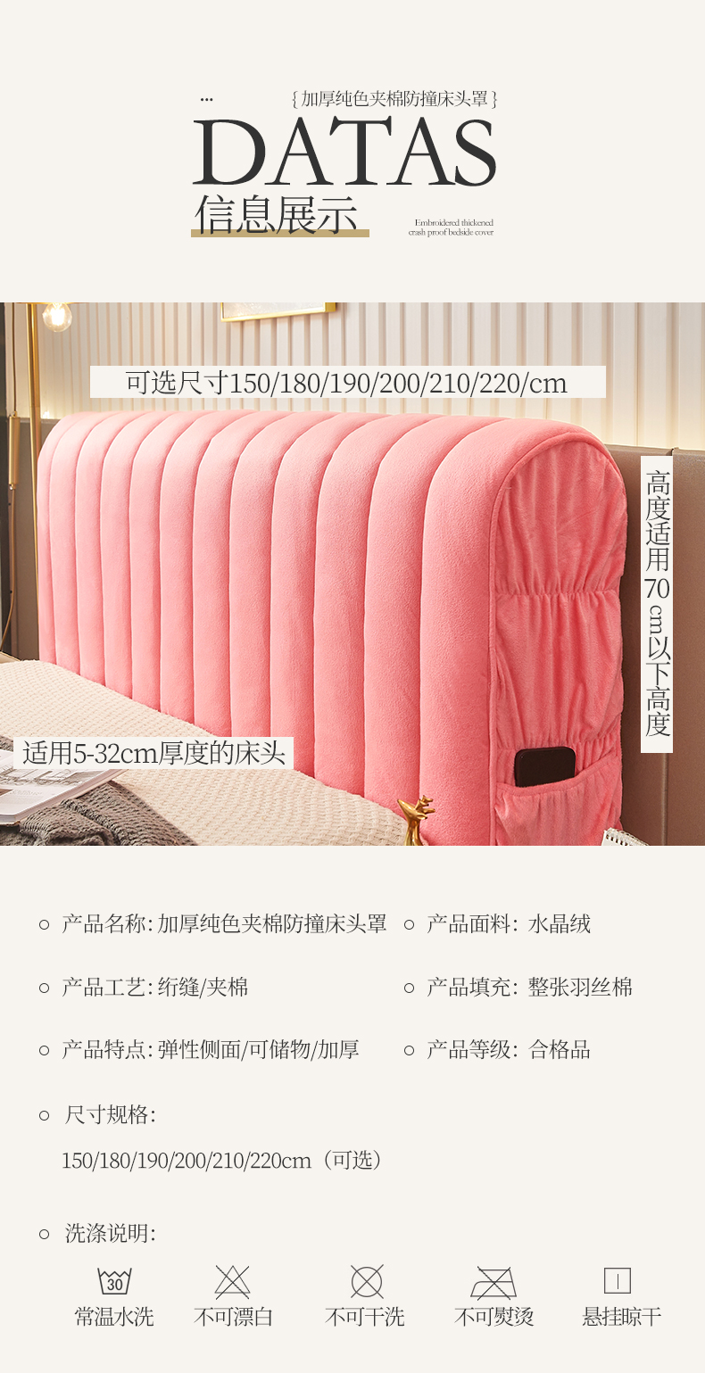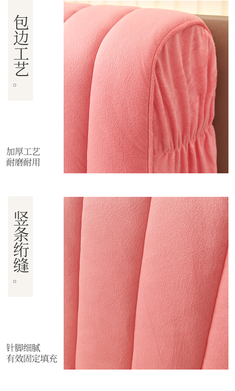 商品名称:情恒家纺 2026新款立体防撞双面加厚床头罩条形款 条形款 玉粉