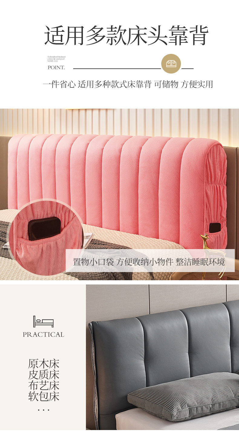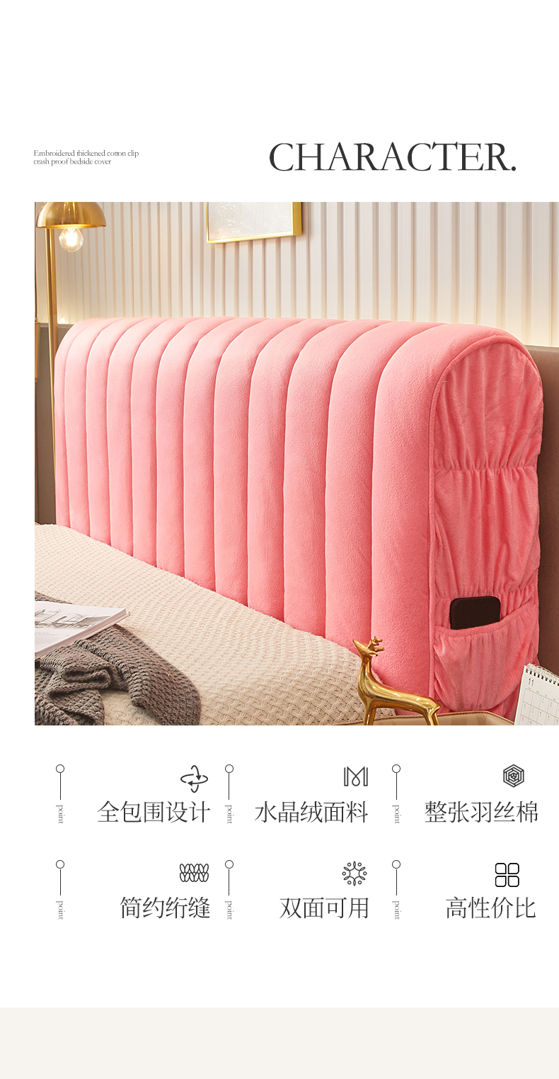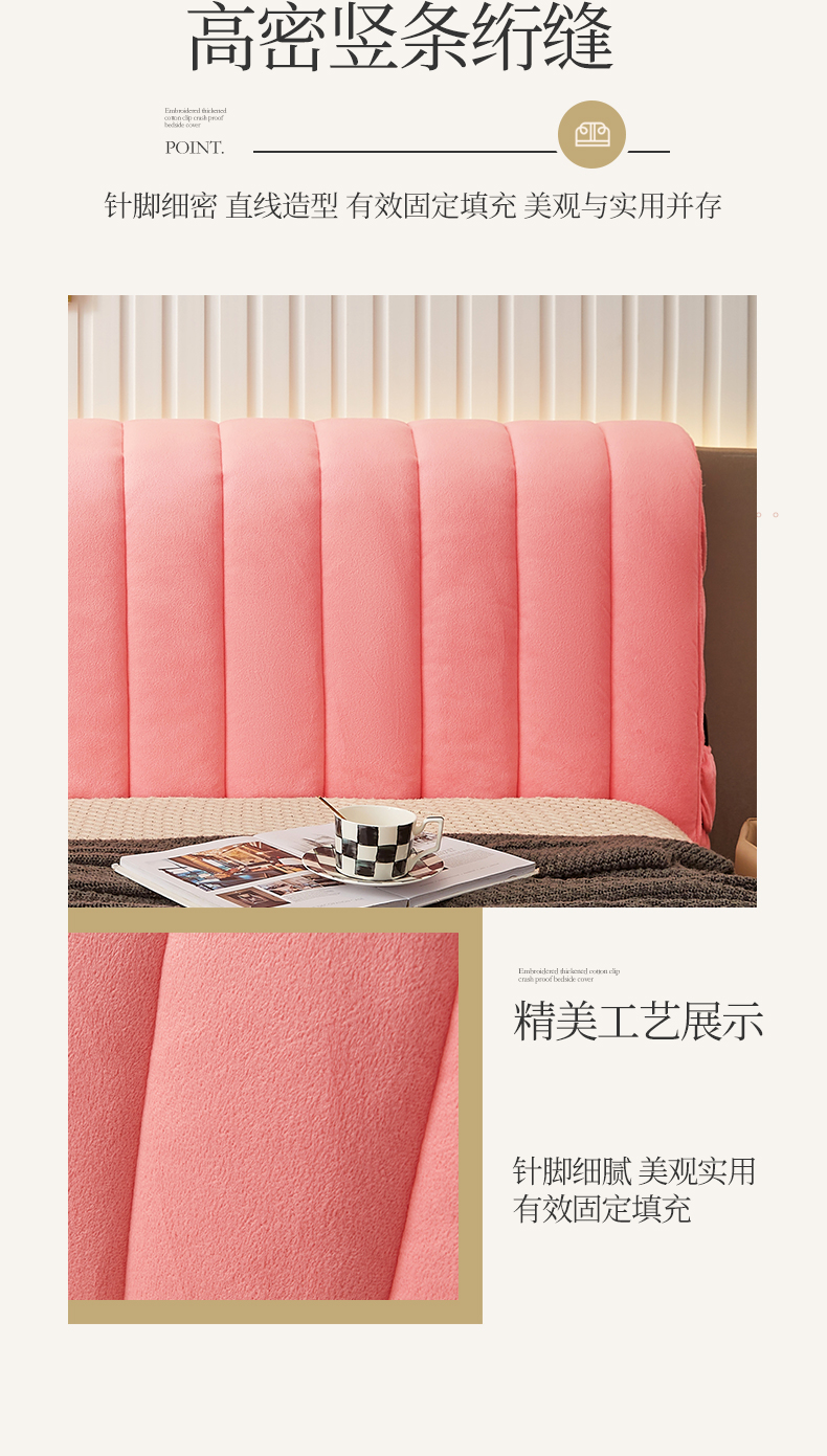 商品名称:情恒家纺 2026新款立体防撞双面加厚床头罩条形款 条形款 玉粉