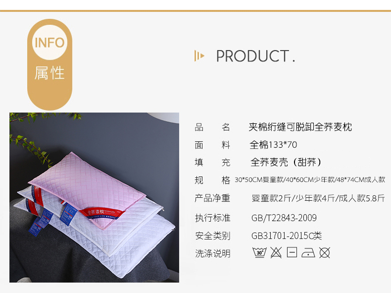 商品名称:全棉可脱卸全荞麦壳枕芯花草护颈枕枕头单人儿童定型枕多规格