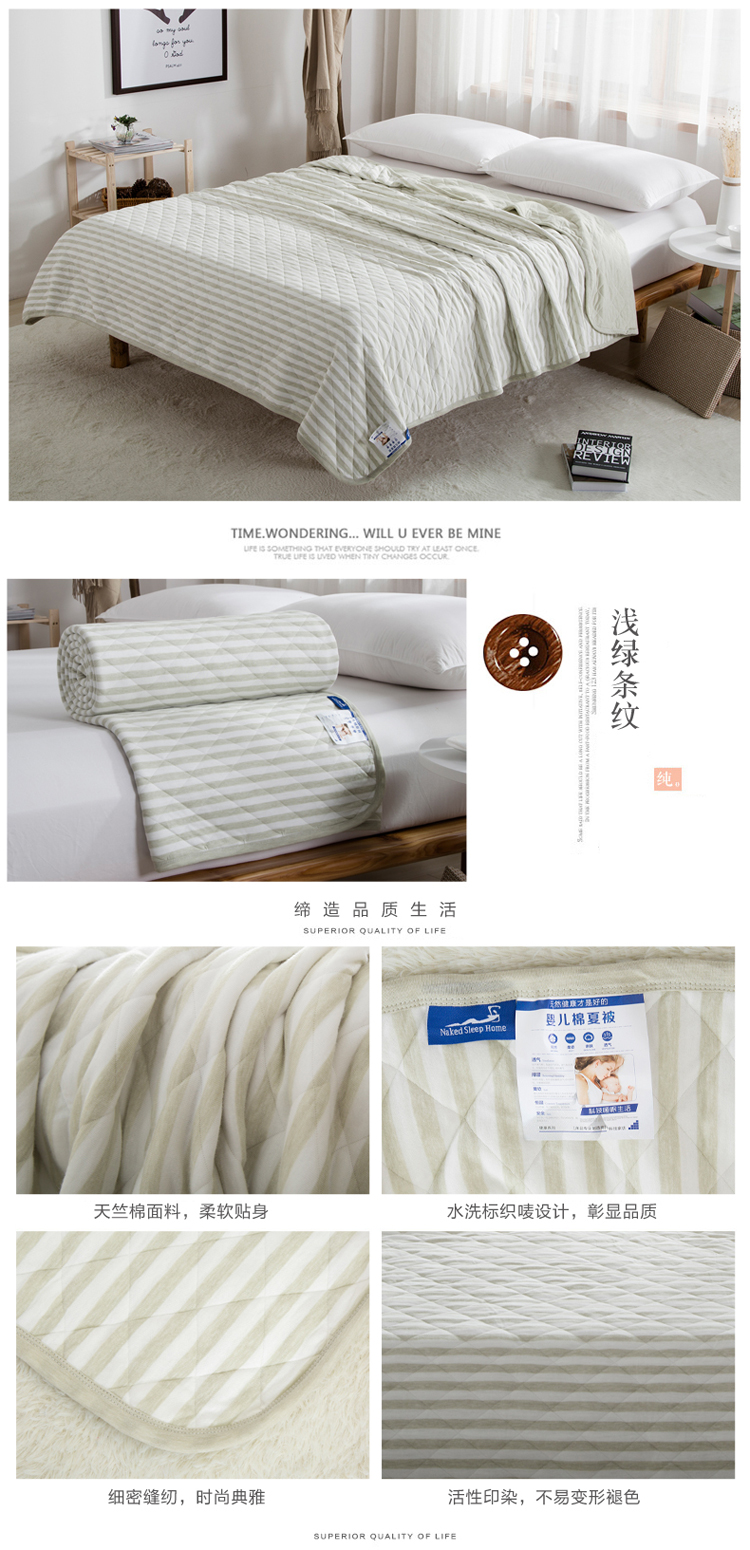 商品名称:珺柔家纺 无印良品天竺棉夏凉被-宽条纹浅绿条纹