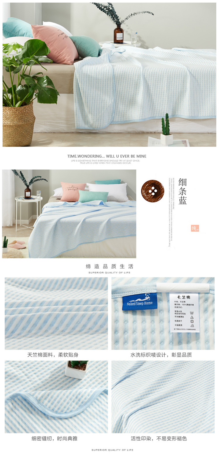 商品名称:珺柔家纺 无印良品天竺棉夏凉被-细条纹蓝