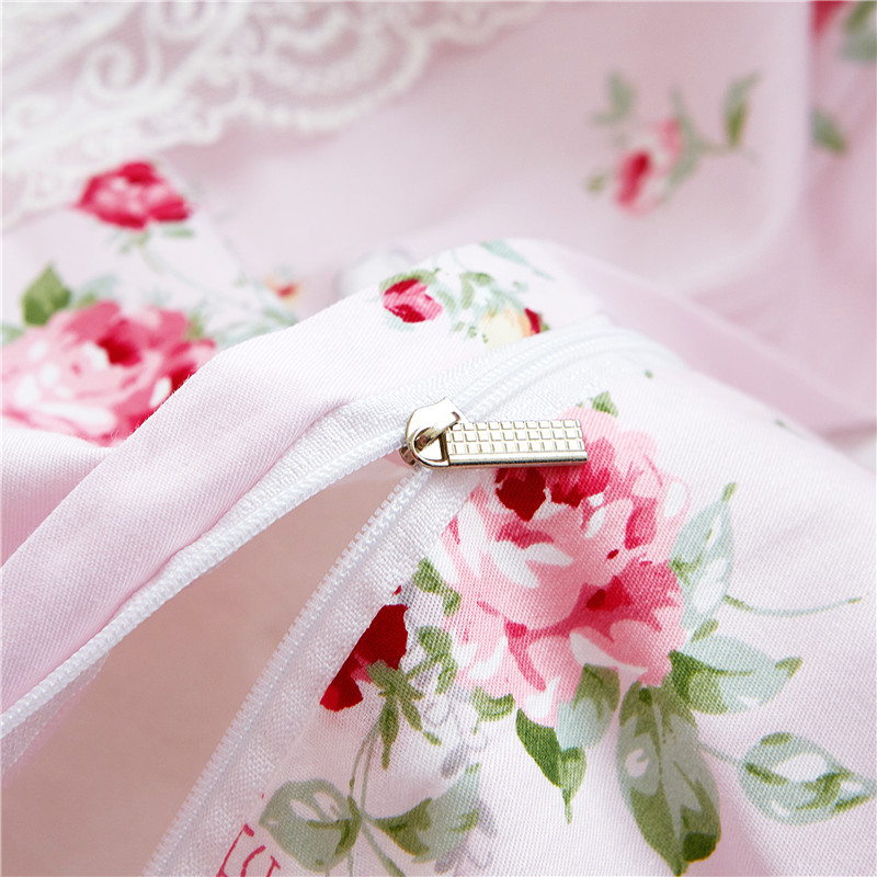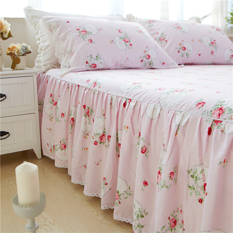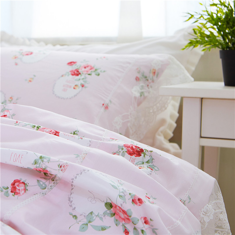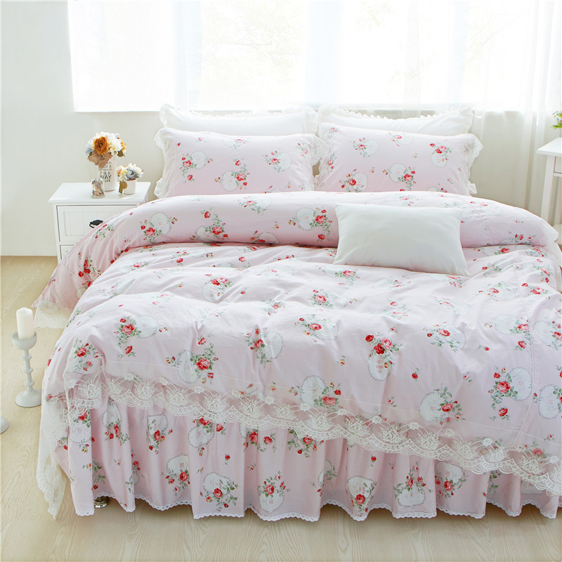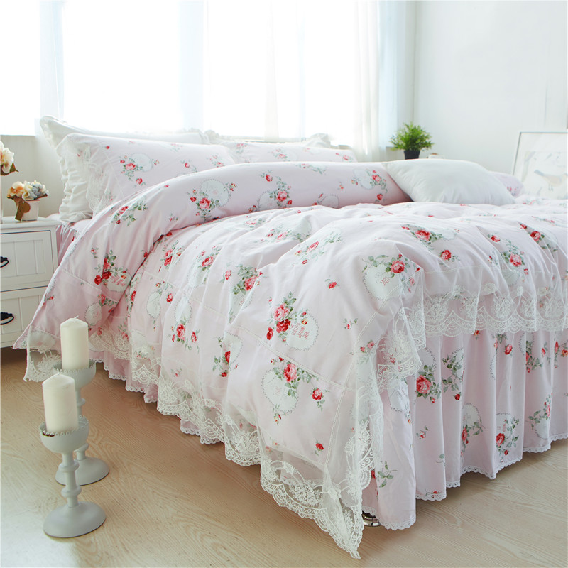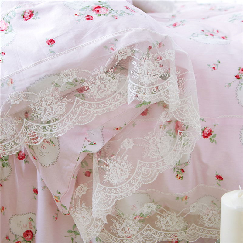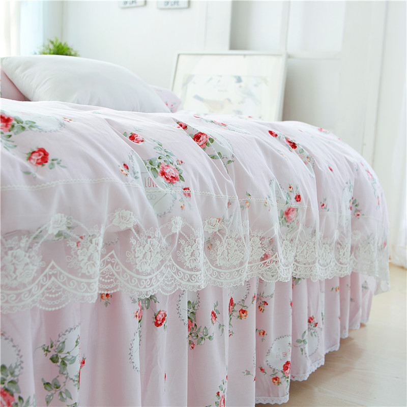 优质全棉13372韩版蕾丝床裙精品四件套 梦幻粉
