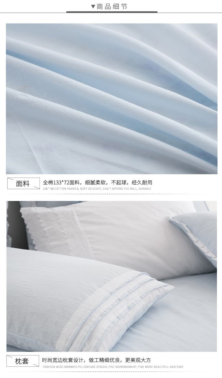(总)宅家居 2023新款双层纱菱形格贴布绣花边四件套-罗威系列,罗威-淡蓝,罗威-果绿,罗威-奶白,罗威-浅灰,罗威-桃粉