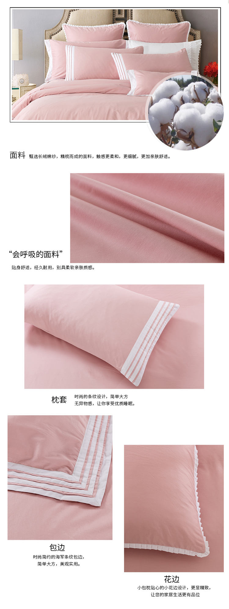 (总)宅家居 2024轻奢小香风纯棉长绒棉四件套奥菲亚系列,冰肌粉,湖水蓝,罗兰紫,奶昔白,松石绿,香槟金