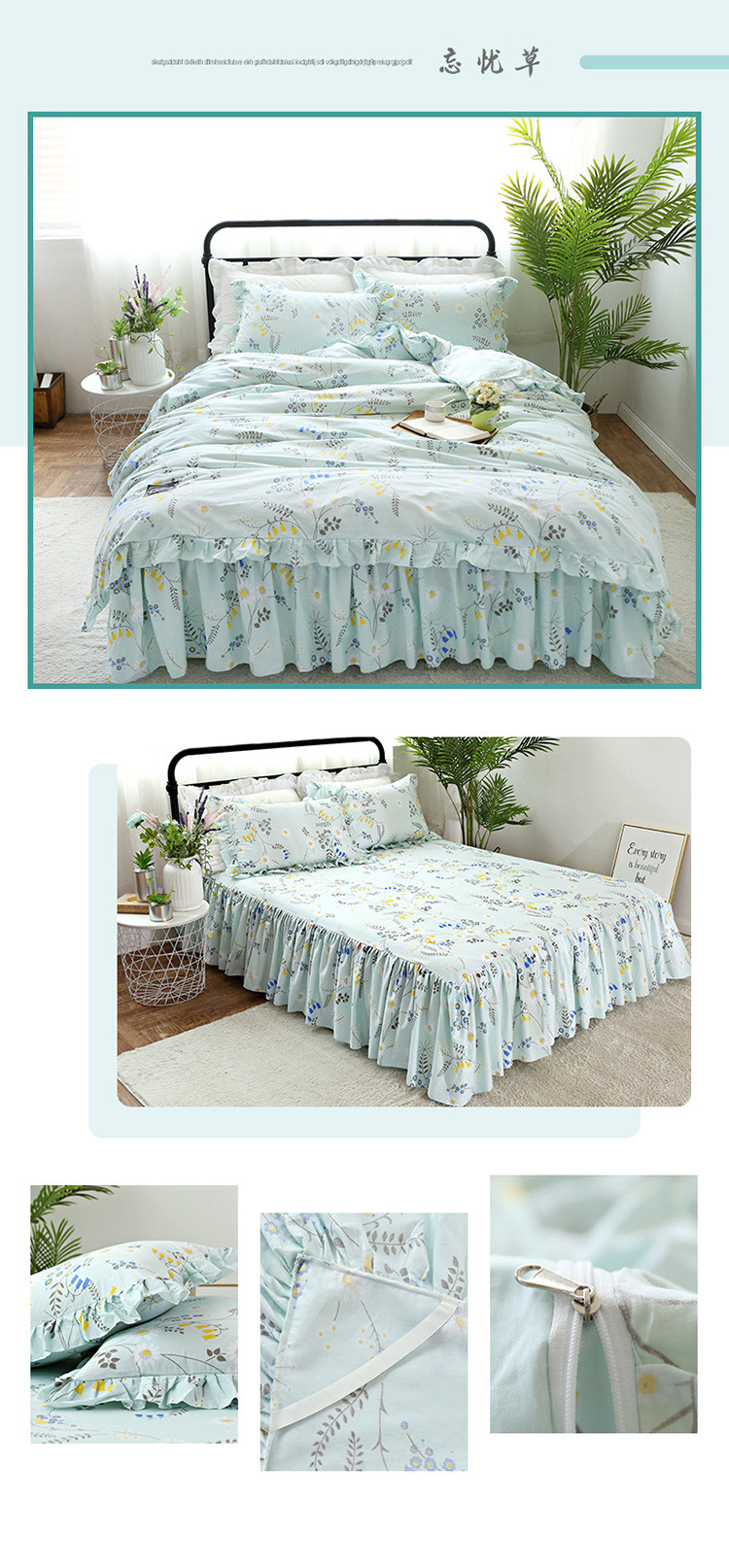 菊上家纺 2018小清新宜家风床裙四件套 忘忧草