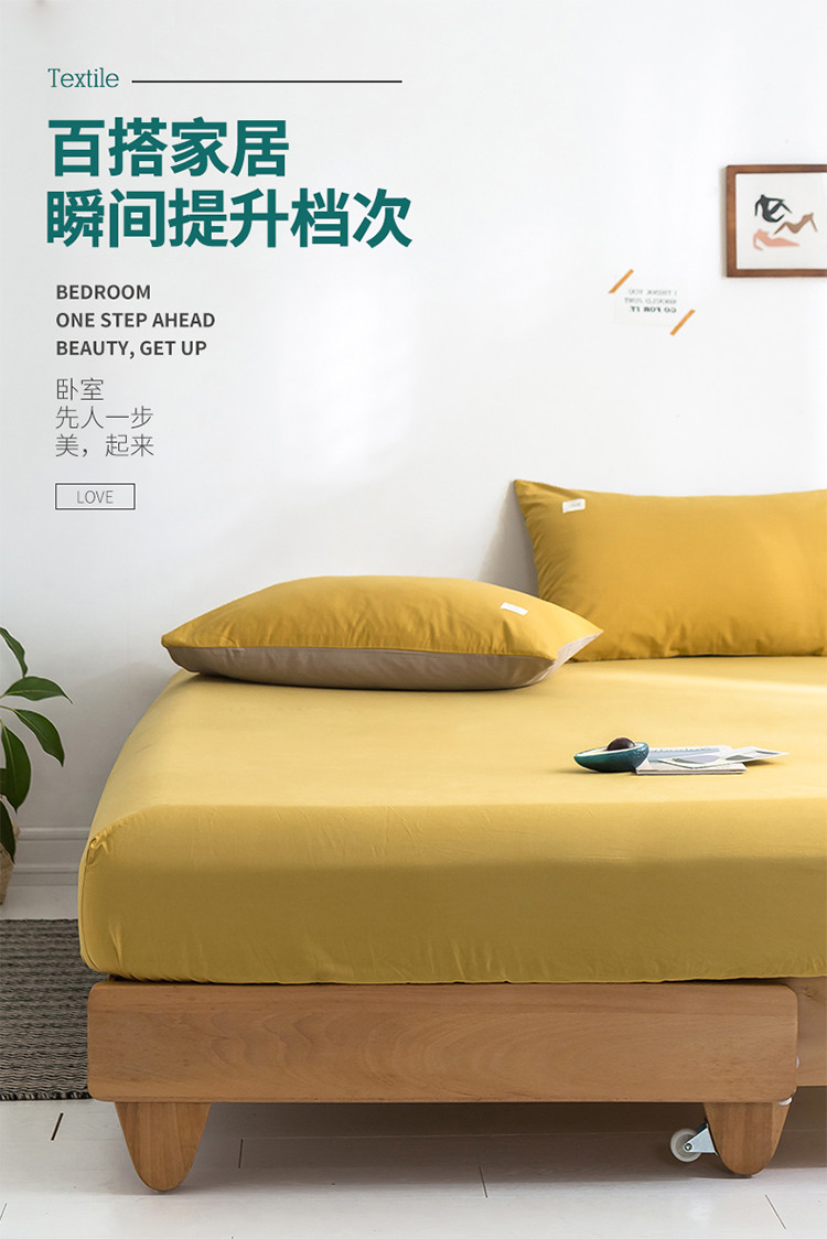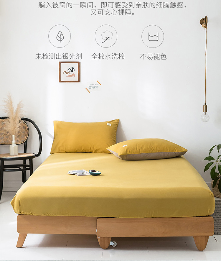 商品名称:蓝巢家纺 2020年春夏新品全棉加厚水洗棉单品床笠 杏黄