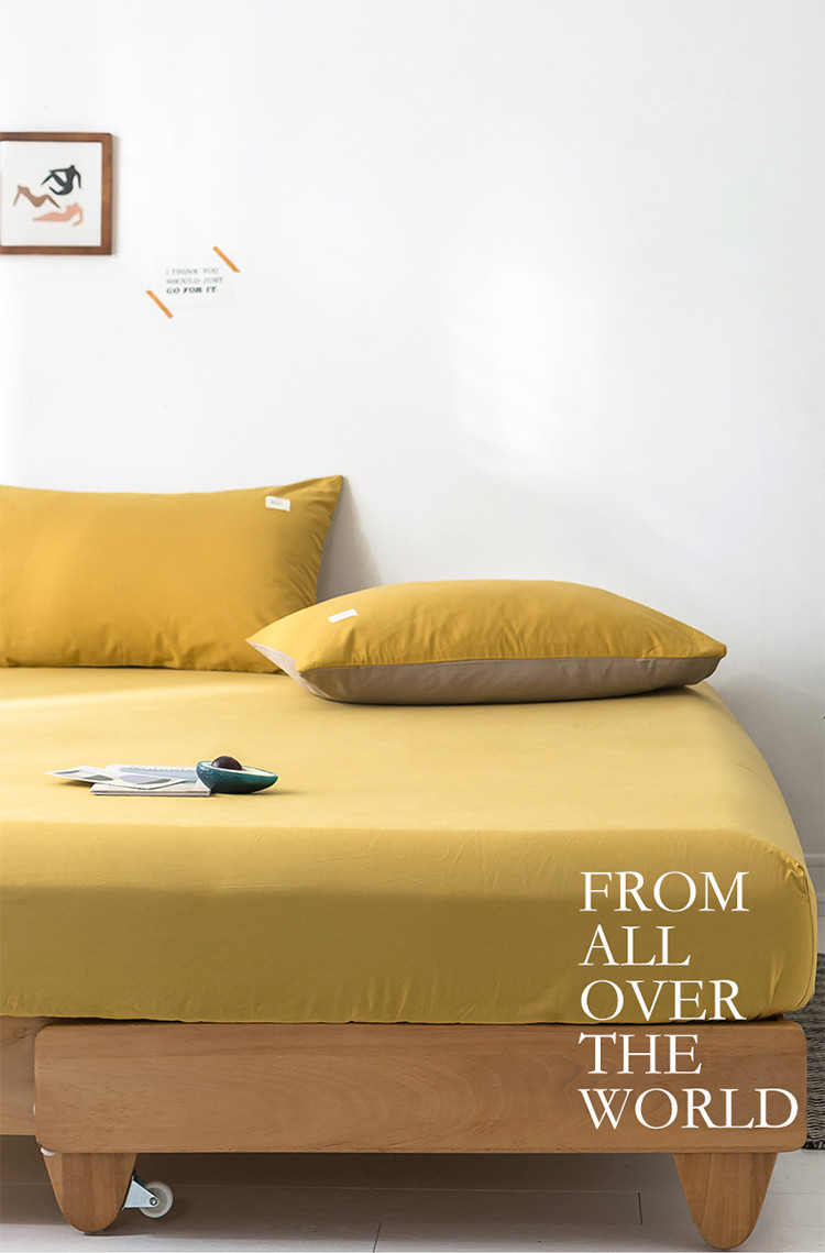 蓝巢家纺 2020年春夏新品全棉加厚水洗棉单品床笠 杏黄