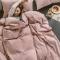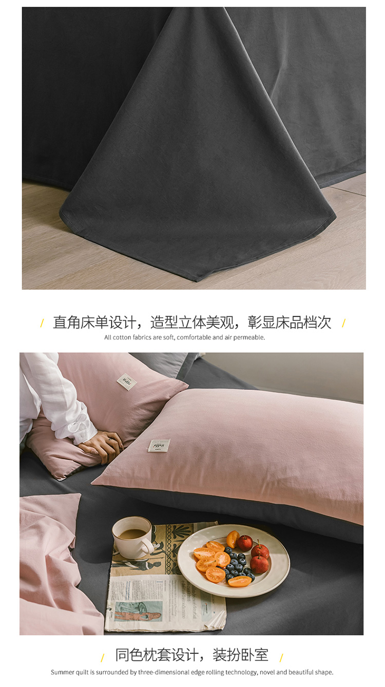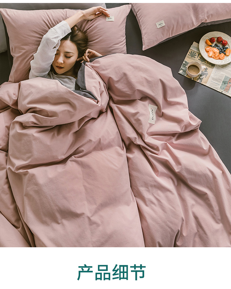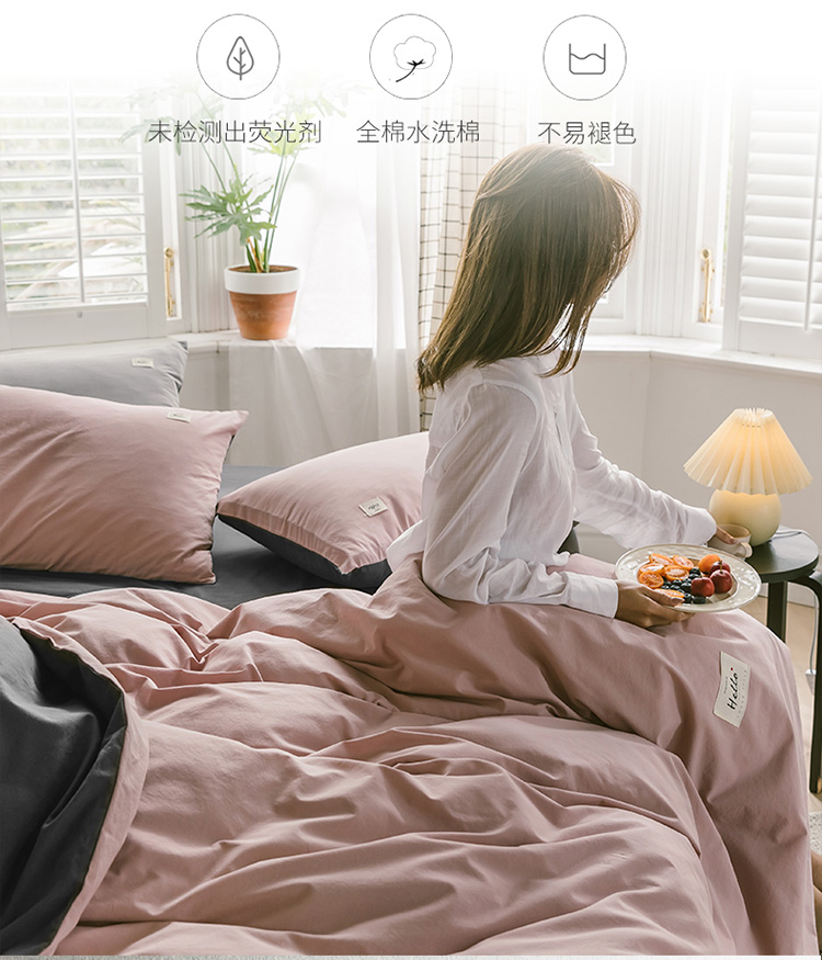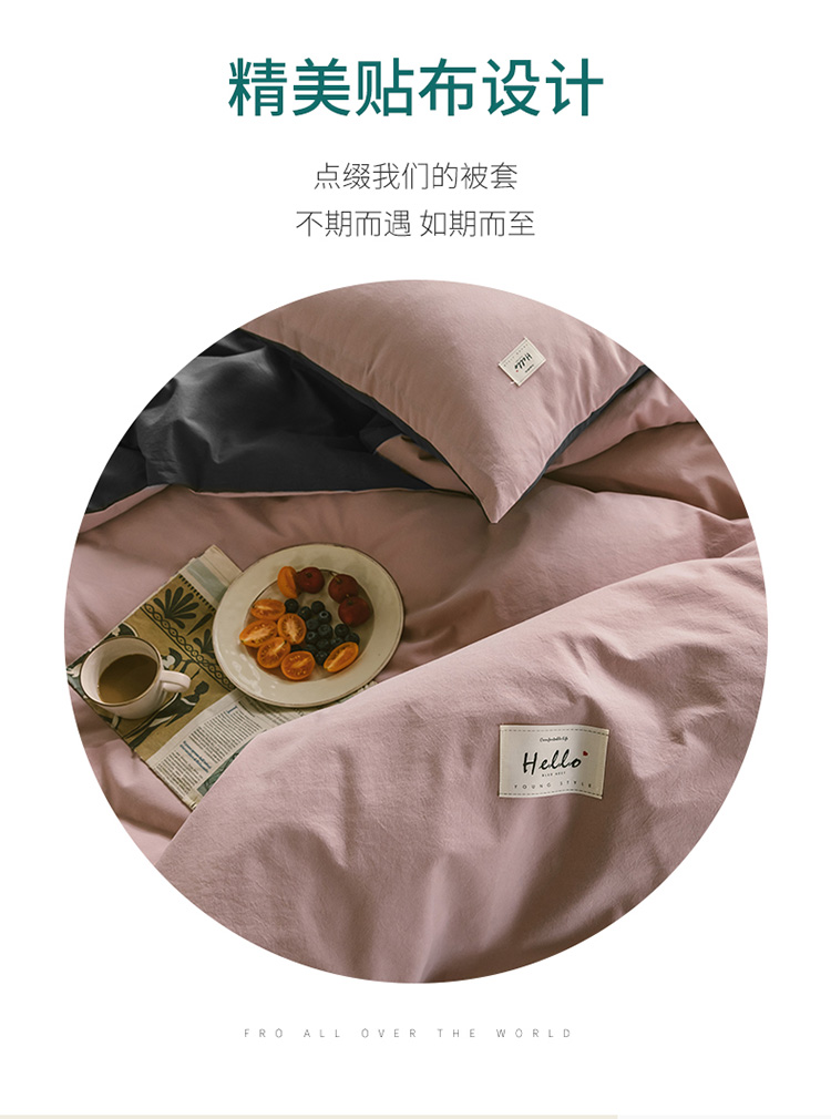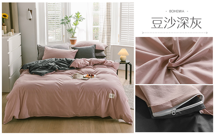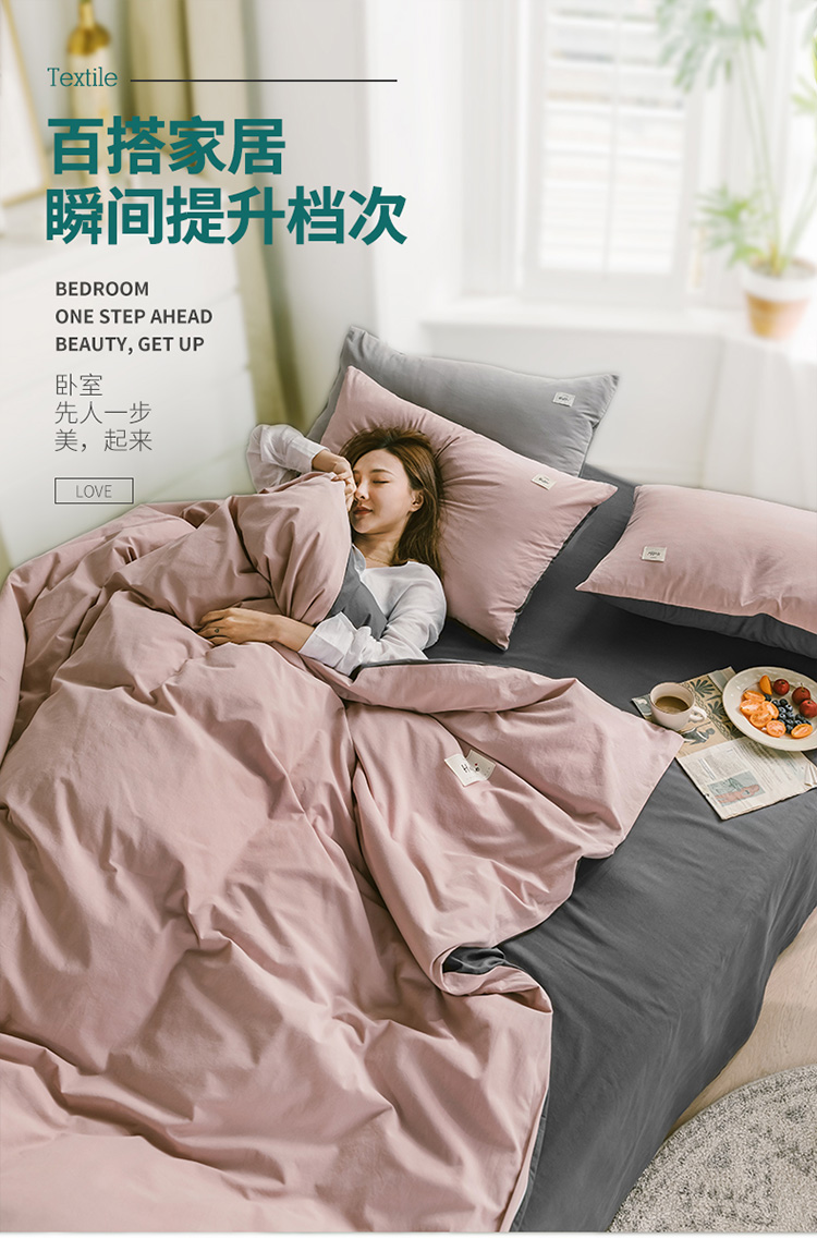 蓝巢家纺2020年春夏新品全棉加厚水洗棉双拼款四件套豆沙深灰