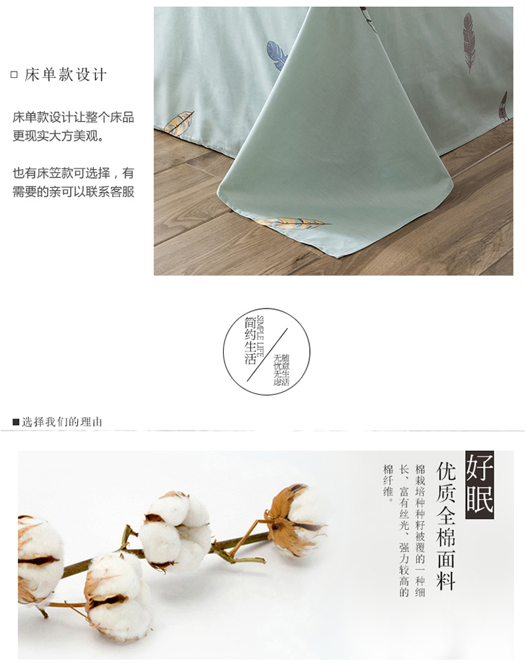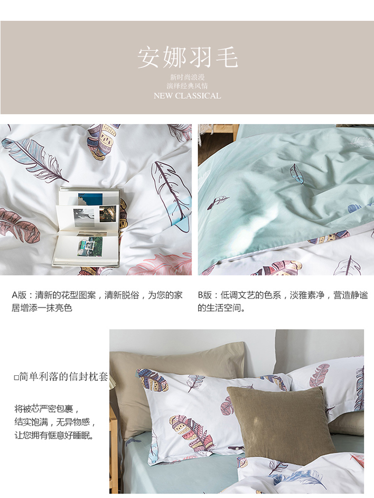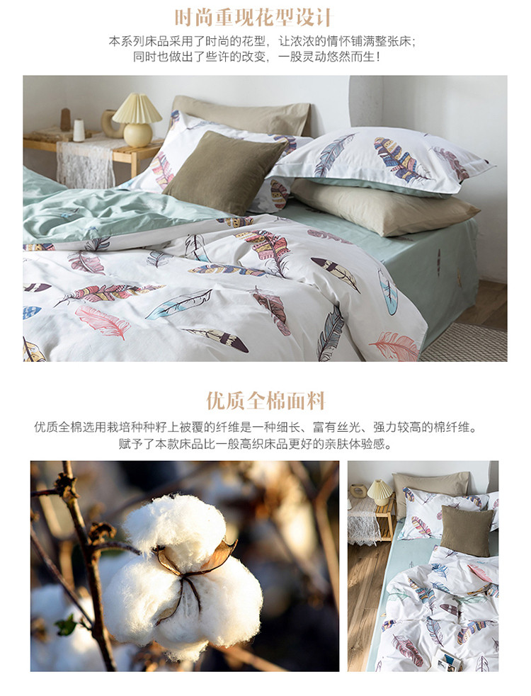 商品名称:窝米 2020春夏新品花卉风系列四件套 安娜羽毛