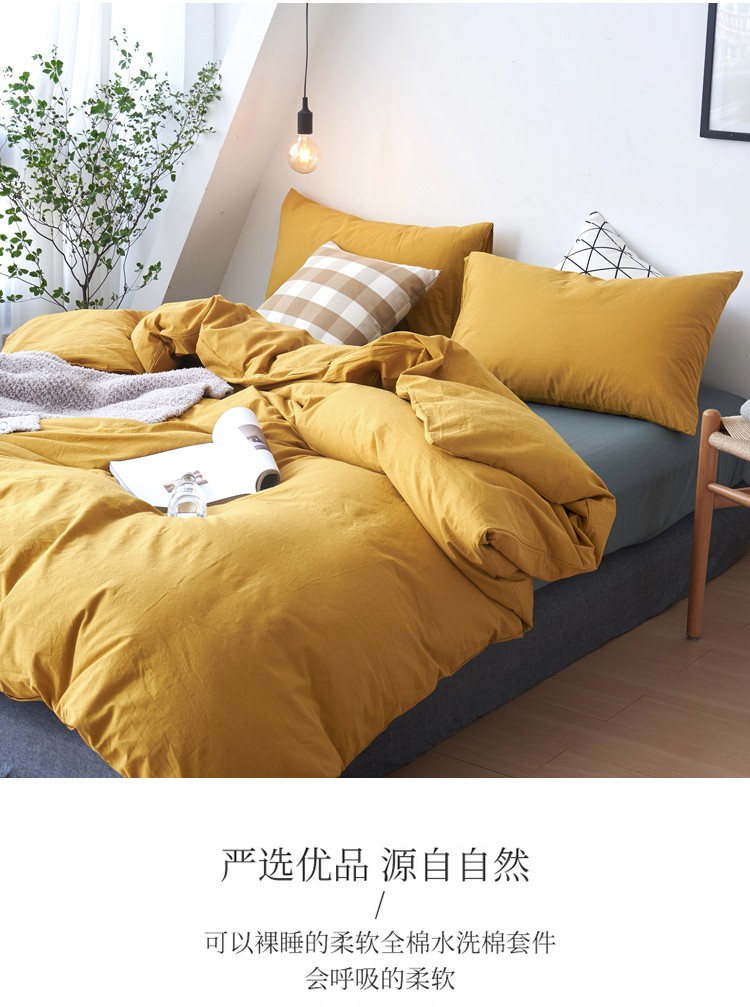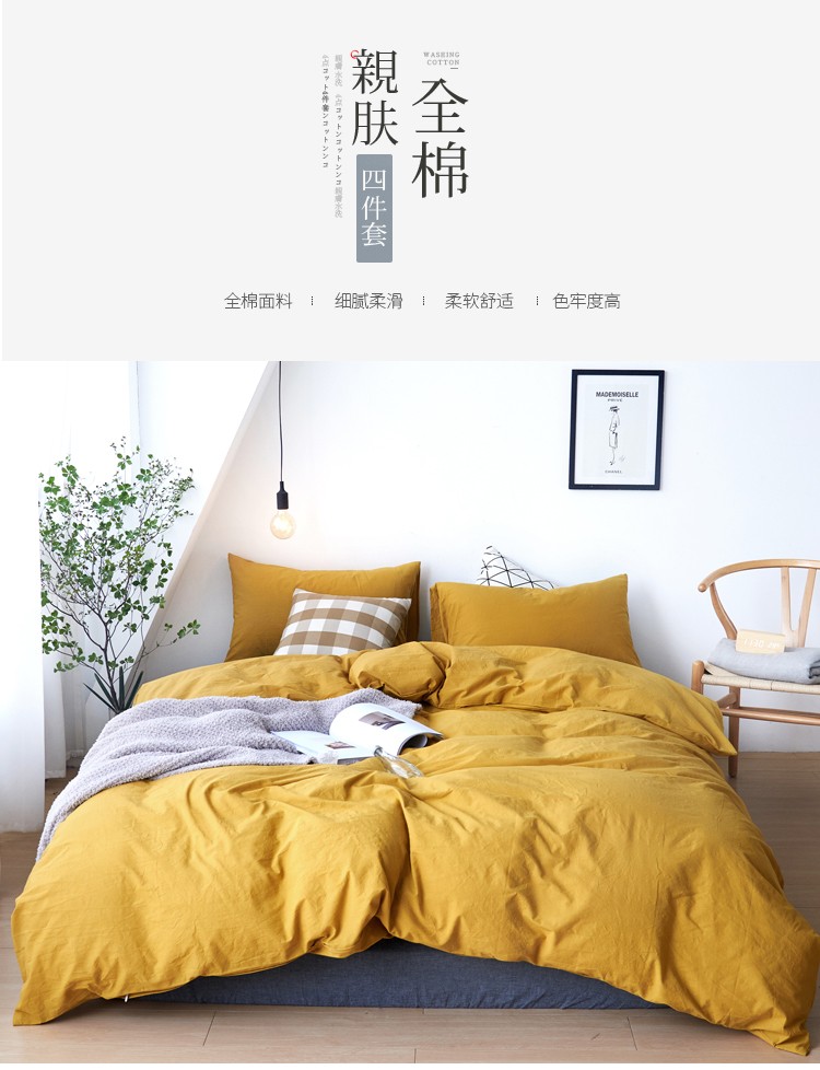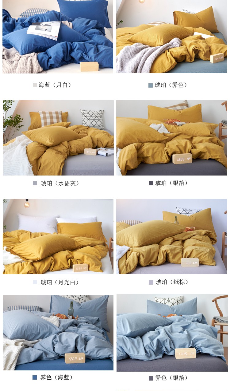 北欧风ins纯棉水洗棉床四件套全棉简约被套床单上三件套床笠,白色+藏青,藏青+浅蓝,鹅黄+螺旋藻绿,鹅黄+牛油果,螺旋藻绿+鹅黄,千夏紫+水貂灰,千夏紫+薇薇紫,薇薇紫+浅灰,浅蓝+鹅黄,浅蓝+白色,浅蓝+藏青